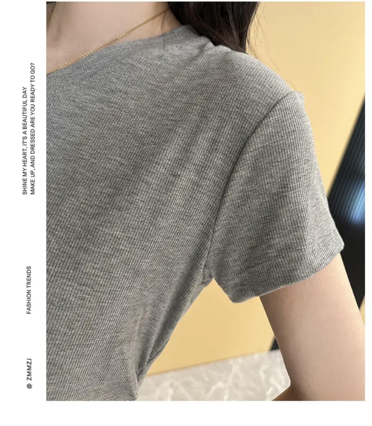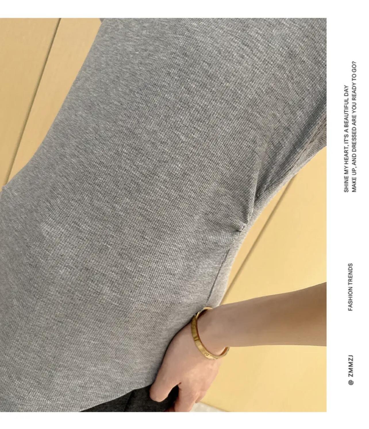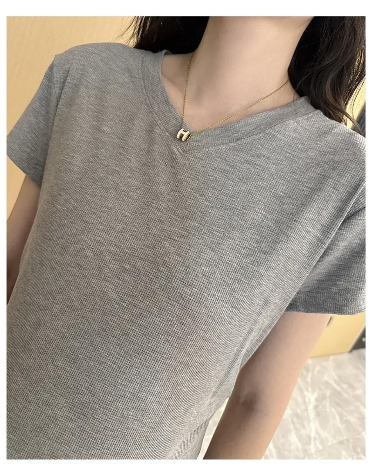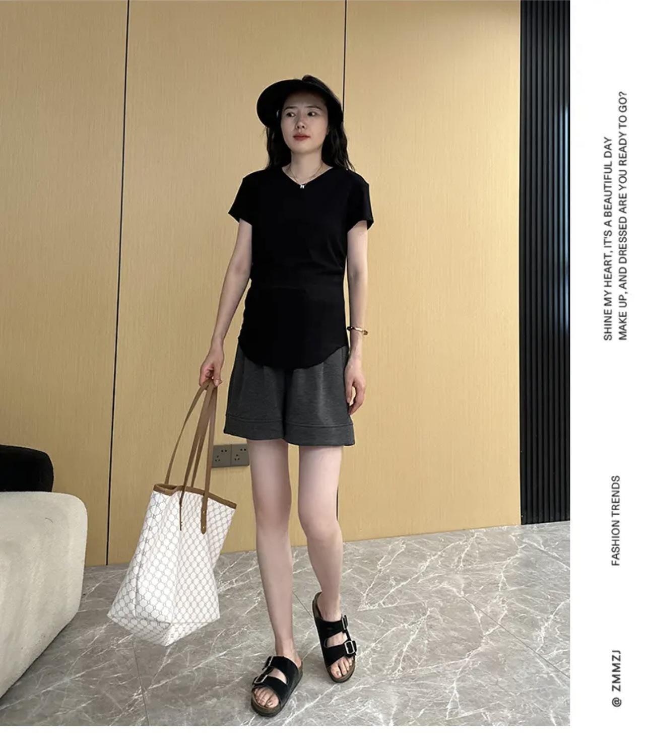 Playera de Maternidad Algodón Puro Verano Cuello en V Manga Corta Moda Look Adelgazante Suelta Cubre Vientre No Muestra Embarazo Camiseta Base Algodón