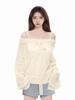 Albaricoque Hombro Caído Hombro Descubierto Tejido Calado Blusa Protector Solar para Mujer Verano Ropa Exterior Estilo Holgado Perezoso Top de Manga Larga para Primavera