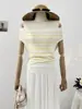 Suéter Sexy de un Hombro a Rayas Contrastantes Estilo Coreano para Mujer Verano Jersey Corto Top Adelgazante para Mujer