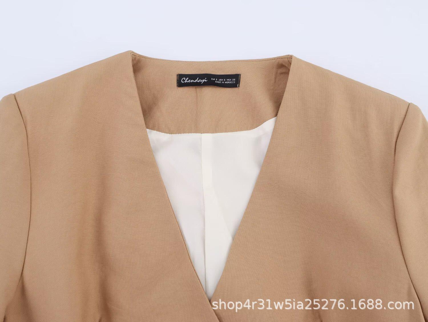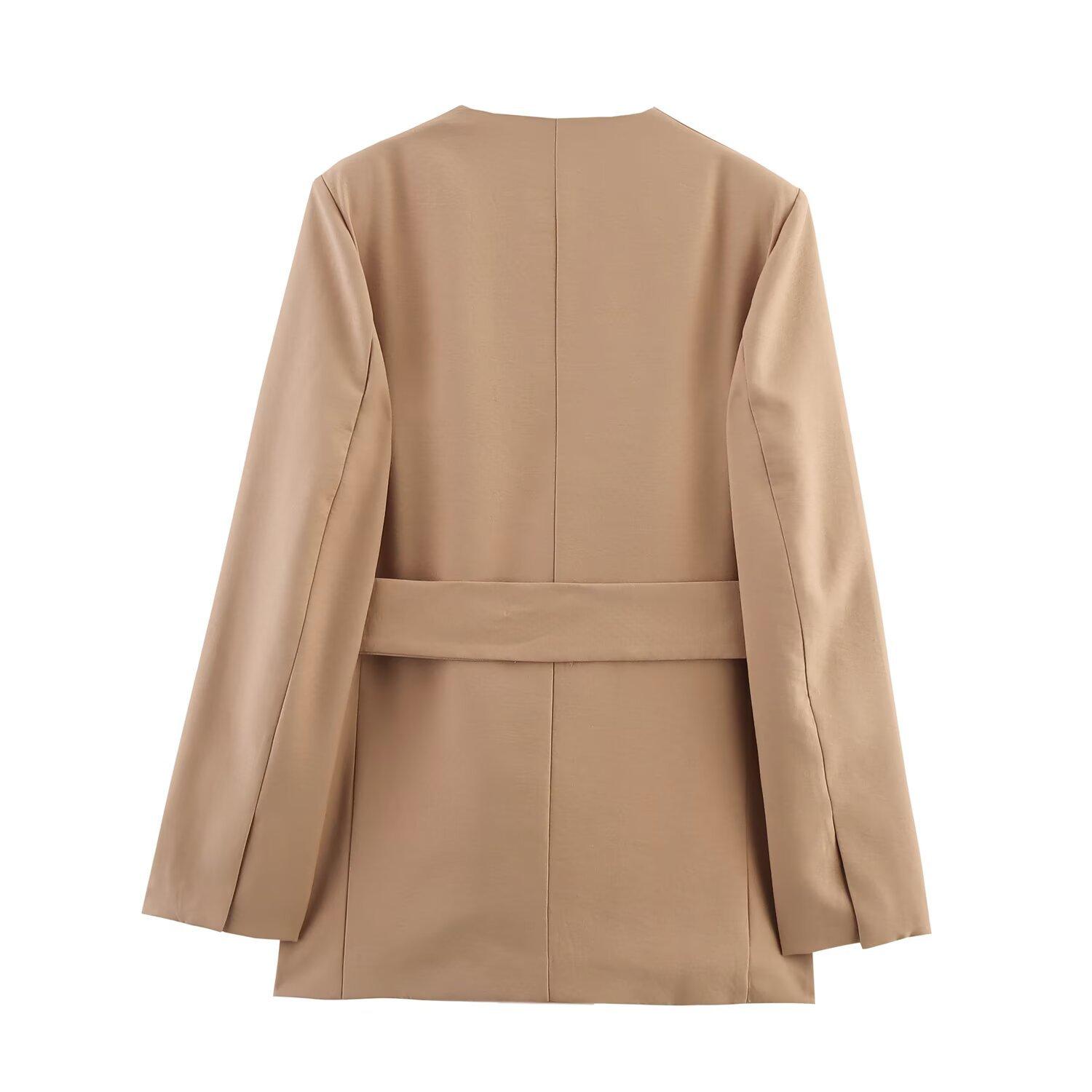 Amazon Comercio Exterior Transfronterizo Venta al por Mayor Ropa de Mujer 2025 Nuevo Estilo Chaqueta de Traje Casual con Cinturón y Hombreras