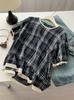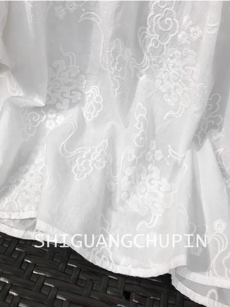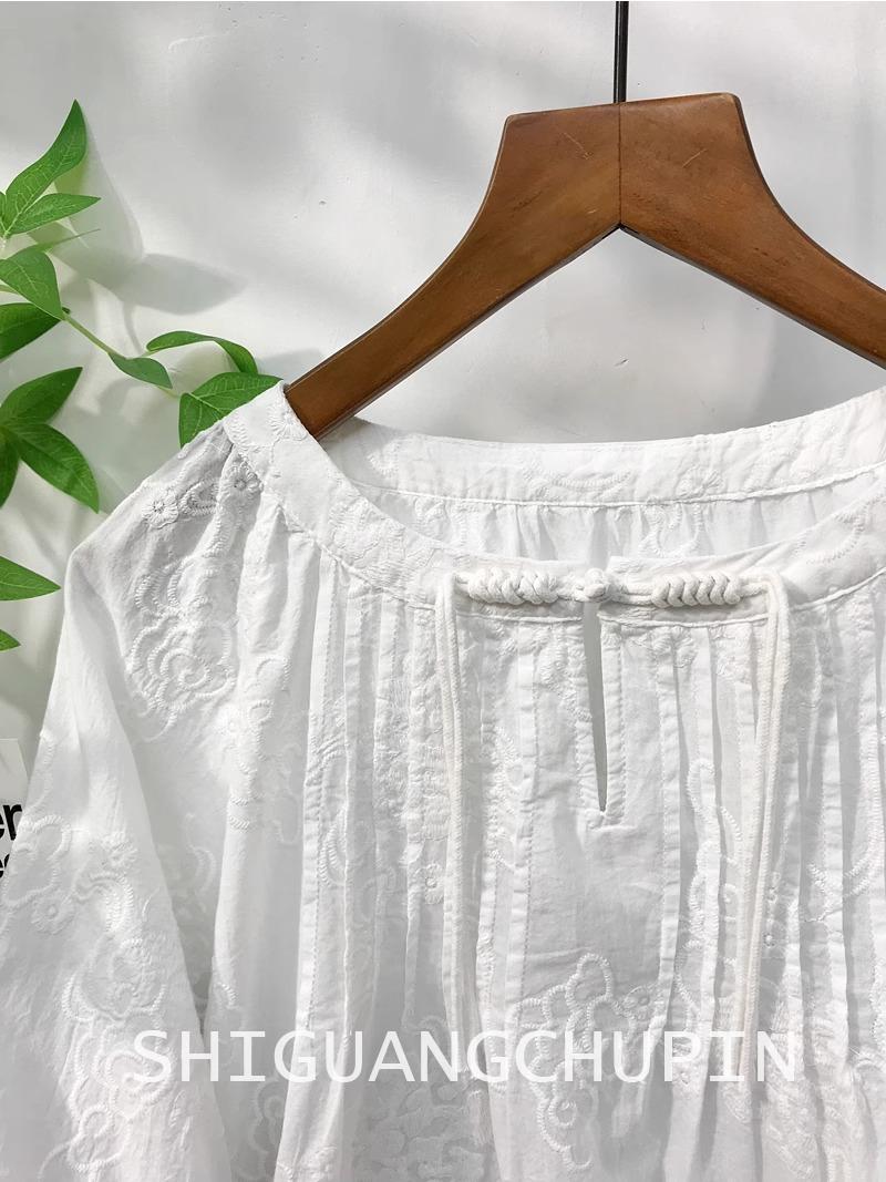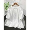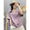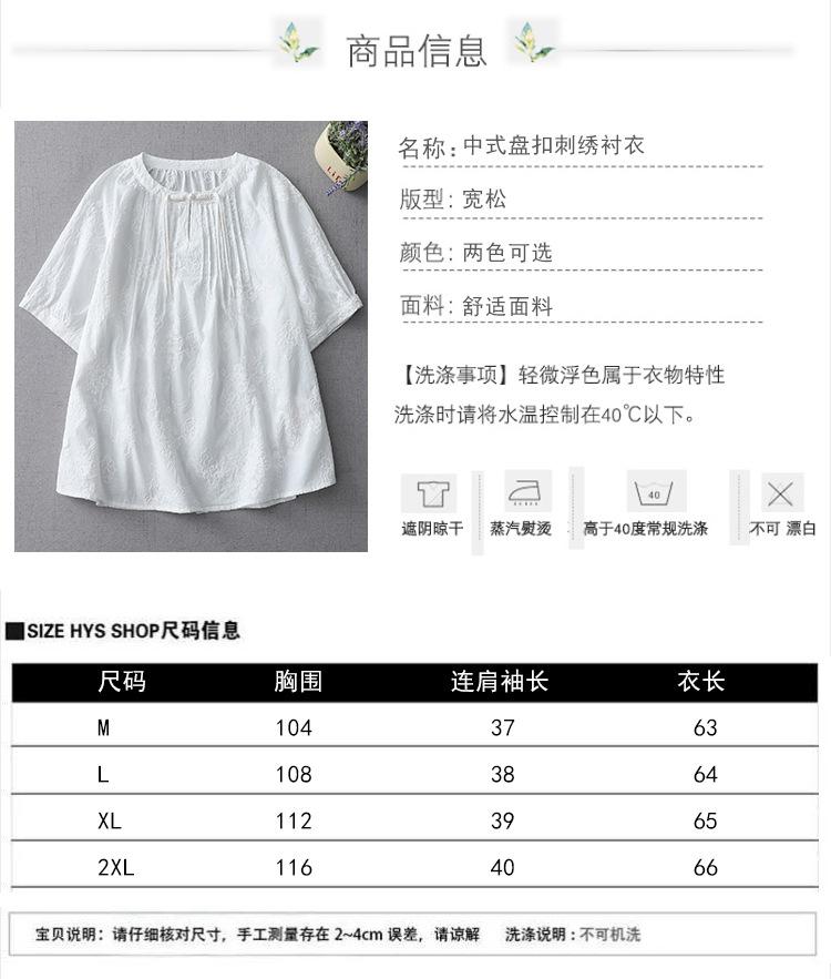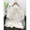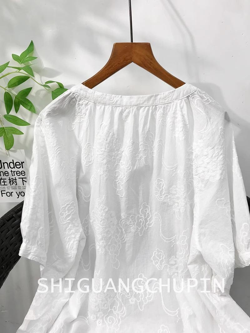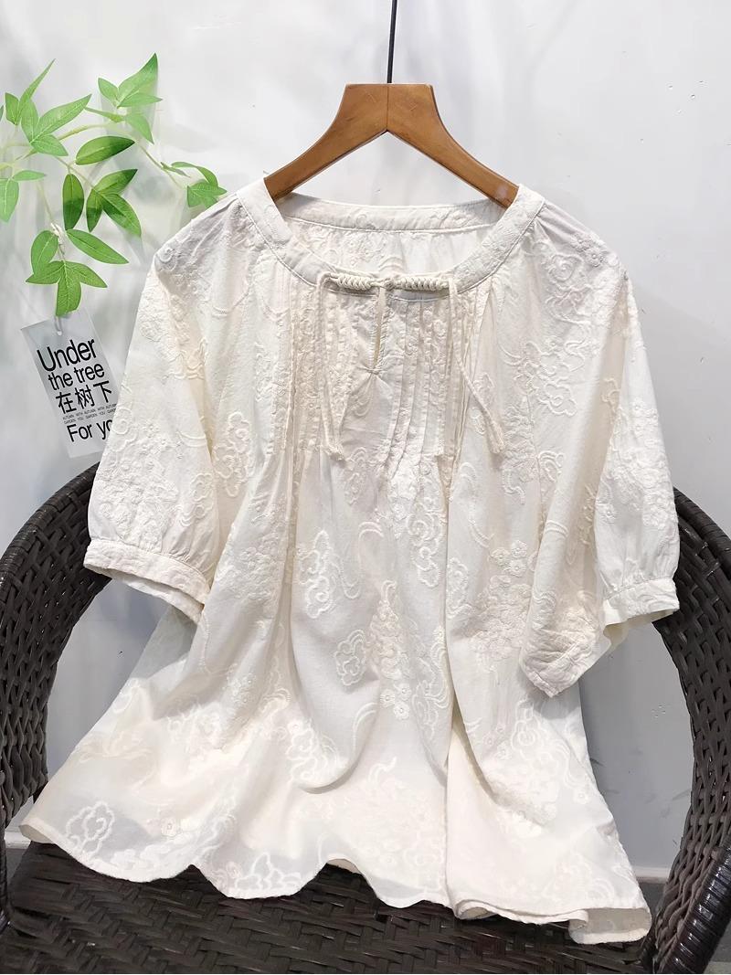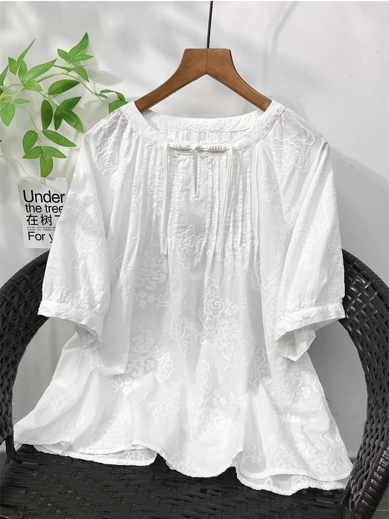 Elegante Top Estilo Cálido Camisa Pequeña Algodón Bordado Botón Decorativo Suéter Holgado Camisa Manga Corta para Mujer Verano