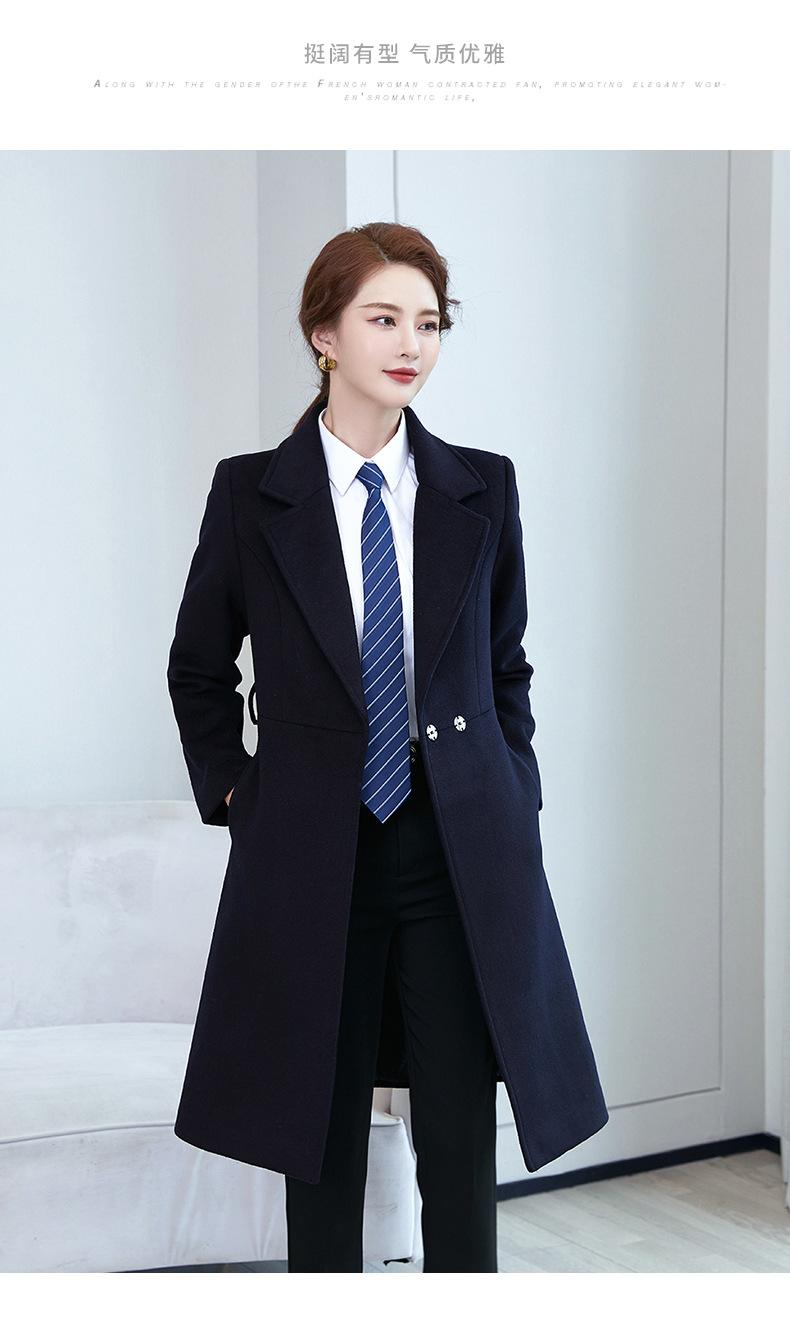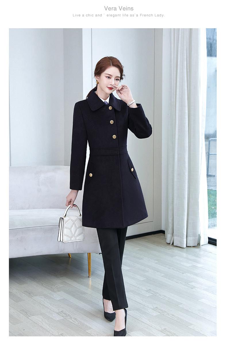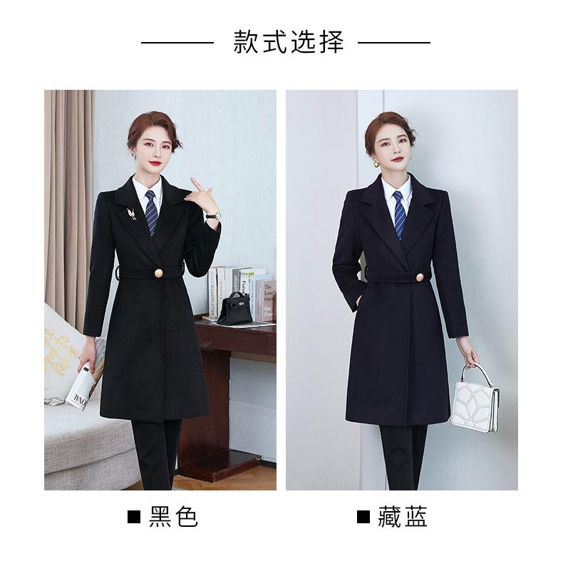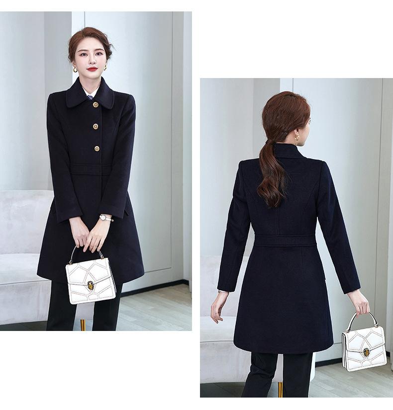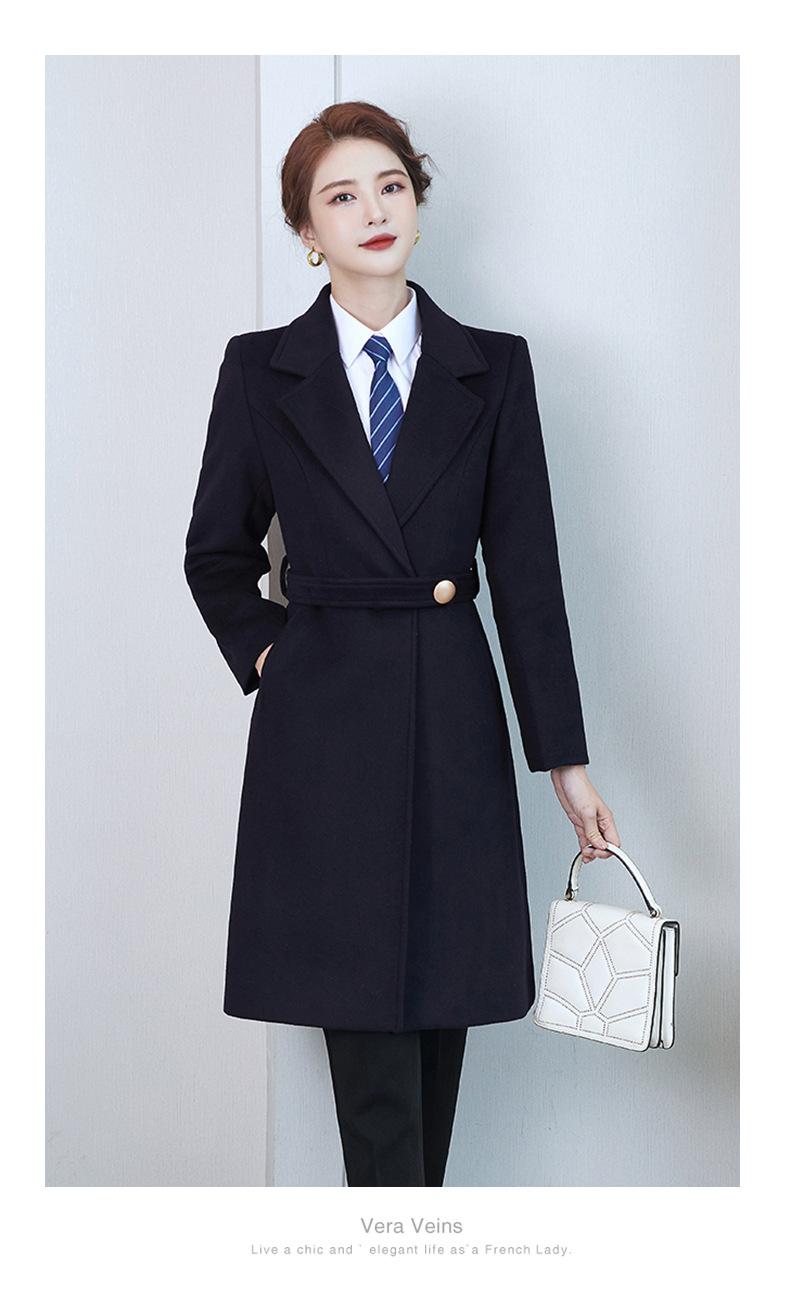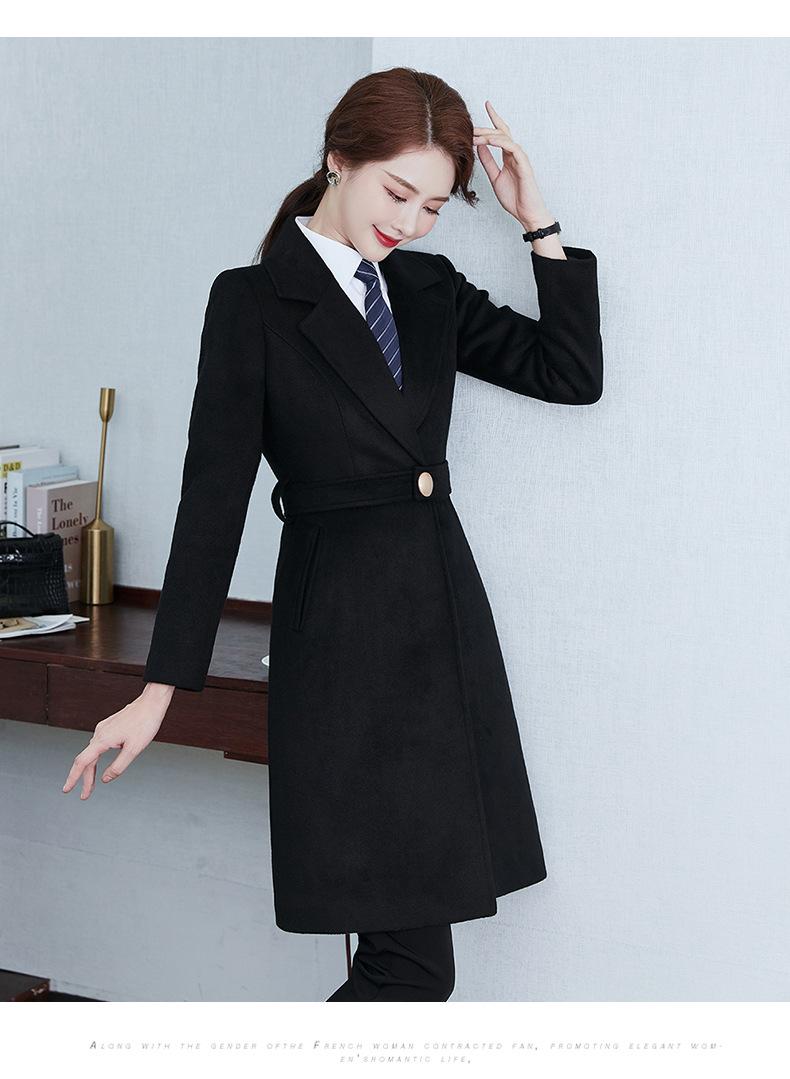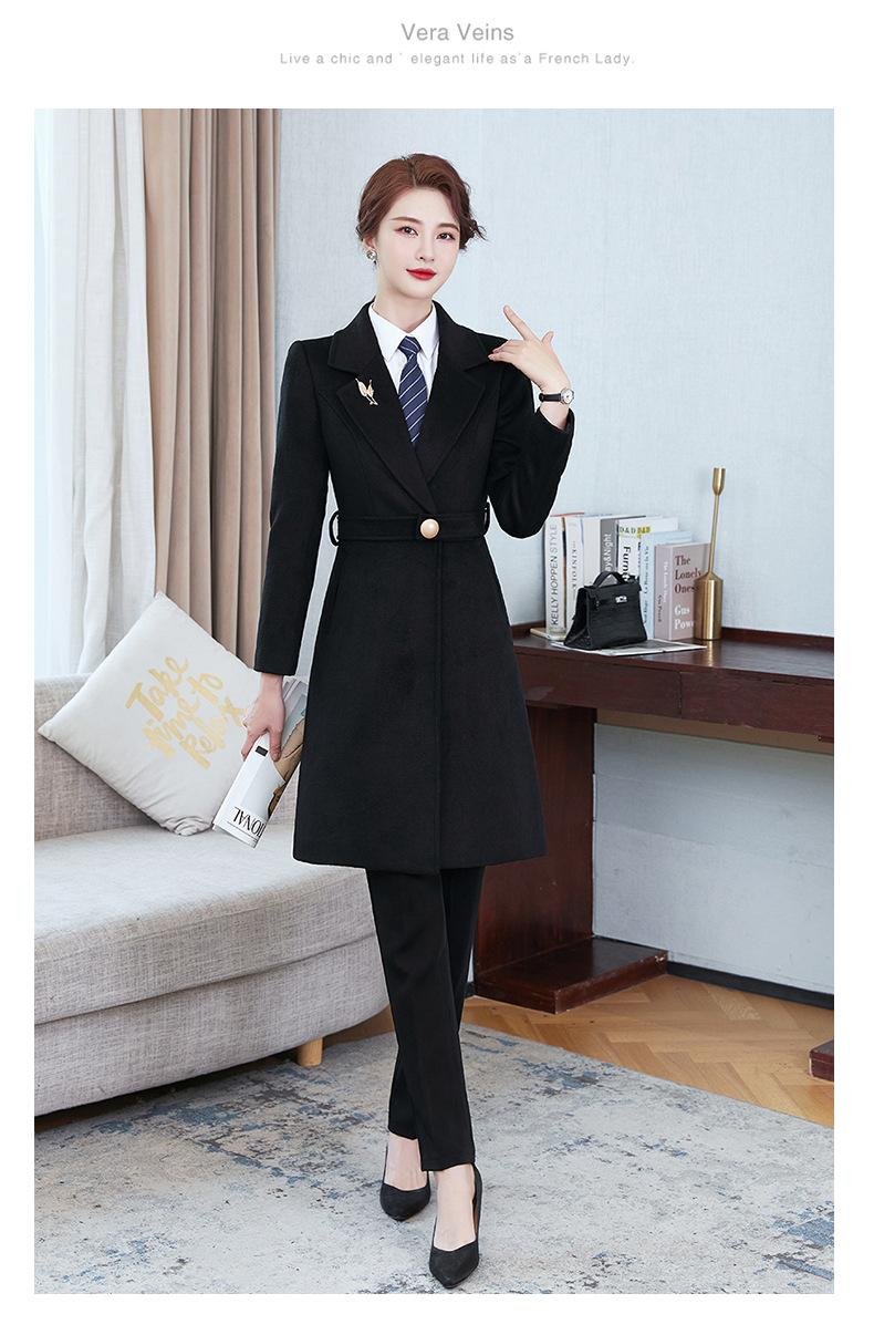 Abrigo de Lana Ropa Profesional para Mujer Otoño e Invierno Ropa de Trabajo con Cinturón Abrigo de Lana de Manga Larga Abrigo de Lana Extra Largo