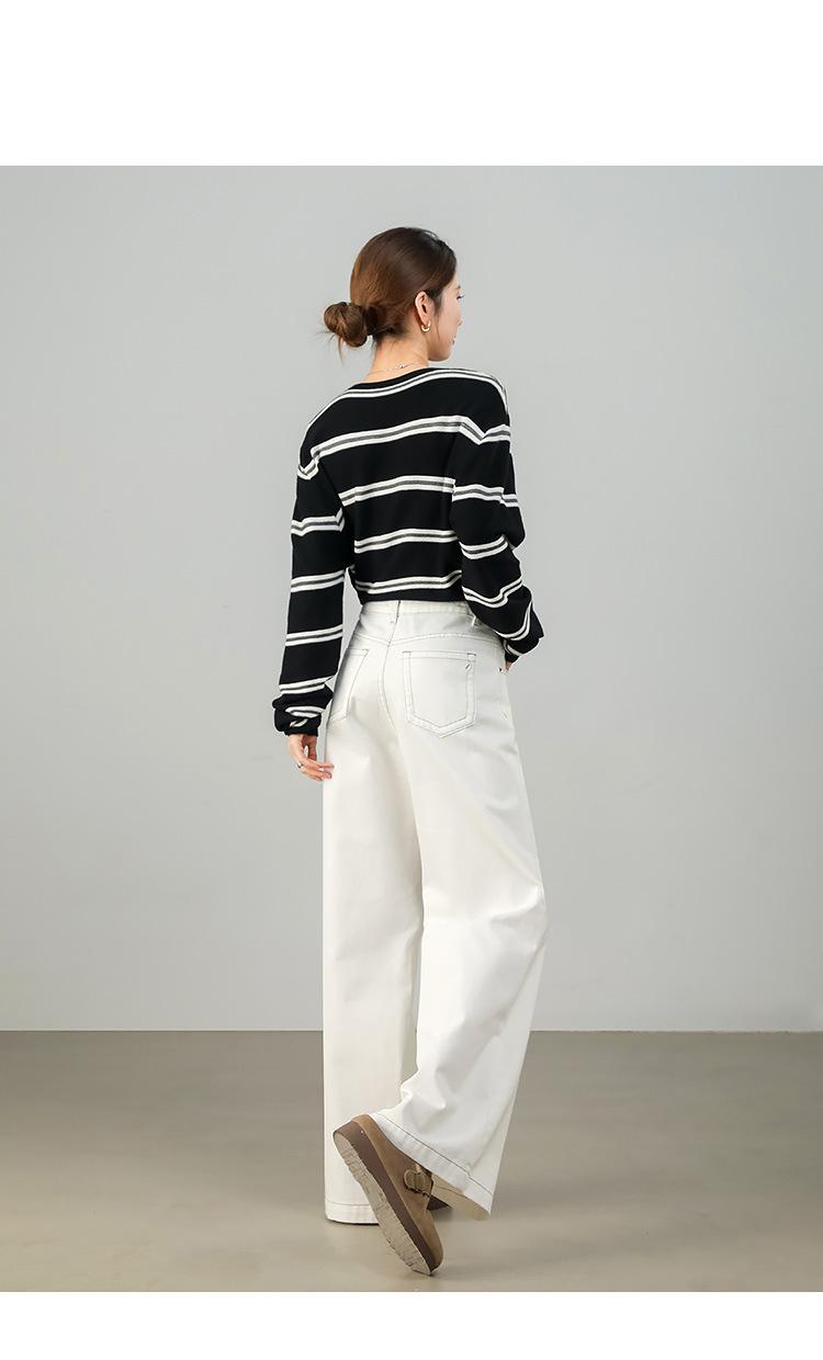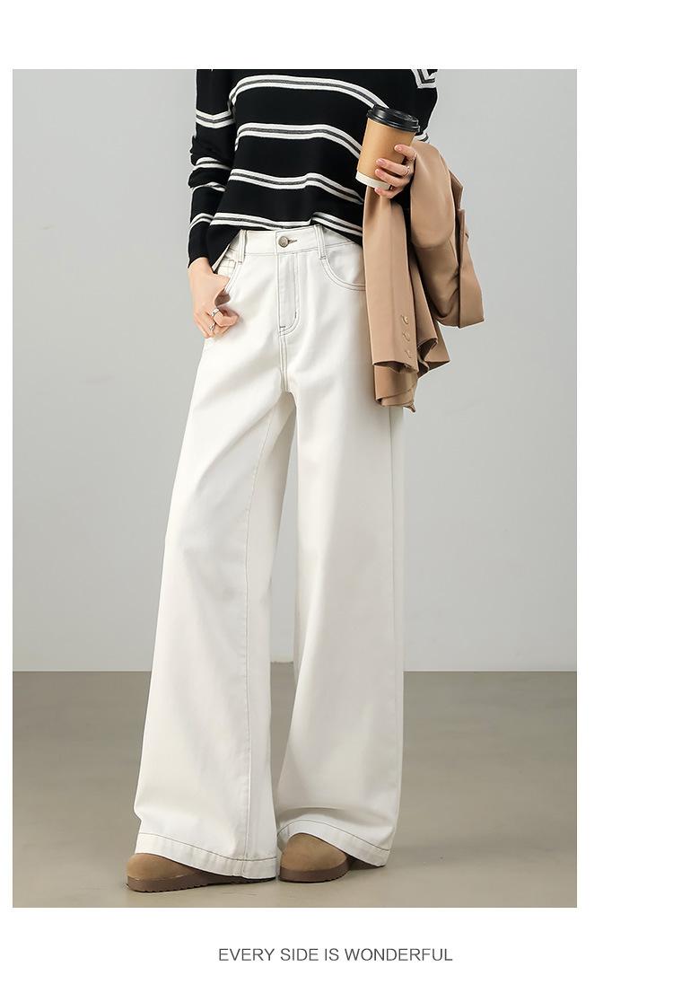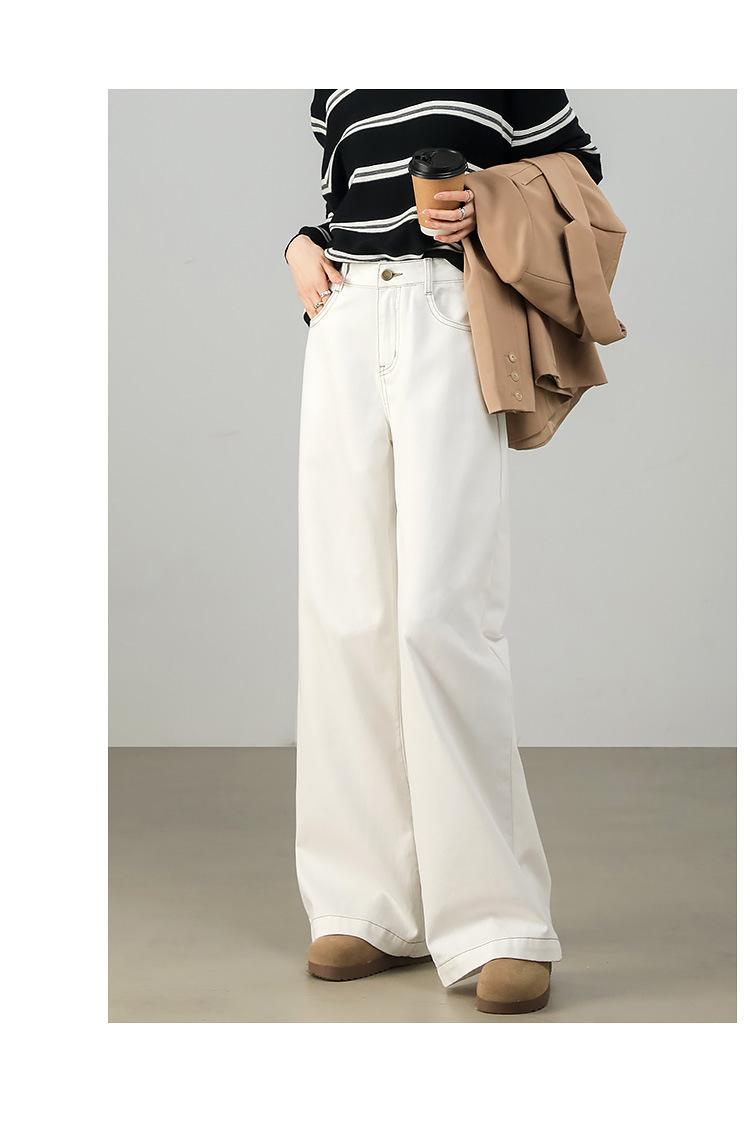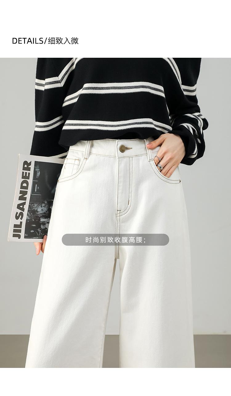 Jeans blancos personalizados hasta el suelo estilo vintage de primavera cintura alta drapeados de pierna ancha calidad favorecedores para mujer
