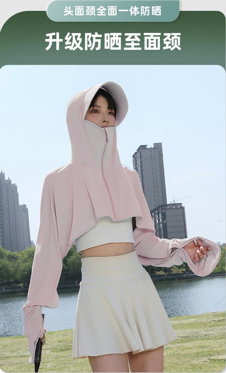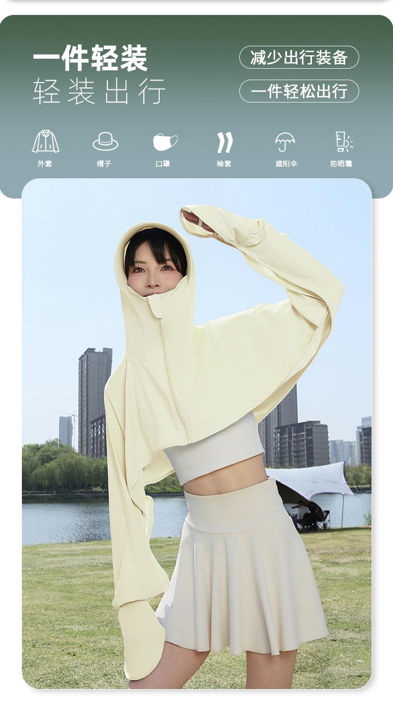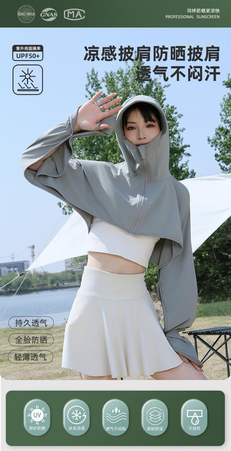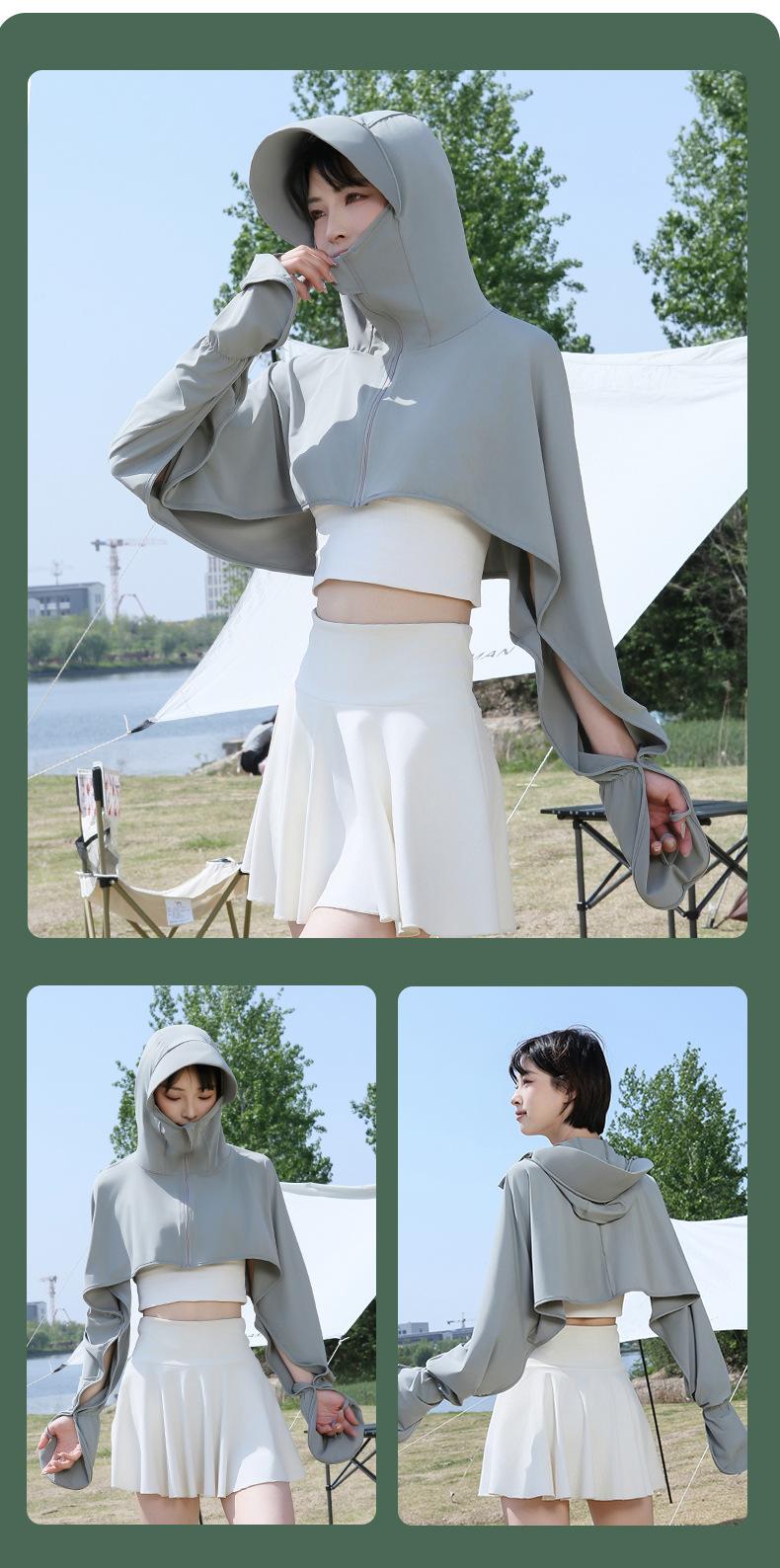 Ropa de Protección Solar para Mujer Verano Nuevo Capa Chal Seda Hielo Exterior Anti-UV Transpirable Corta con Capucha Fina Ropa de Protección Solar