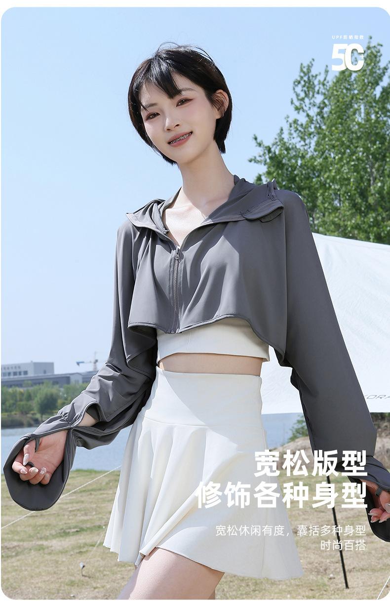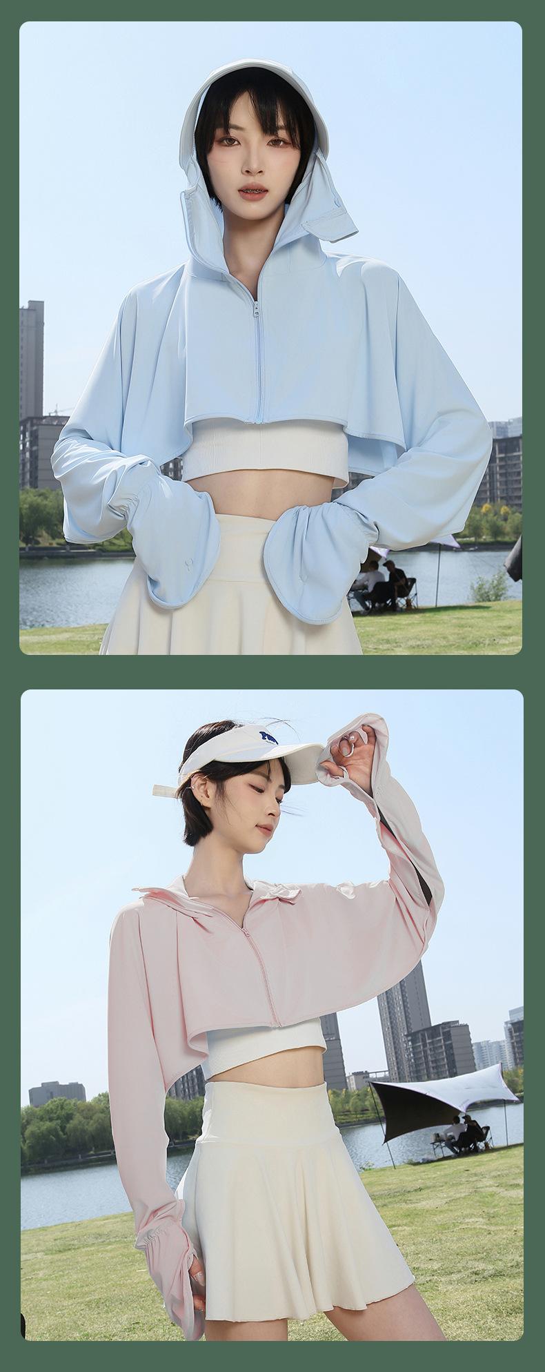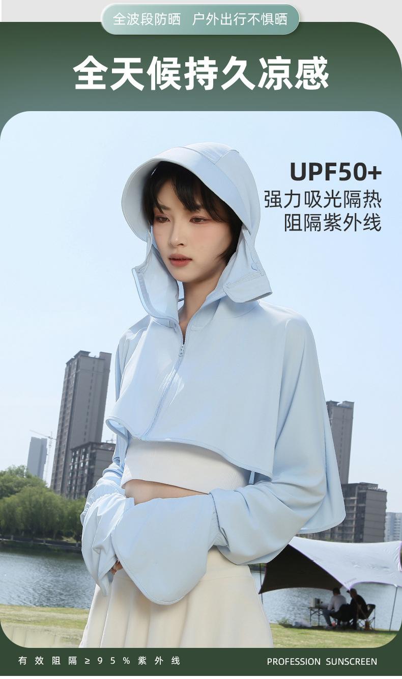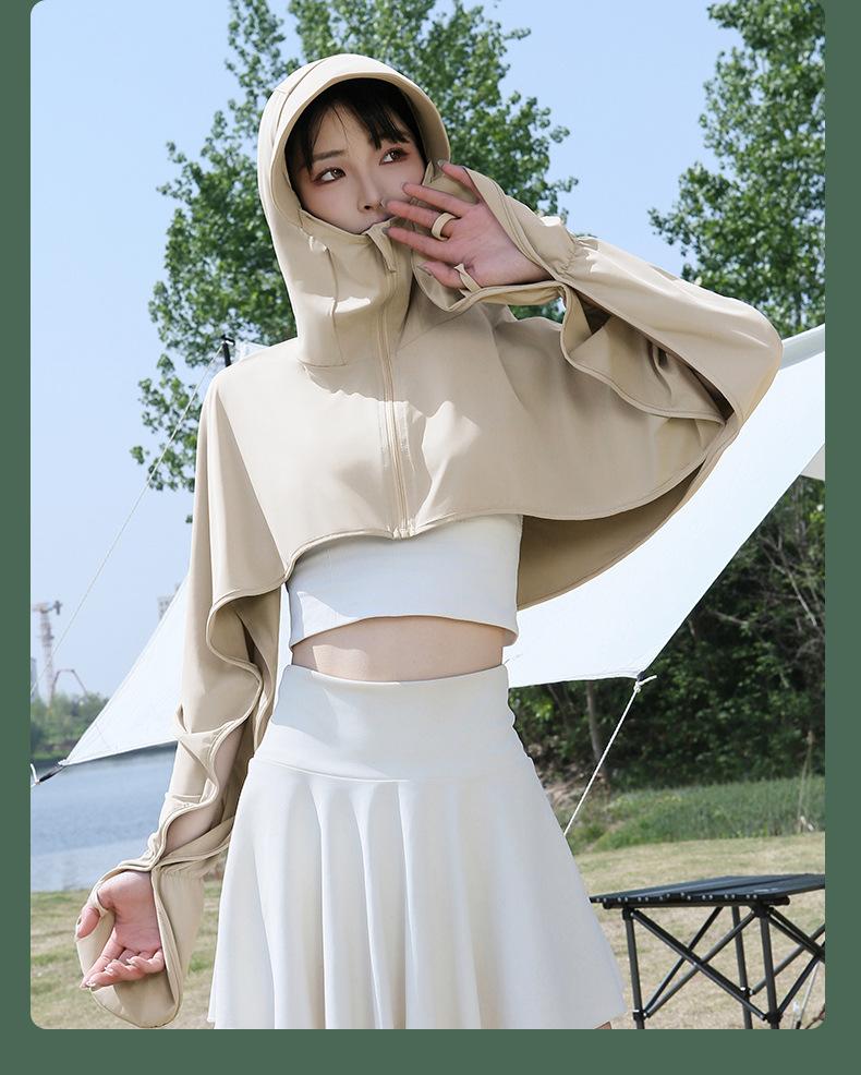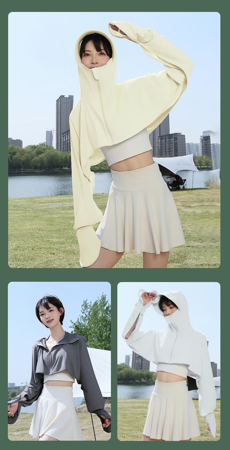 Ropa de Protección Solar para Mujer Verano Nuevo Capa Chal Seda Hielo Exterior Anti-UV Transpirable Corta con Capucha Fina Ropa de Protección Solar