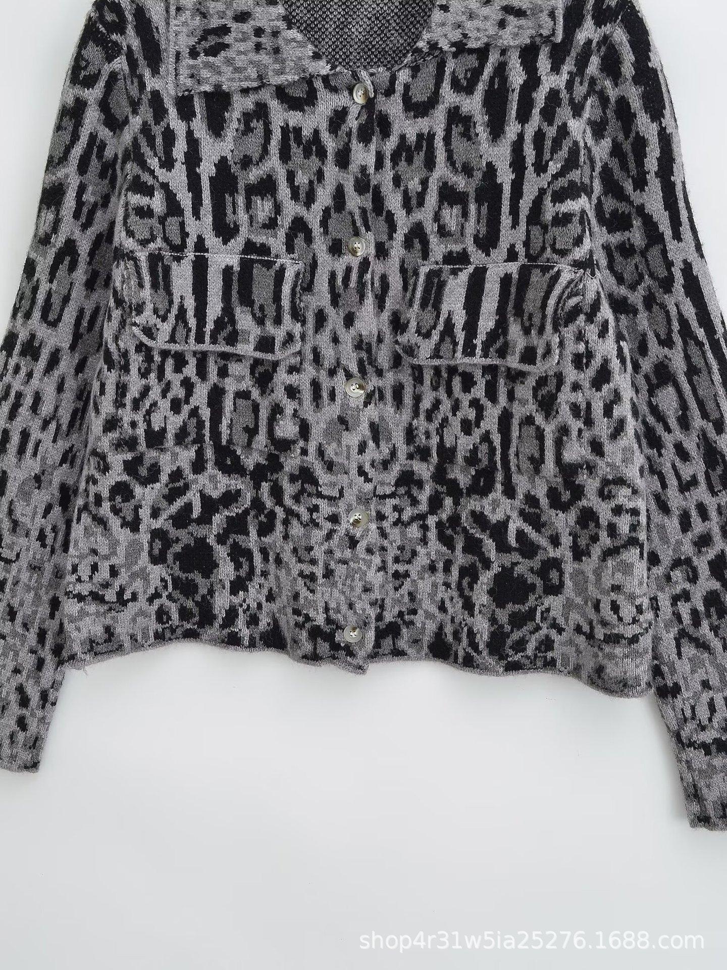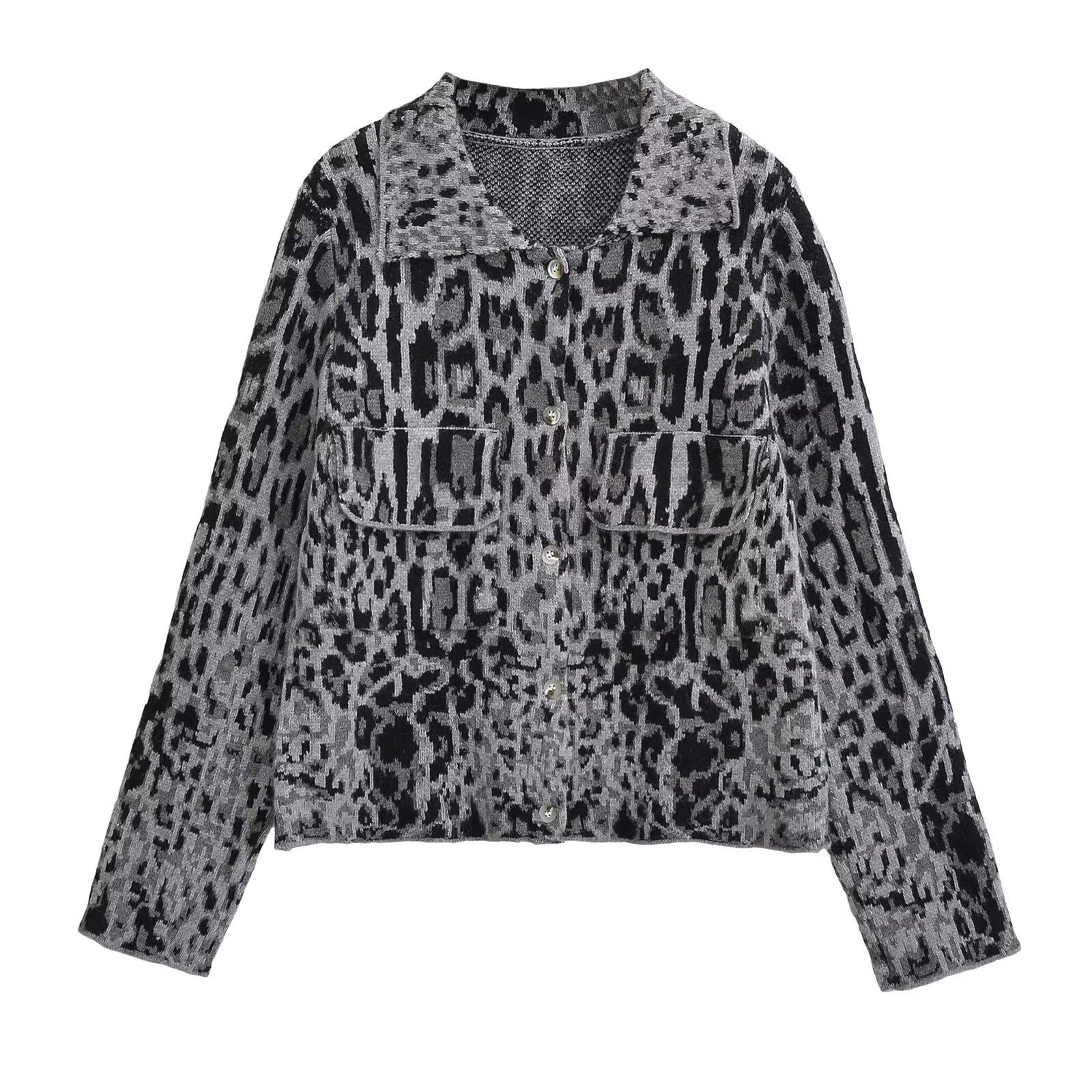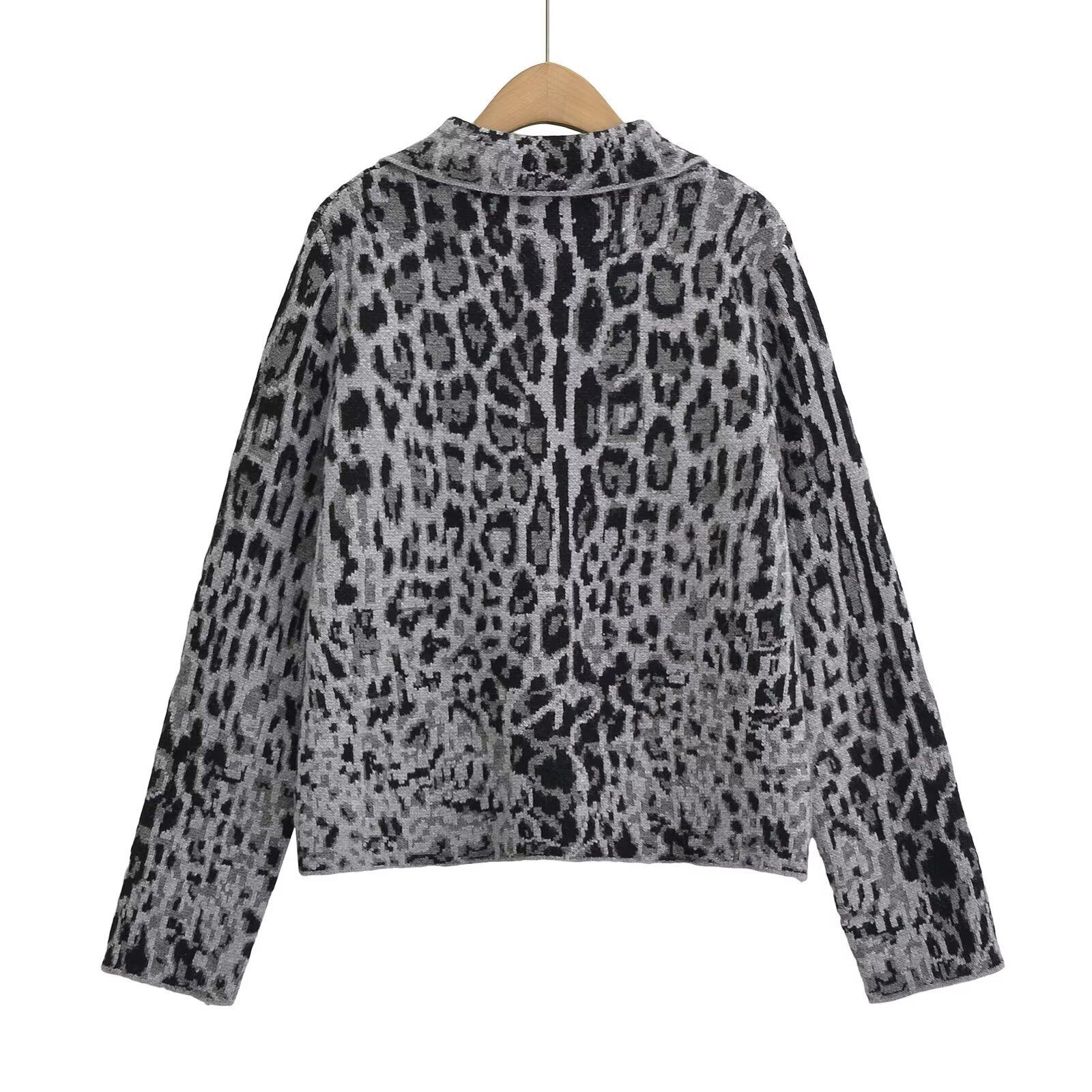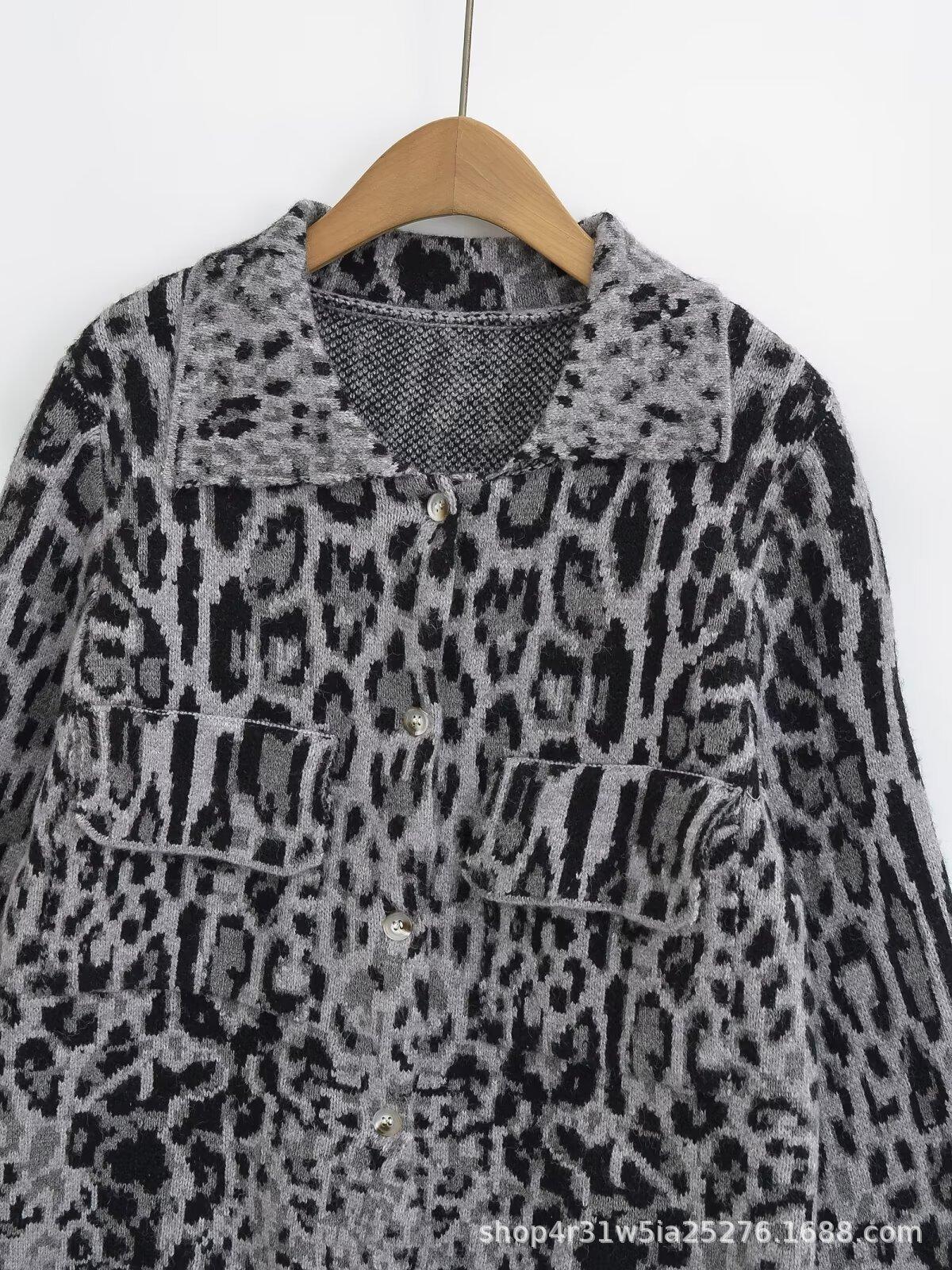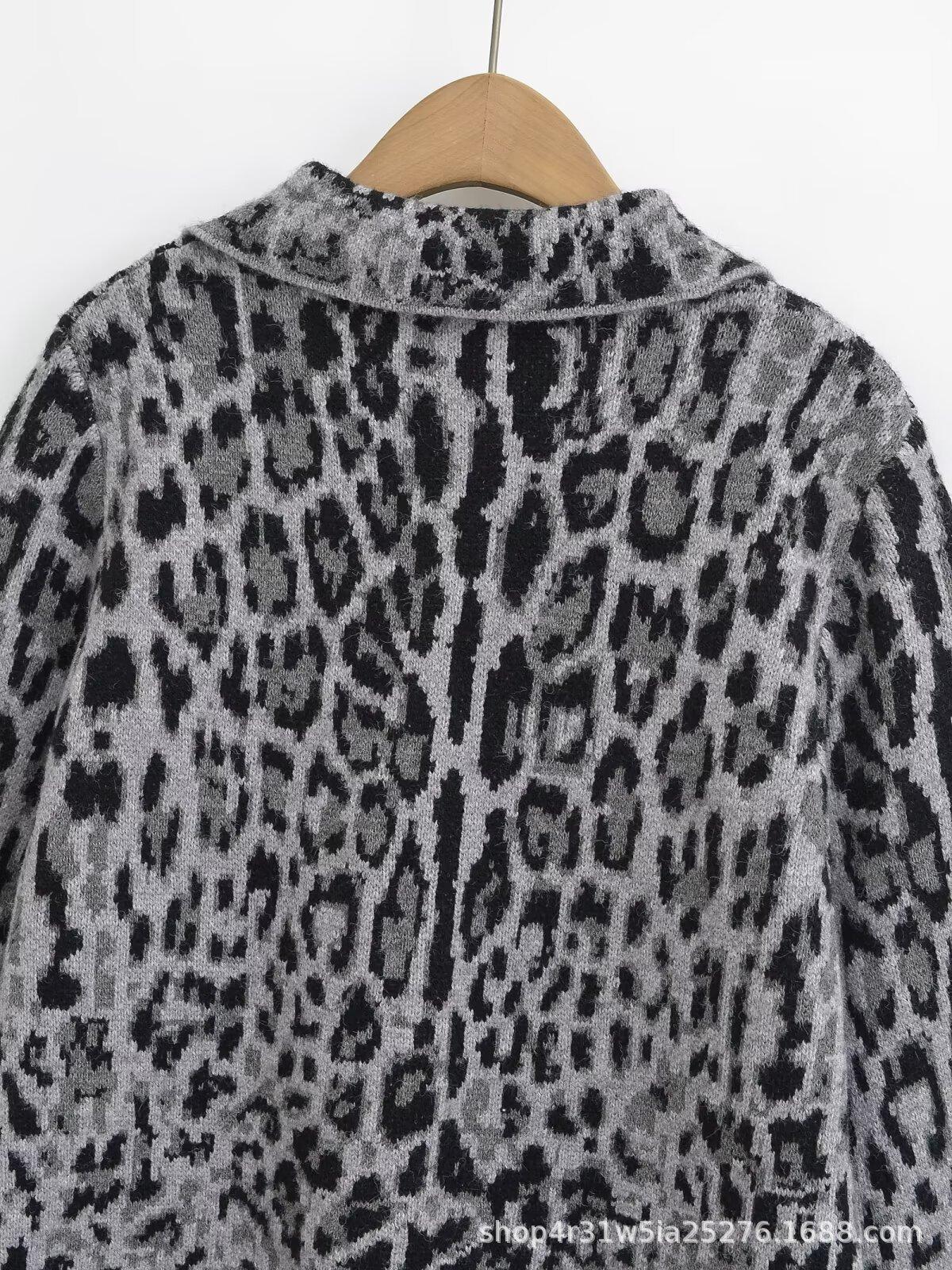 Cárdigan de punto holgado y perezoso de invierno europeo y americano 2024 con hebilla, jacquard animal en solapas, manga larga, abrigo suéter para mujer