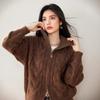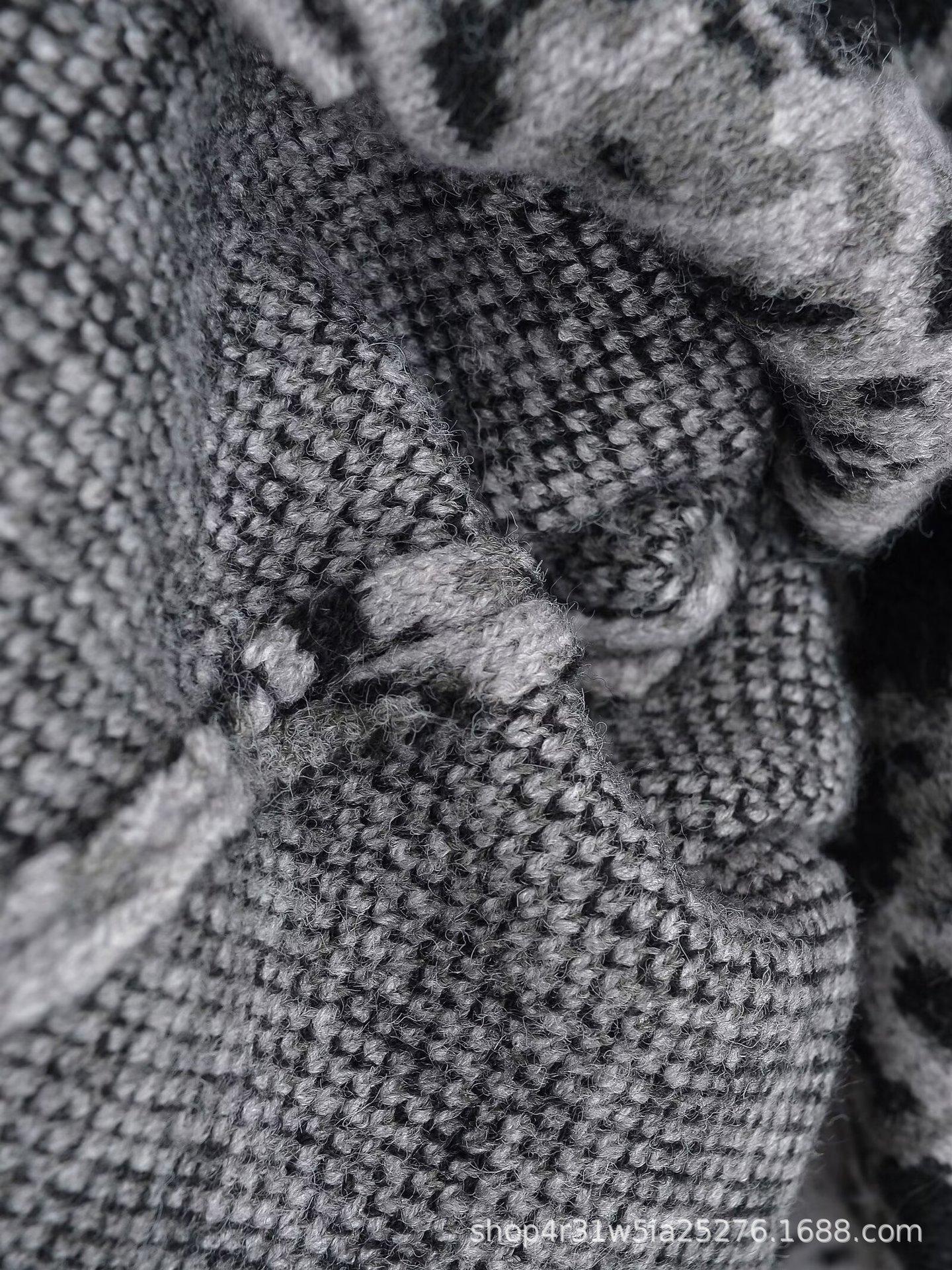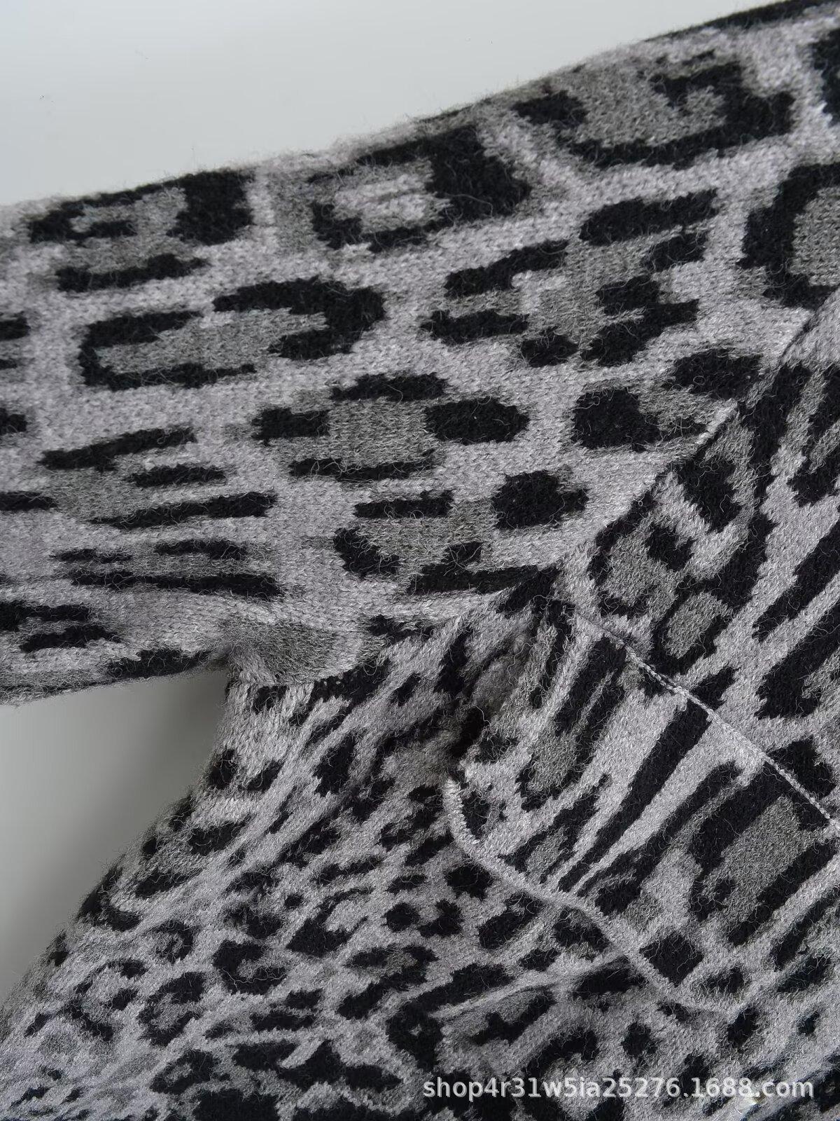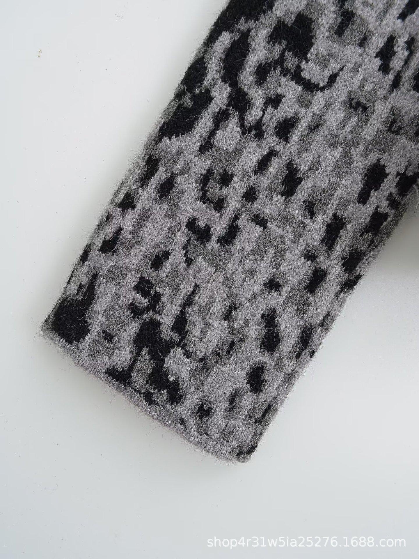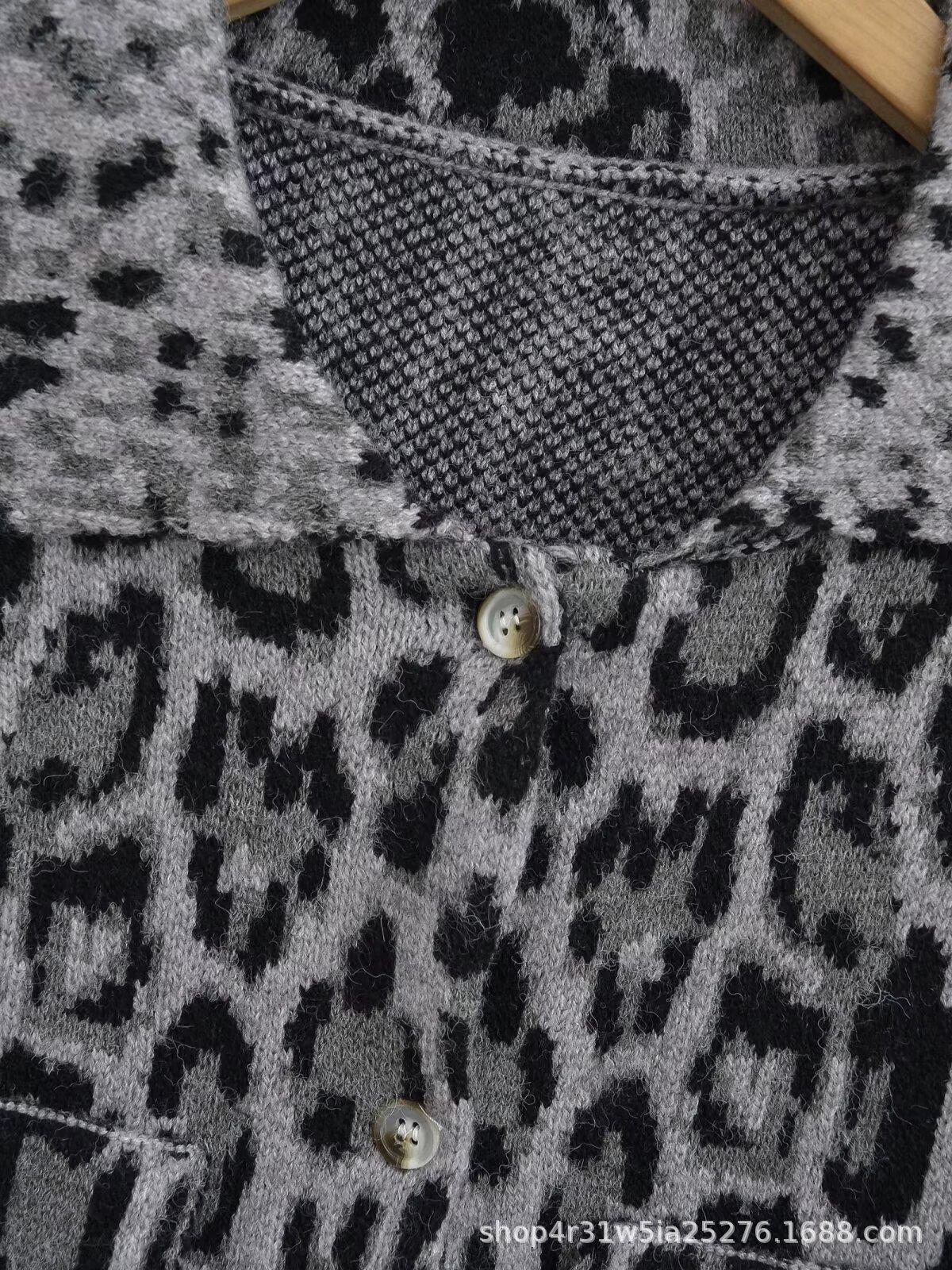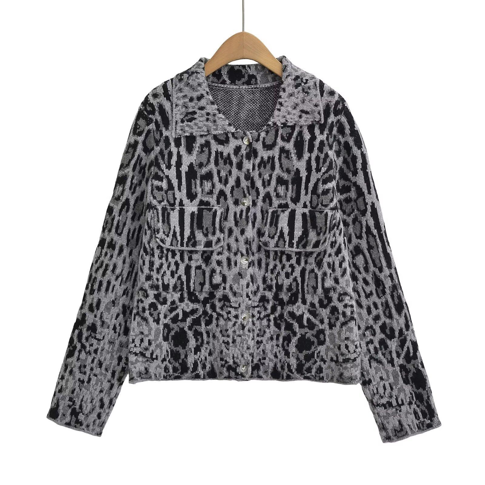 Cárdigan de punto holgado y perezoso de invierno europeo y americano 2024 con hebilla, jacquard animal en solapas, manga larga, abrigo suéter para mujer