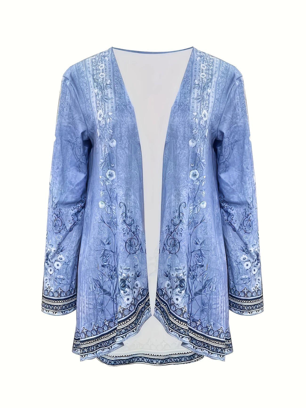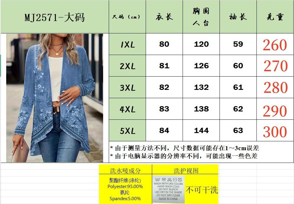 Cárdigan Europeo y Americano Transfronterizo de Otoño 2025 sin Botones Manga Larga Estampado de Flores de Plantas Capa para Mujer Cortavientos Talla Grande Ropa de Mujer