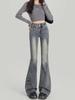 Retro Azul Doble Hebilla Micro La Jeans Mujer Primavera y Otoño 2025 Nuevo Diseño Ajustado Adelgazante Elástico Pantalones Acampanados