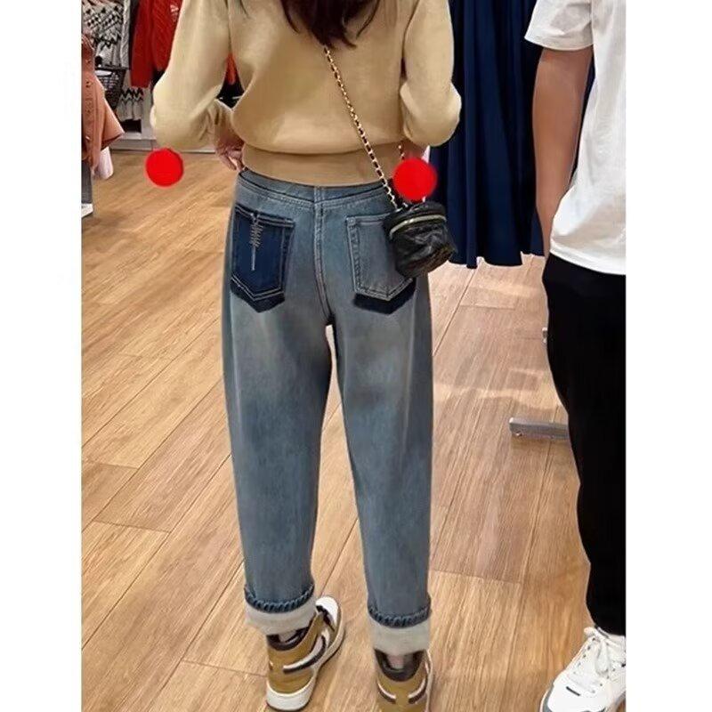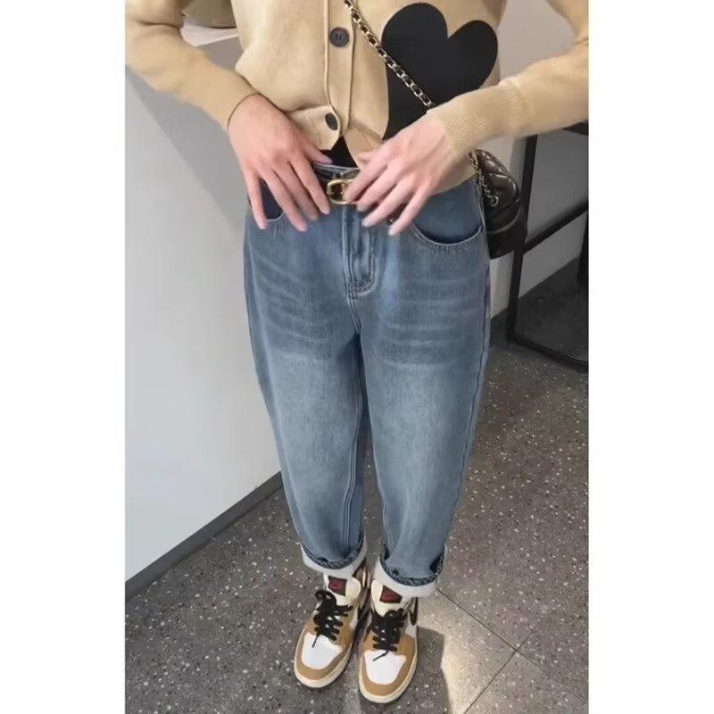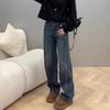 Pantalones vaqueros rectos holgados para mujer, primavera otoño e invierno 2025, nuevos, de cintura alta, adelgazantes, de pierna ancha y pequeña.