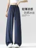 Calças Azul Marinho Protetor Solar Perna Larga Feminina 2025 Novo Verão Cintura Alta Dosagem Seda Gelo Casual Reta Verão Calças Leves