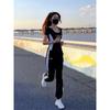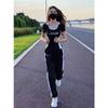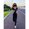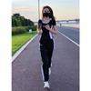 Traje Deportivo Negro para Correr para Mujer 2025 Verano Nuevo Manga Corta Correr Matutino Dos Piezas Moda Casual Traje Deportivo