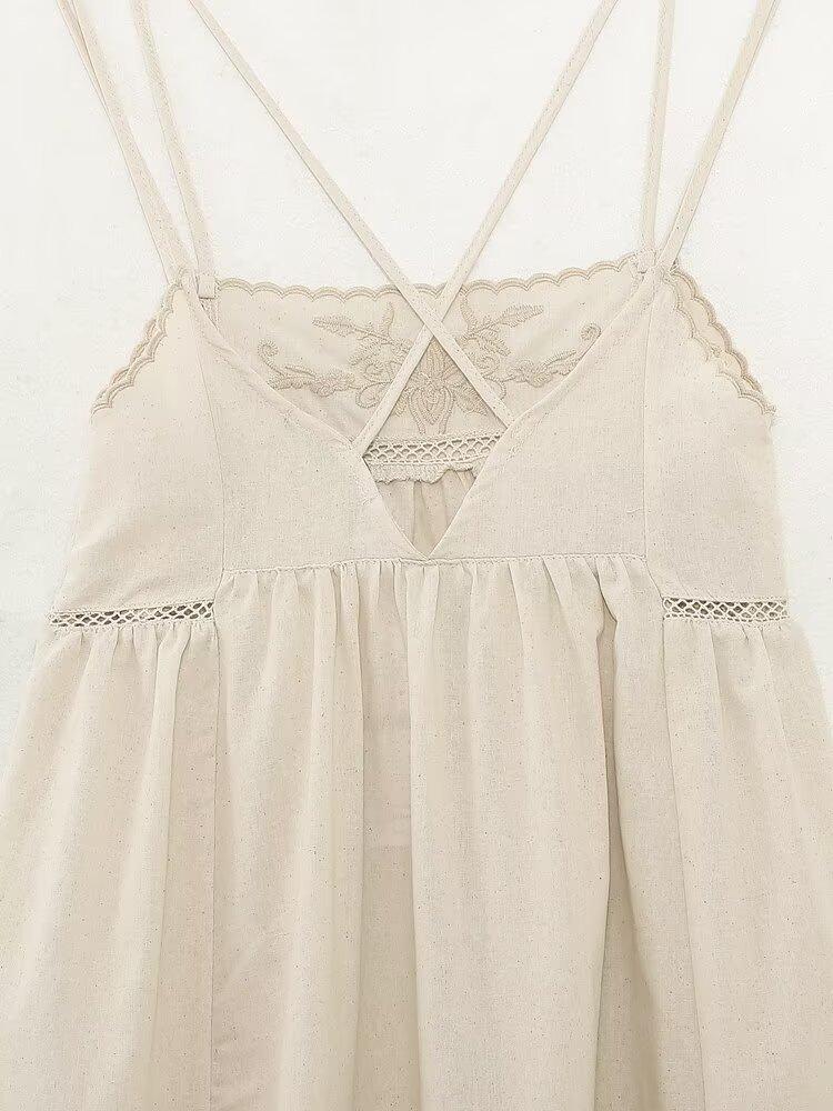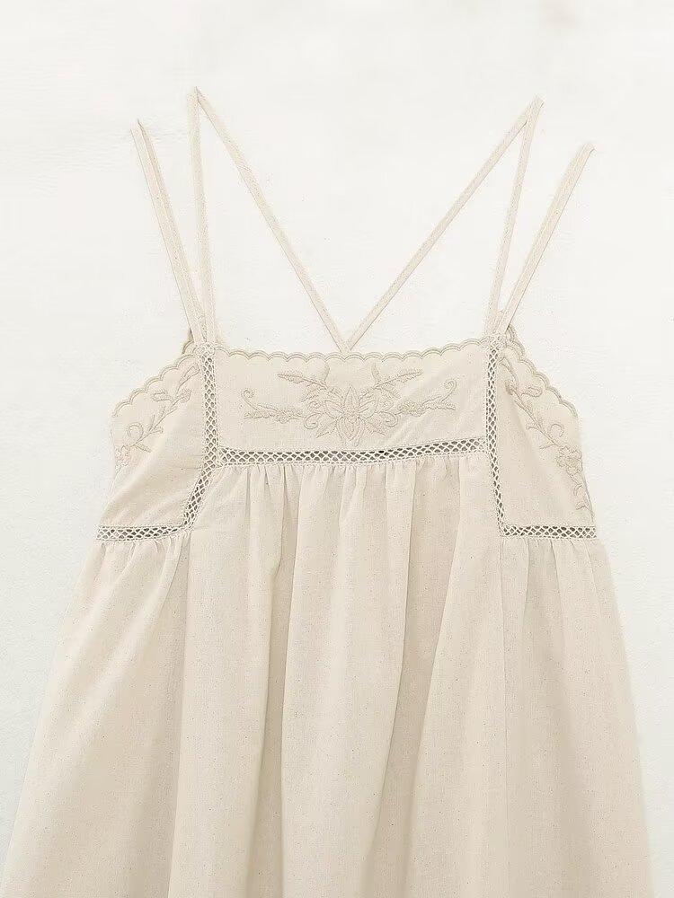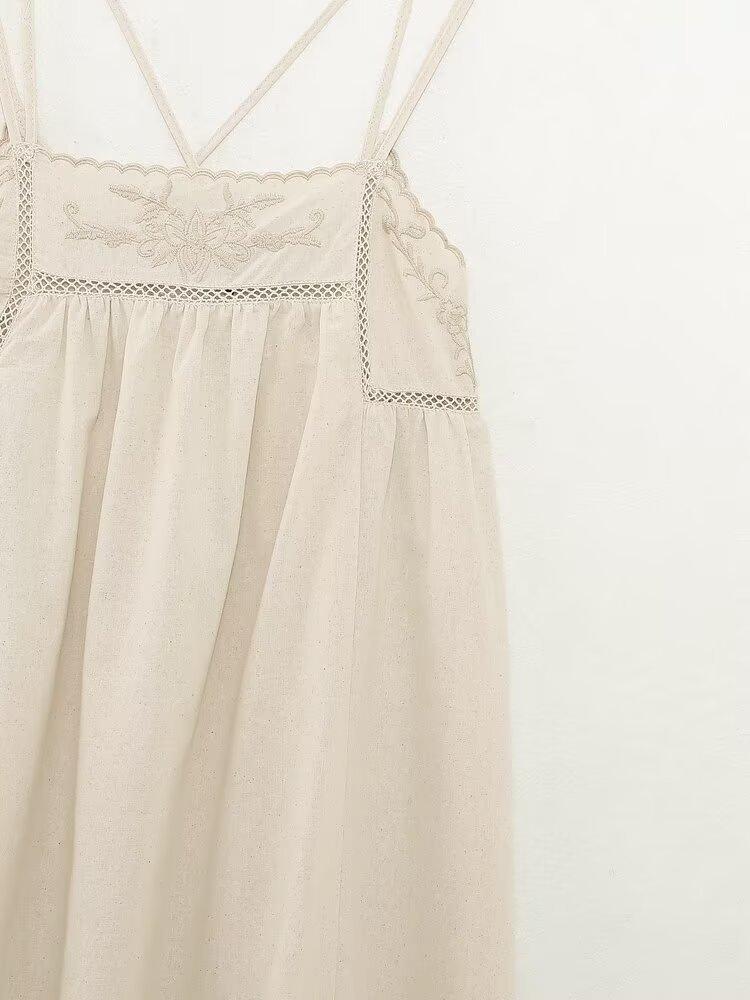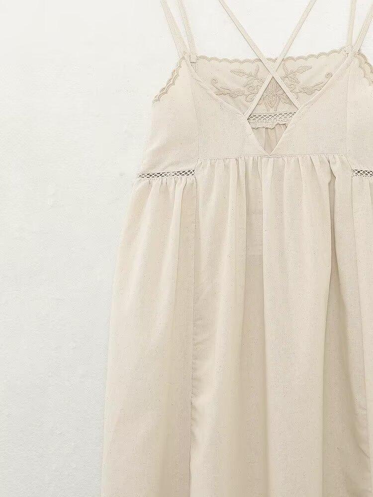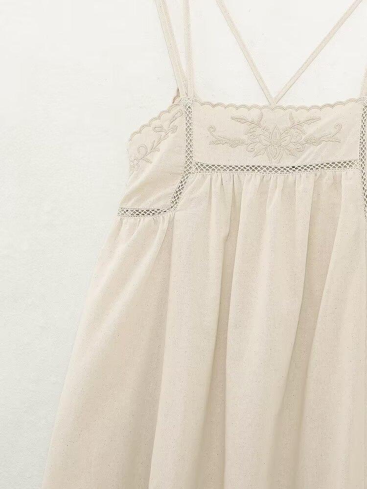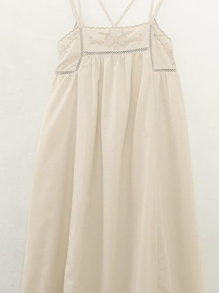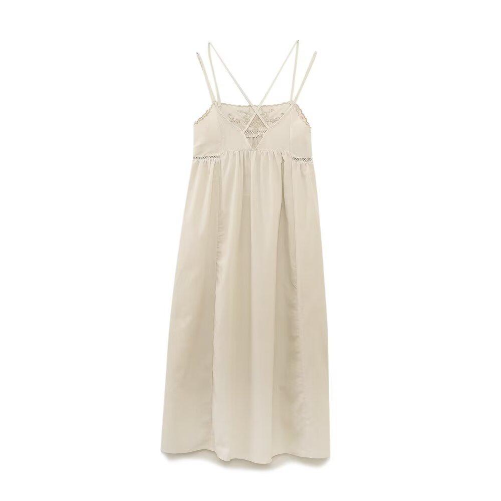 Ropa Europea y Americana Transfronteriza 2025 Primavera Nuevo Vestido Elegante de Encaje Bordado con Tirantes de Alta Gama 720039
