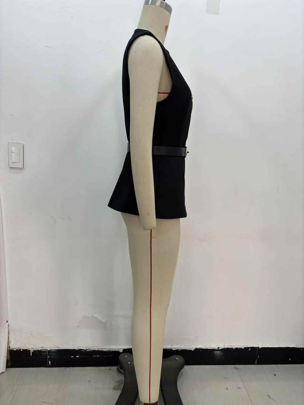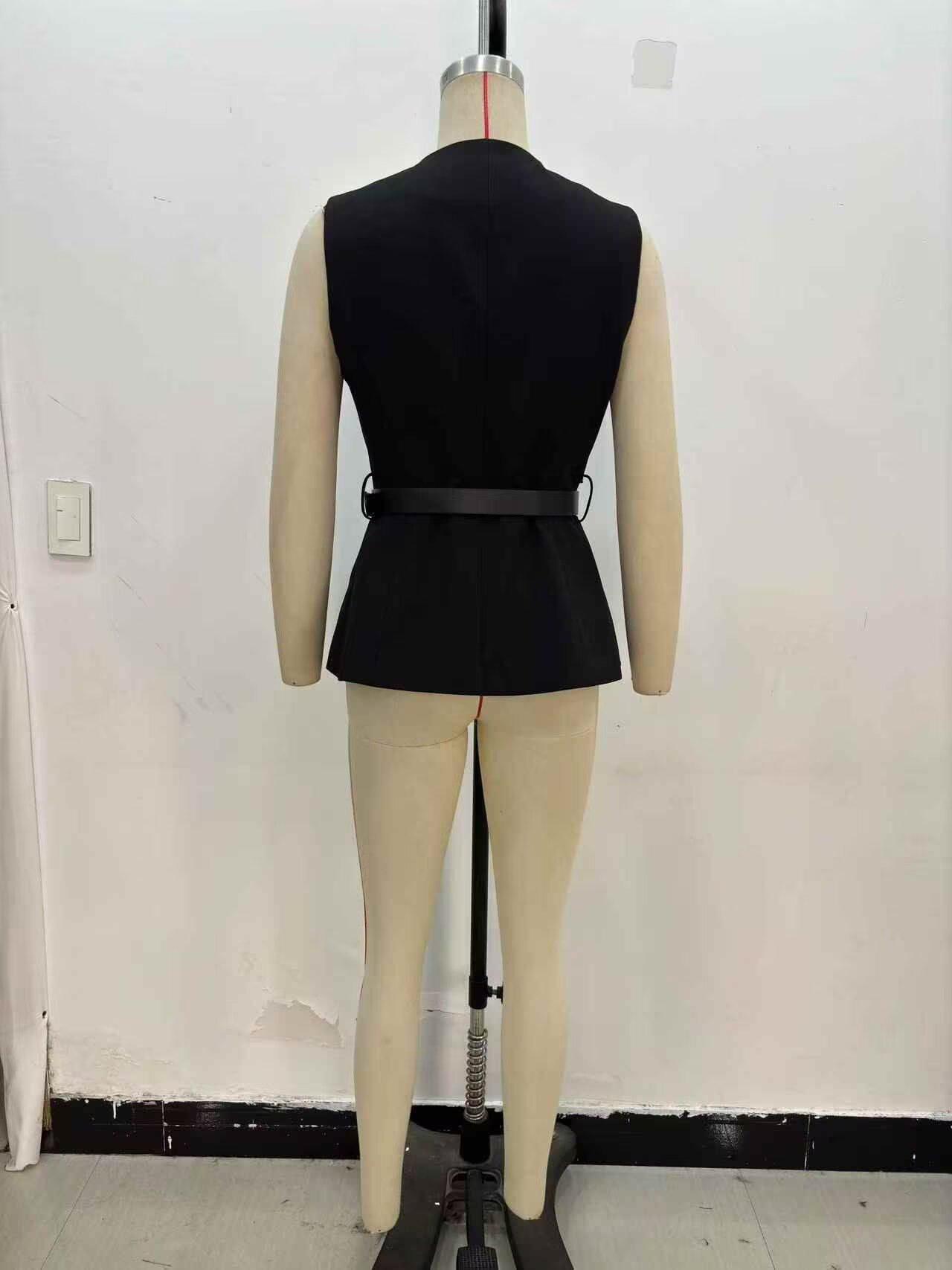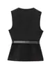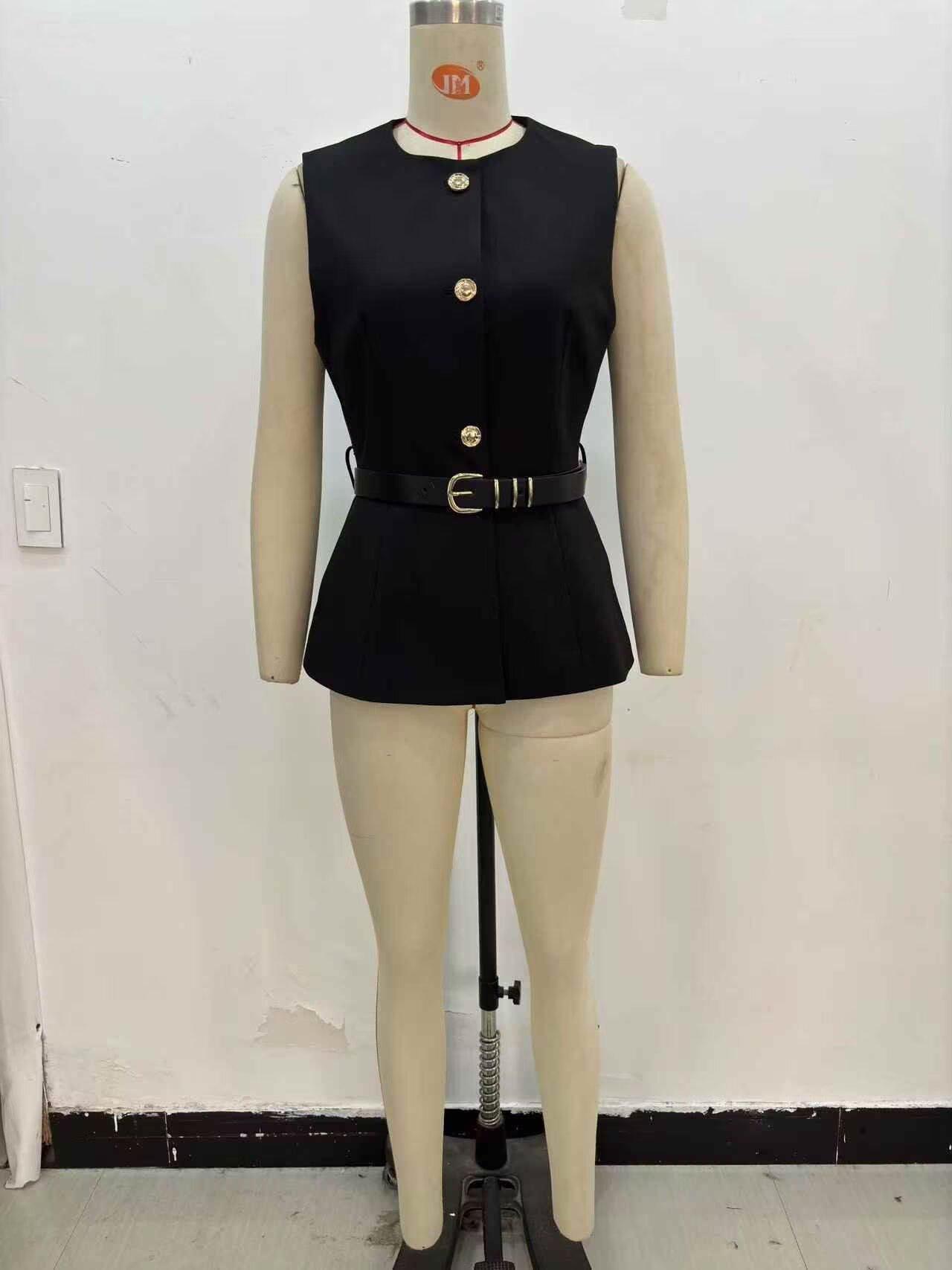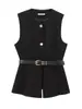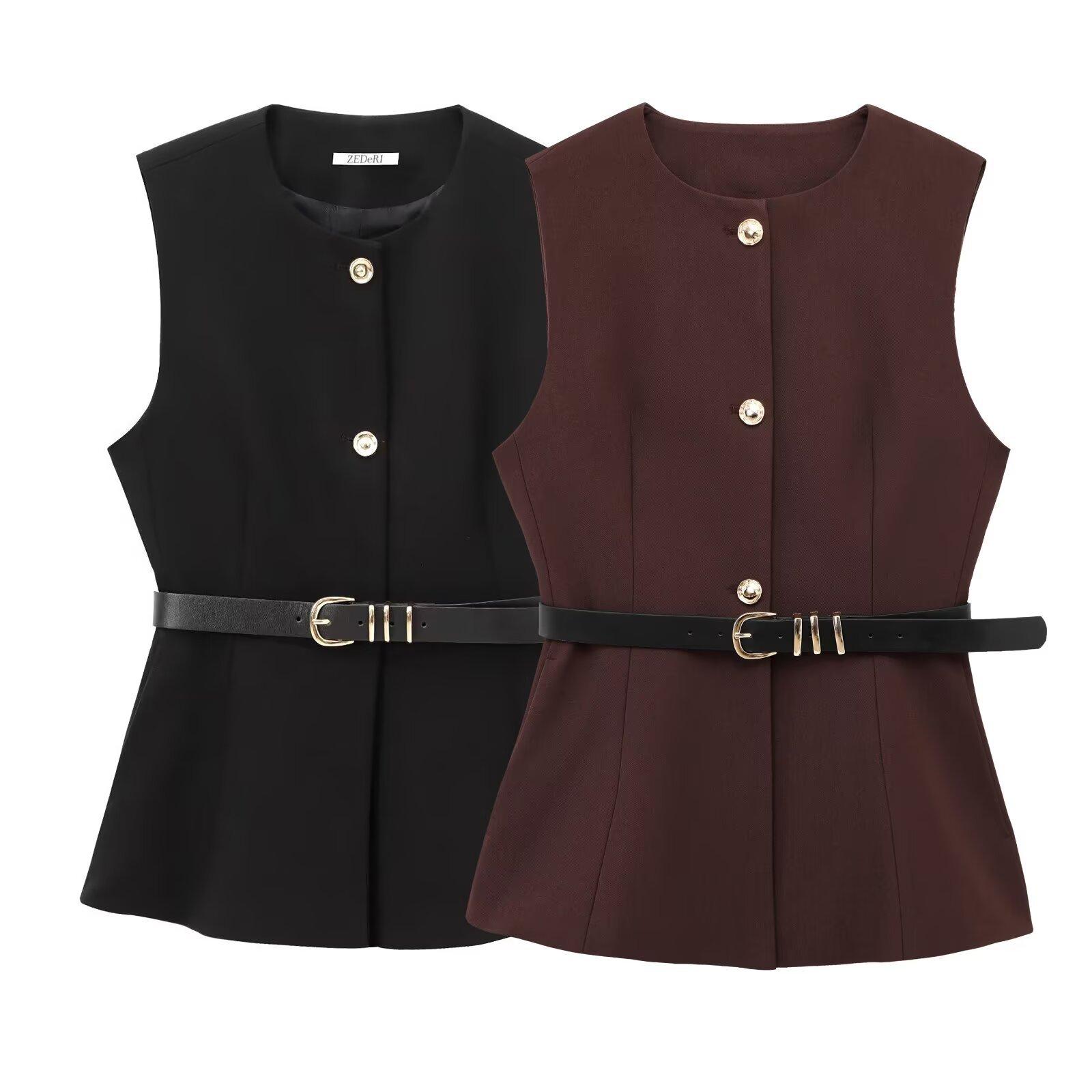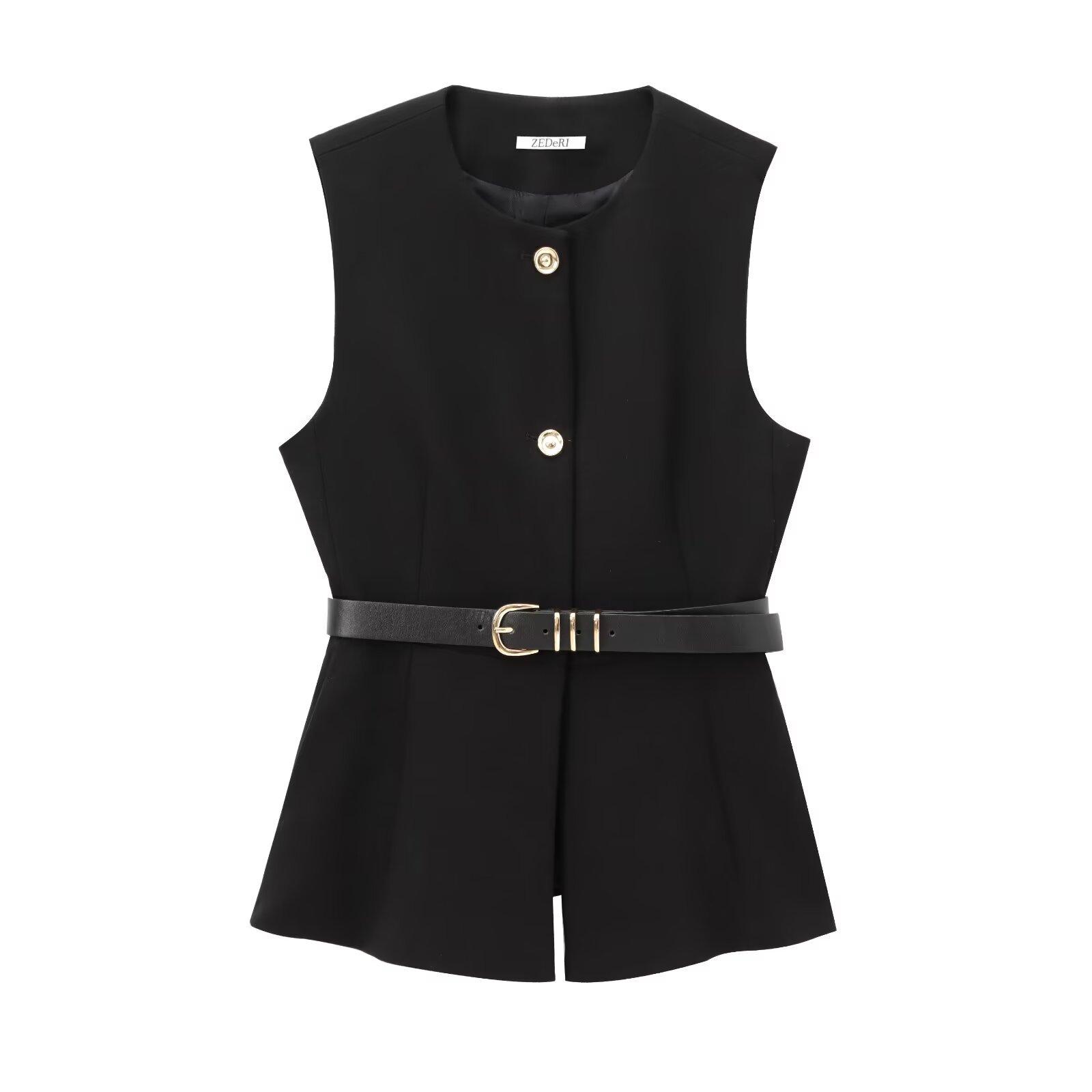 Comercio Exterior Mujer 2025 Primavera Nuevo Estilo Europeo y Americano Cuello Redondo Cinturón Sencillo Sin Mangas Cuello Redondo Chaleco