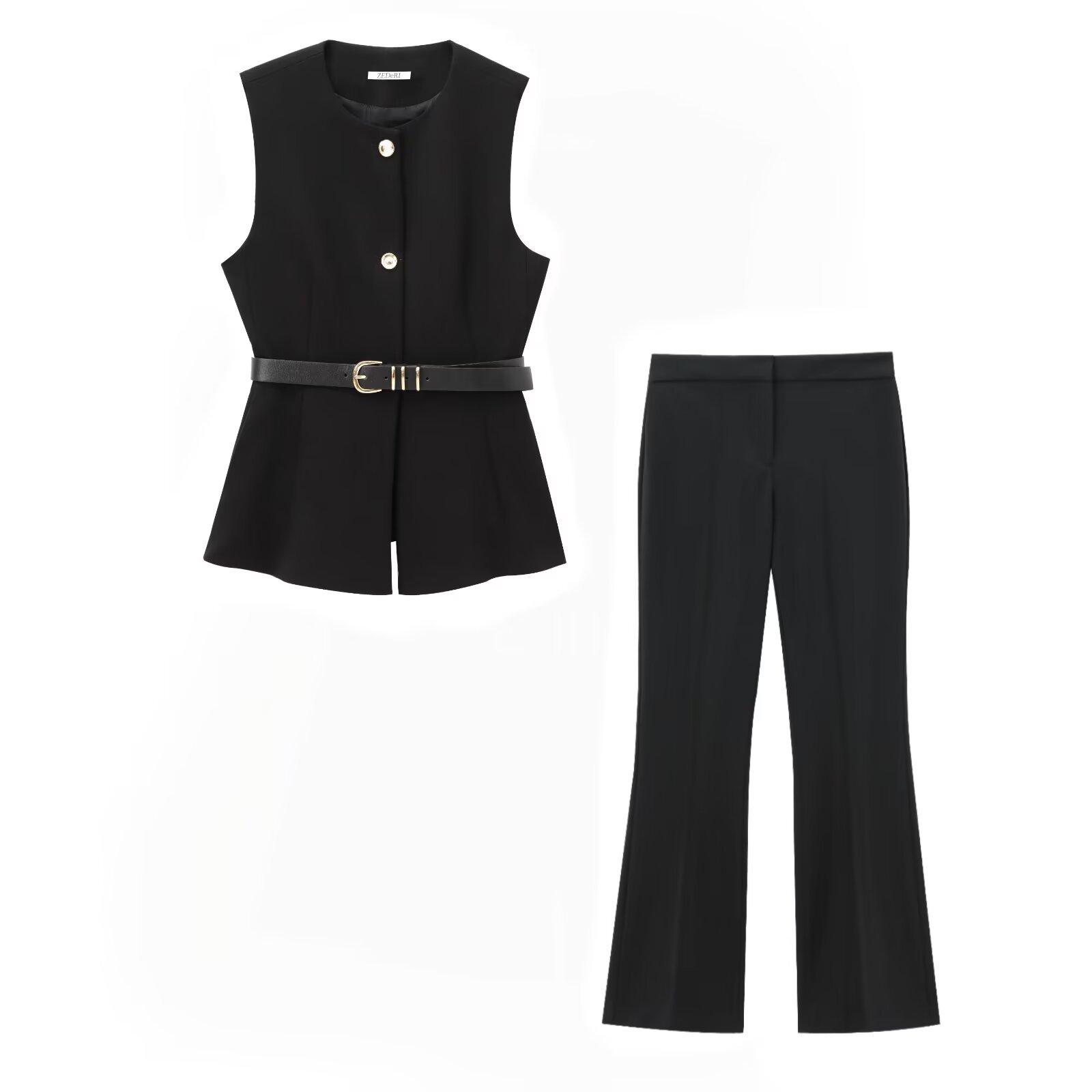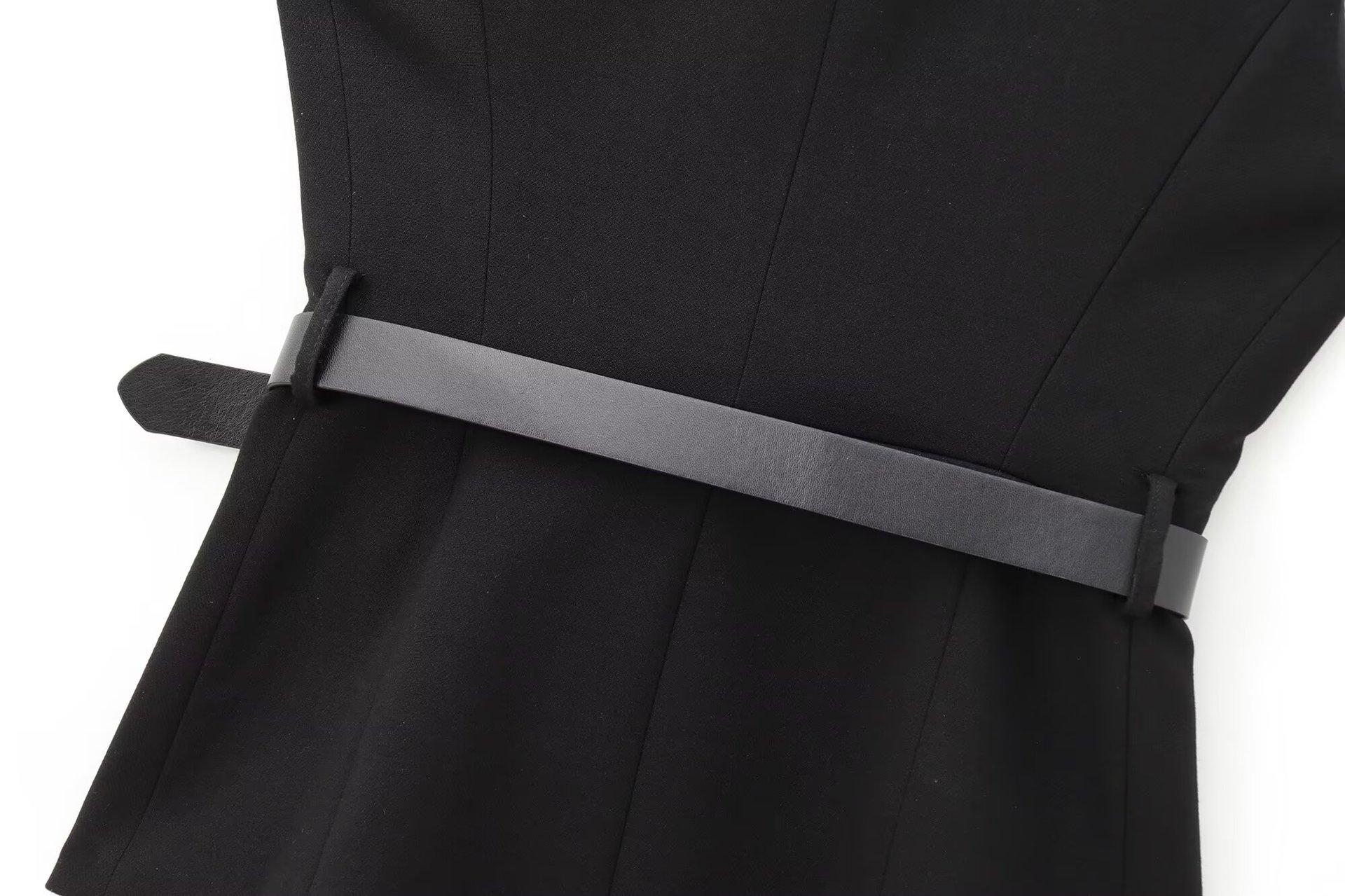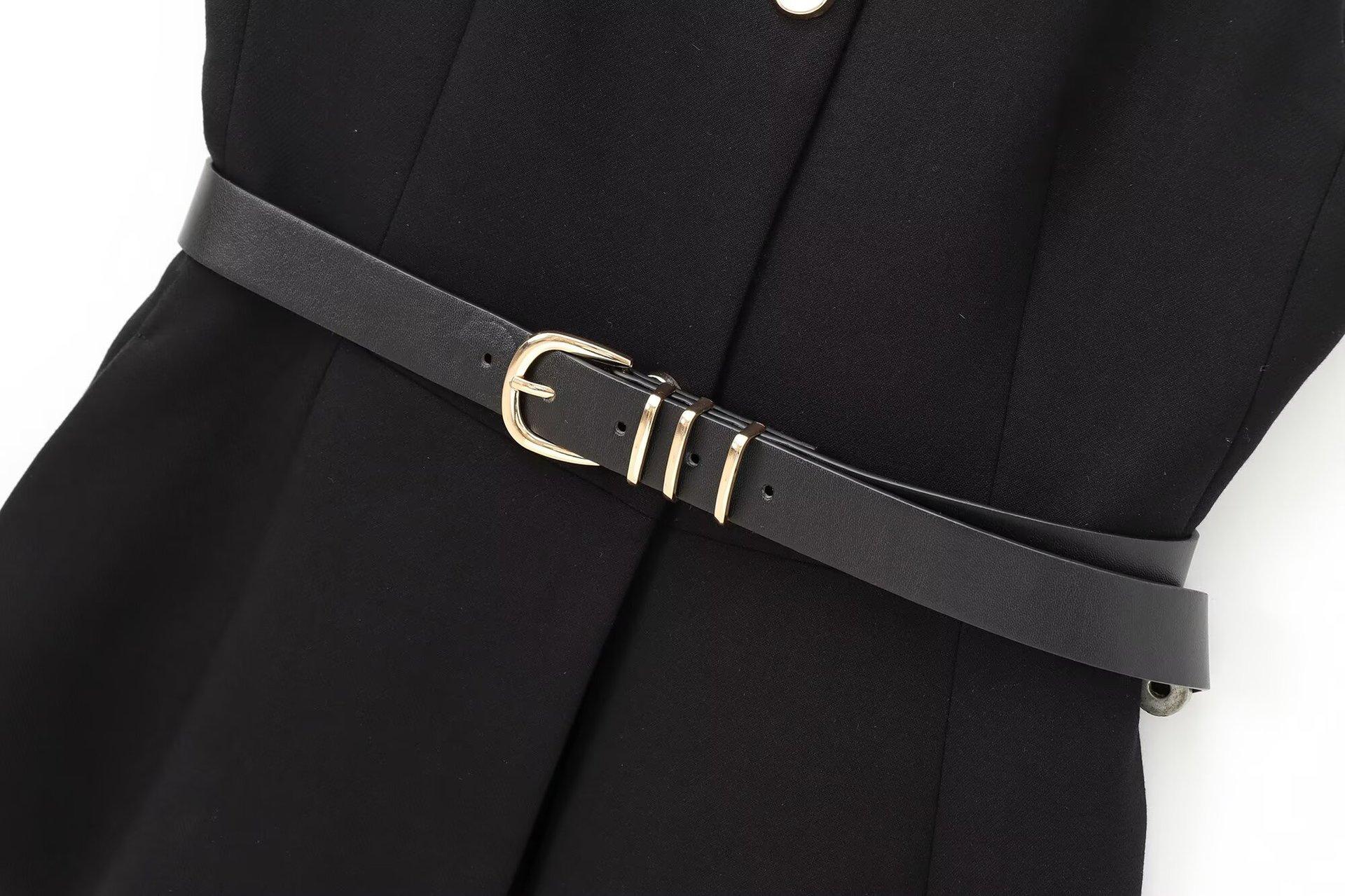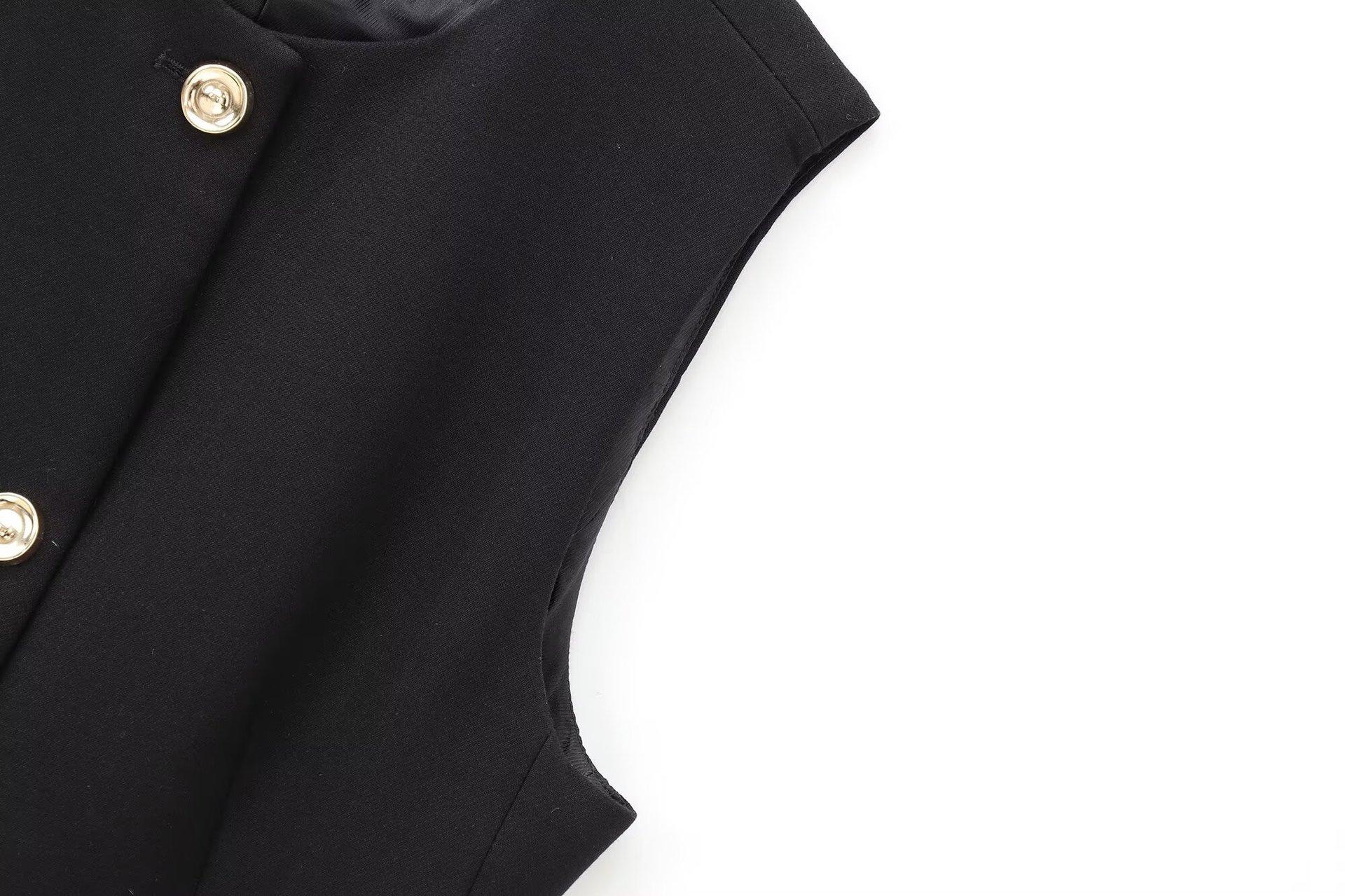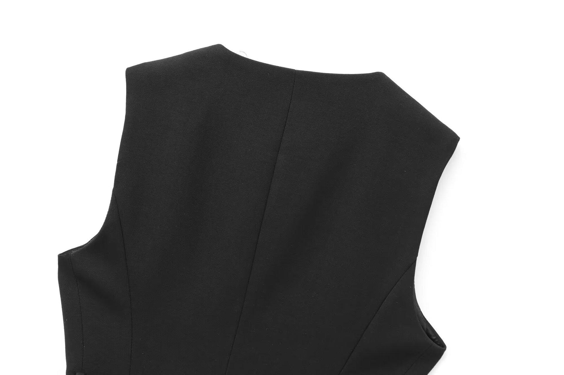 Comercio Exterior Mujer 2025 Primavera Nuevo Estilo Europeo y Americano Cuello Redondo Cinturón Sencillo Sin Mangas Cuello Redondo Chaleco