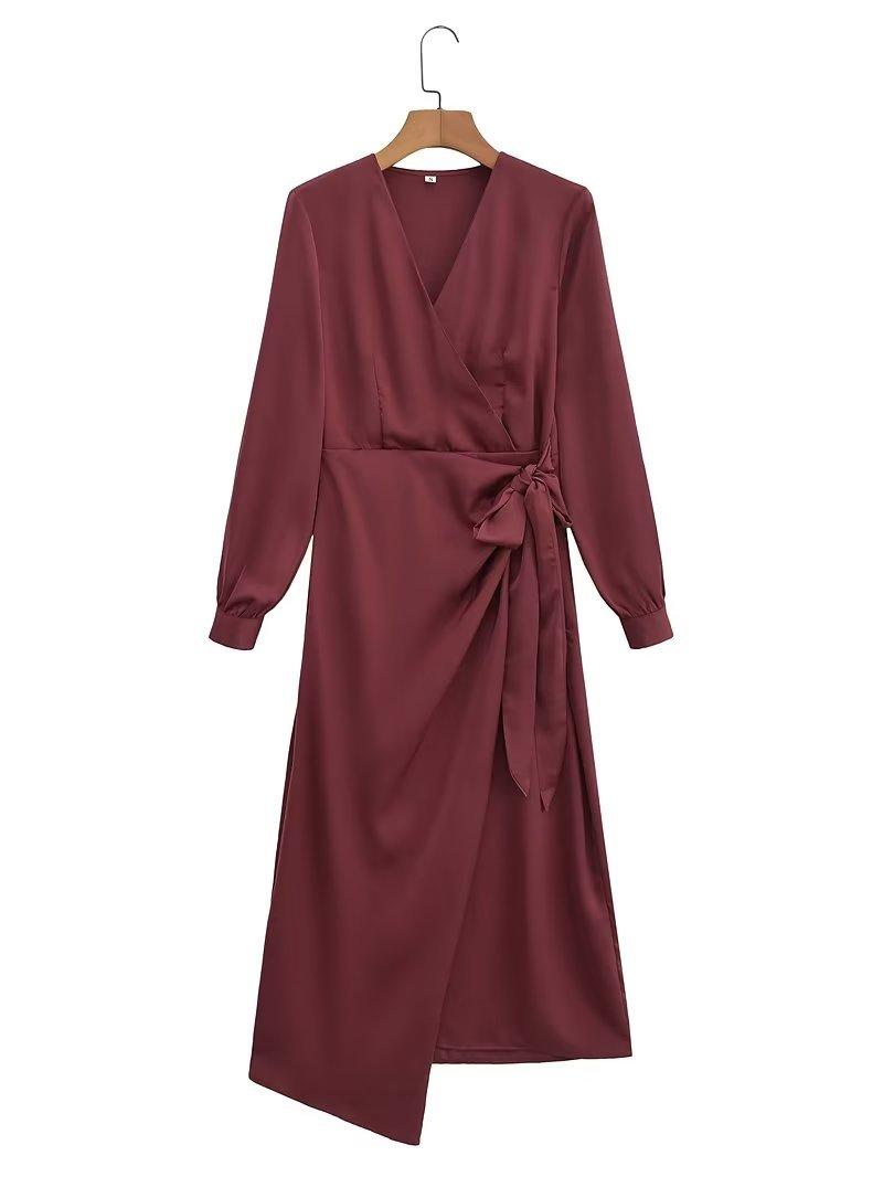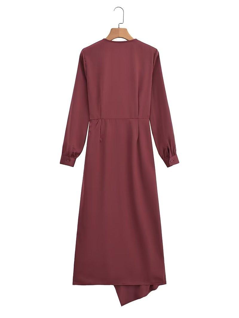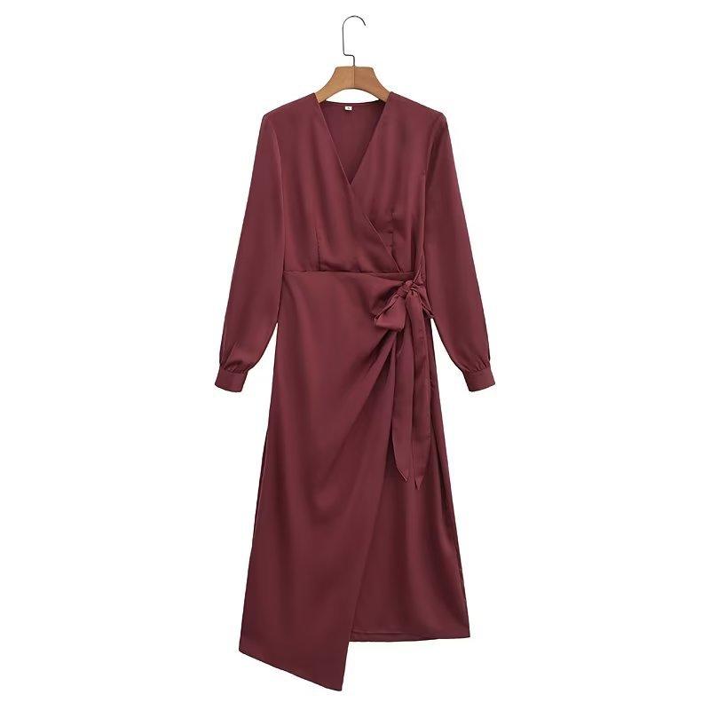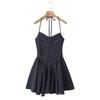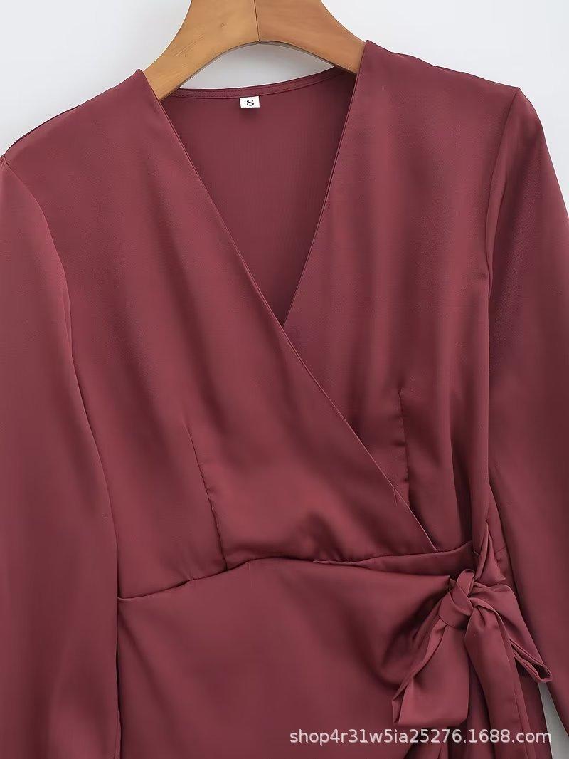 Ropa de Mujer Estilo Europeo y Americano 2023 Verano Nuevo Color Puro Cuello V Una Pieza Cordón Cintura Vestido Camisero Venta al por Mayor