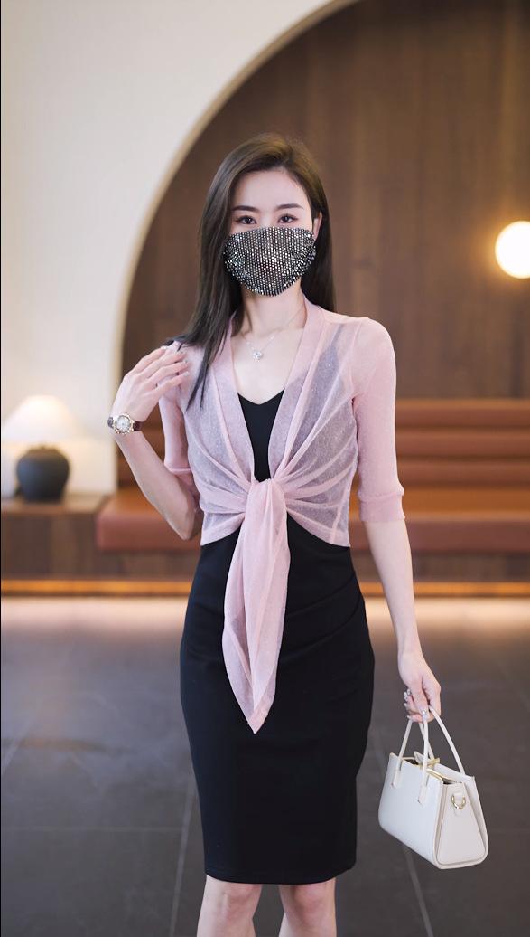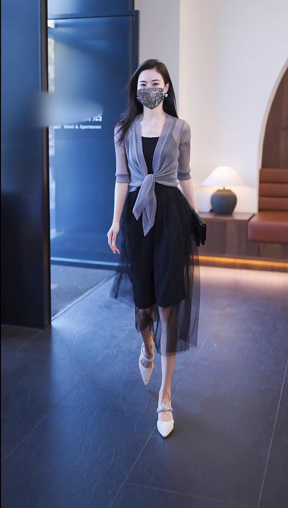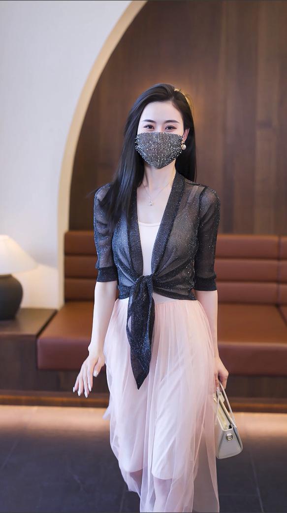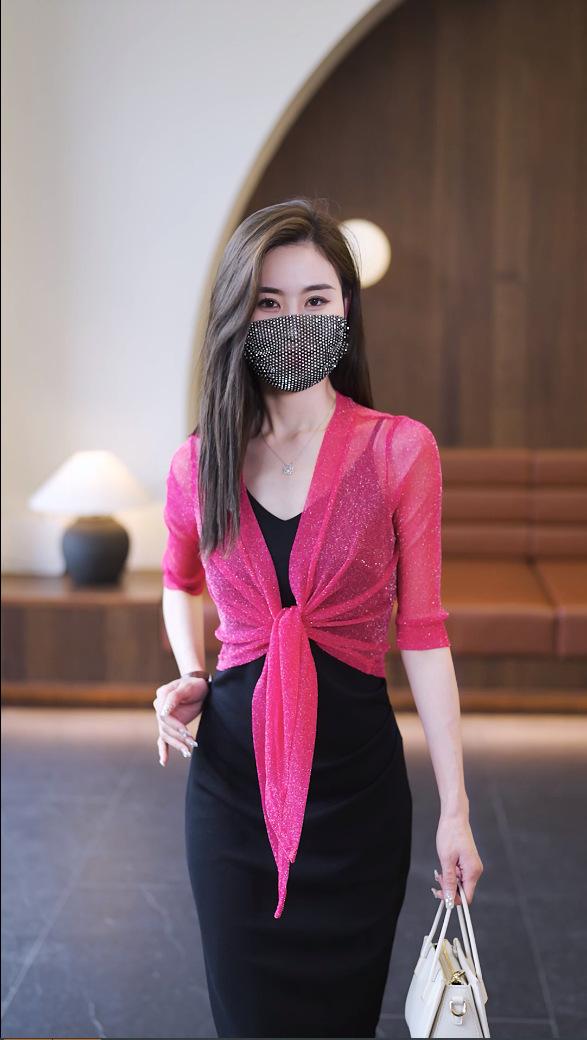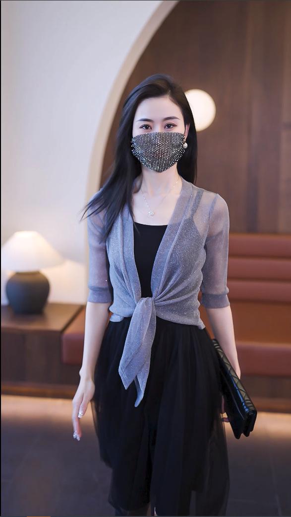 Top Cárdigan de Malla Fina de Verano para Mujer con Chal Pequeño, Chaqueta Pequeña para Mujer con Falda de Tirantes, Ropa Corta de Protección Solar