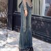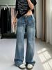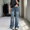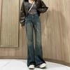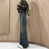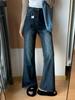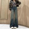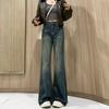 Pantalones Largos Acampanados Vintage Azules Micro La Jeans para Mujer, Modernos, Combinables con Todo, Nuevo Estilo Americano, Cintura Alta, Sueltos, Sencillos, con Borde Deshilachado