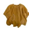 Camisa Coreana de Estilo Amarillo Cuello Redondo Diseño de Alta Gama Holgada Slim para Mujer 2025 Verano Delgada Hombro Manga Corta