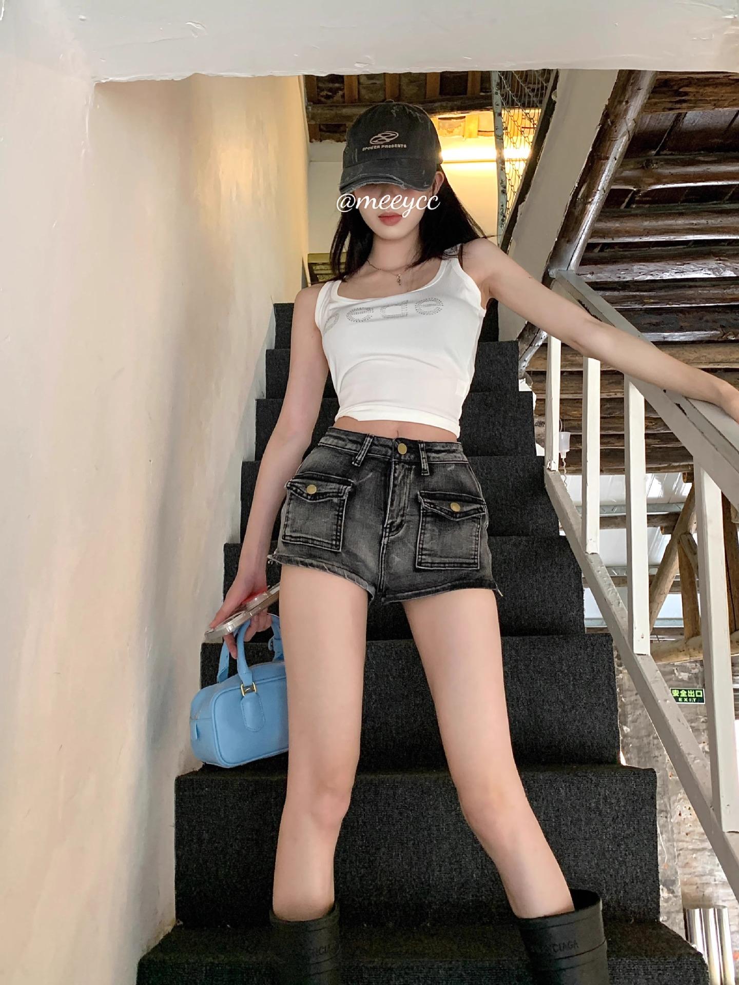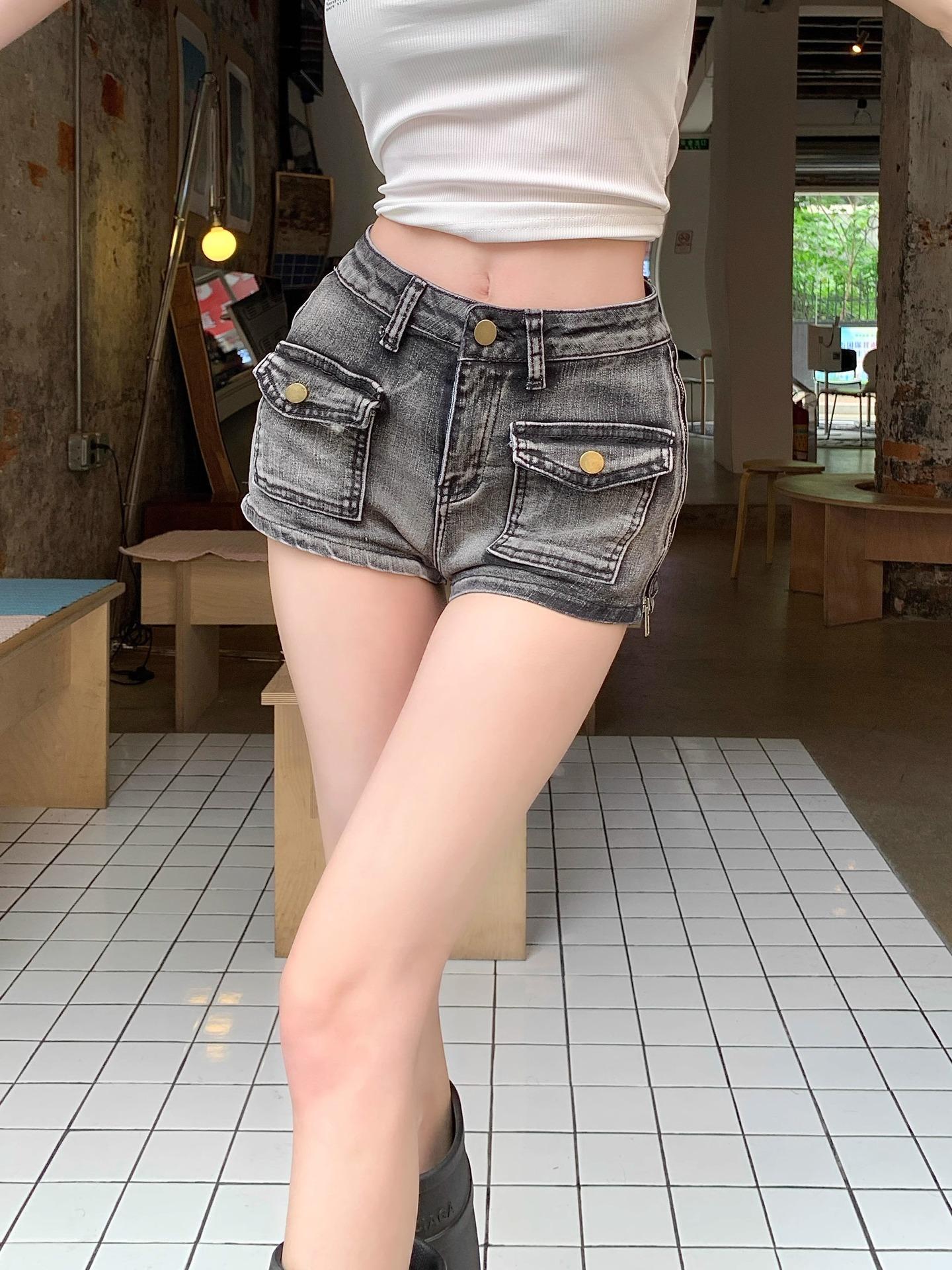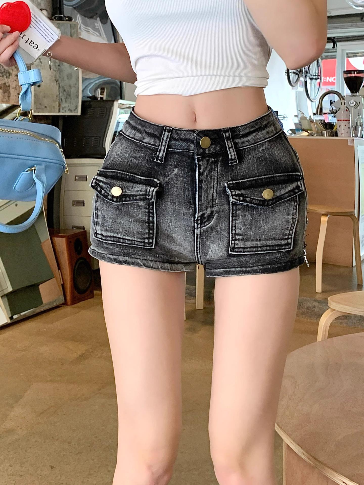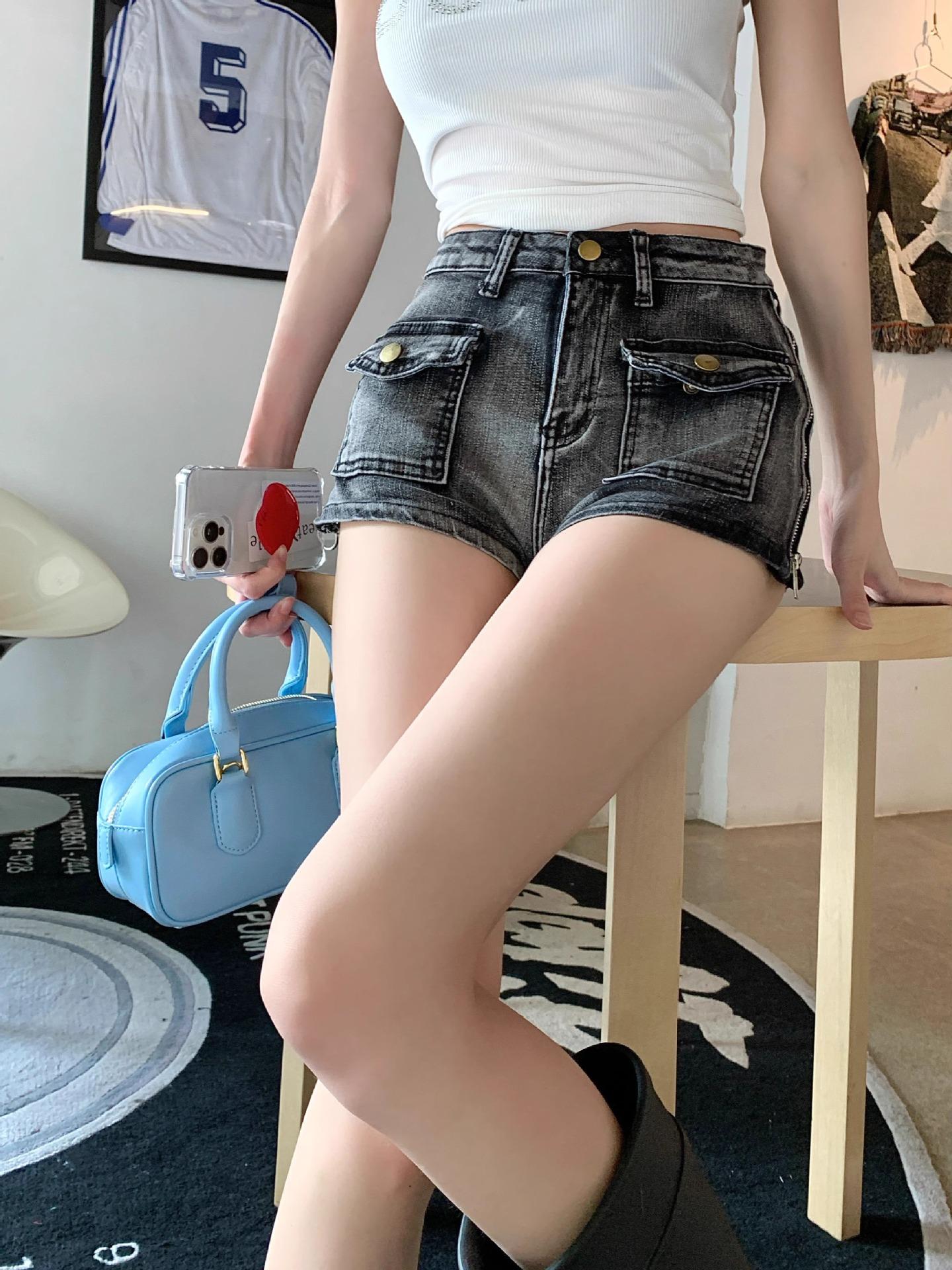 Shorts de Mezclilla Lavados Viejos con Cremallera Metálica para Chica Caliente Estilo Americano para Mujer Verano 2024 Cintura Alta Adelgazantes Anti-Luz