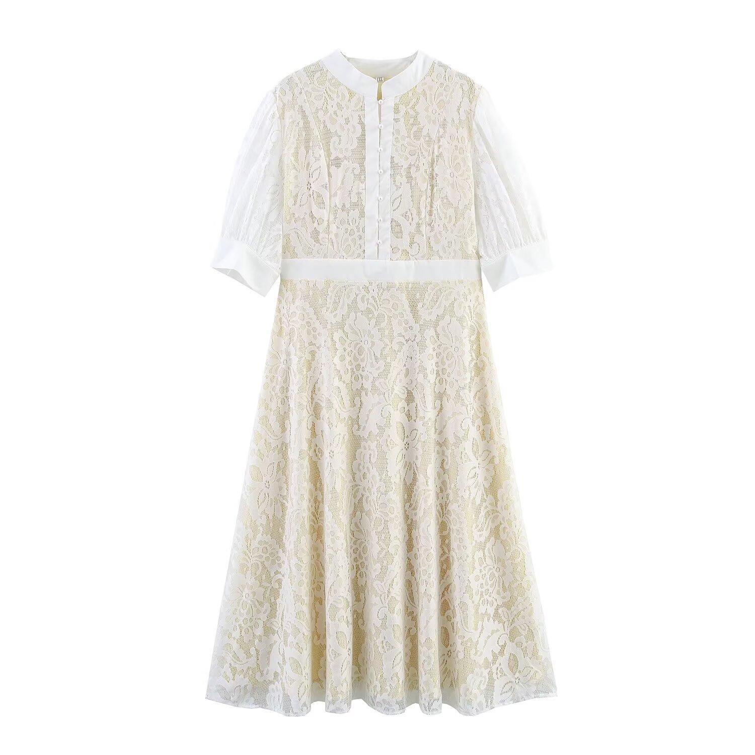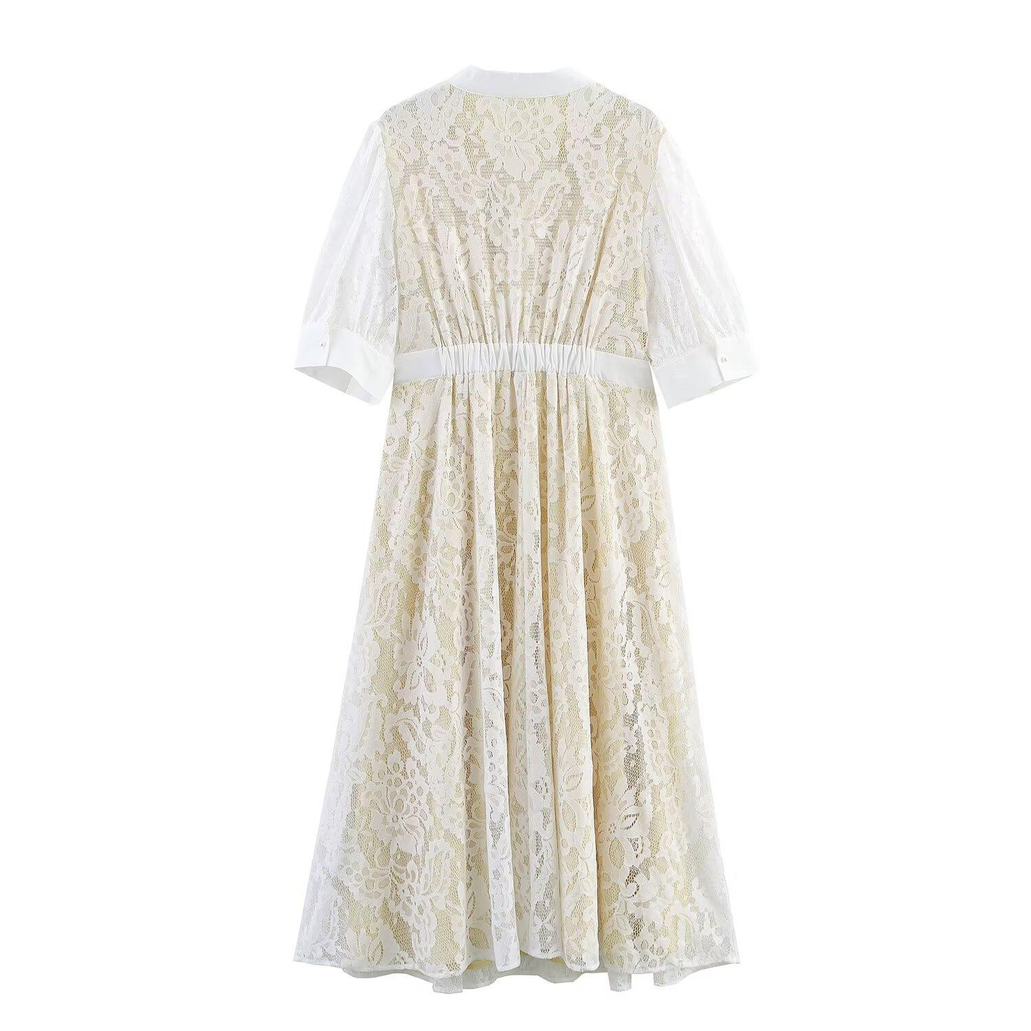 2025 Ropa de Verano para Mujer Nueva Estilo Europeo y Americano Moda Talla Grande Elegante Vestido de Encaje en la Cintura