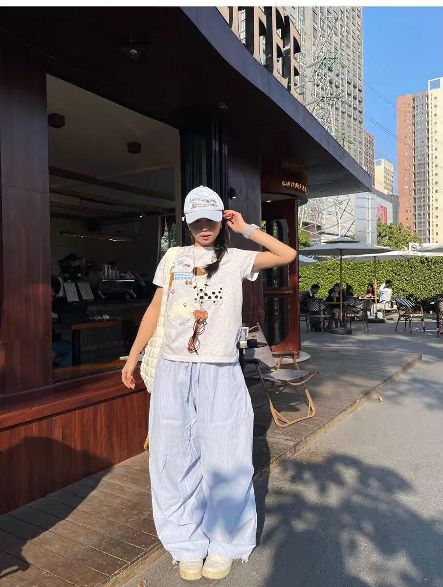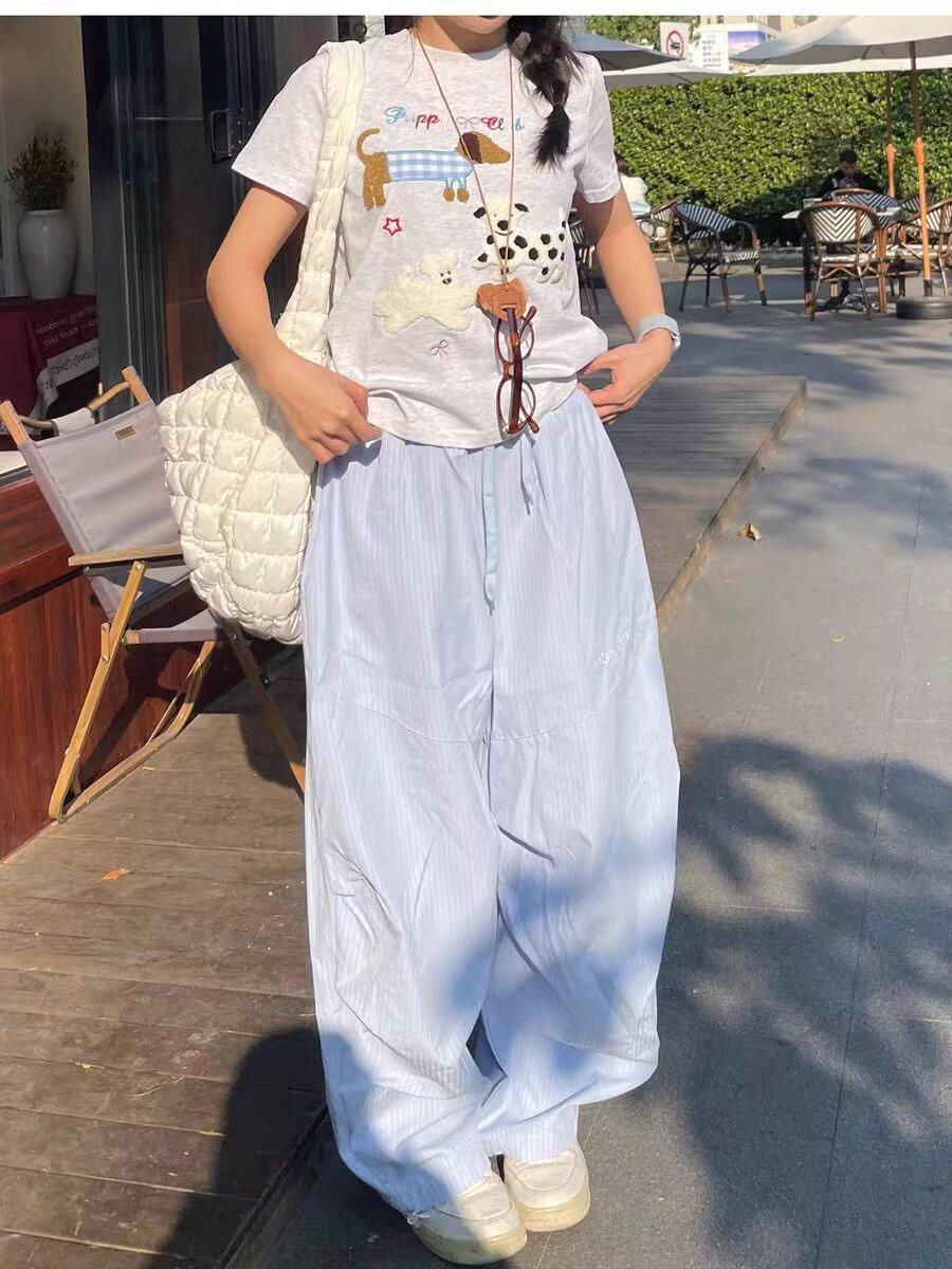 Pantalones de Pierna Ancha Estilo Perezoso para Mujer, Verano Nuevo Cintura Alta Sueltos Casuales Largos hasta el Piso, Estilo Delgado y Dulce