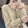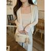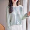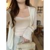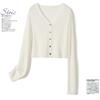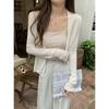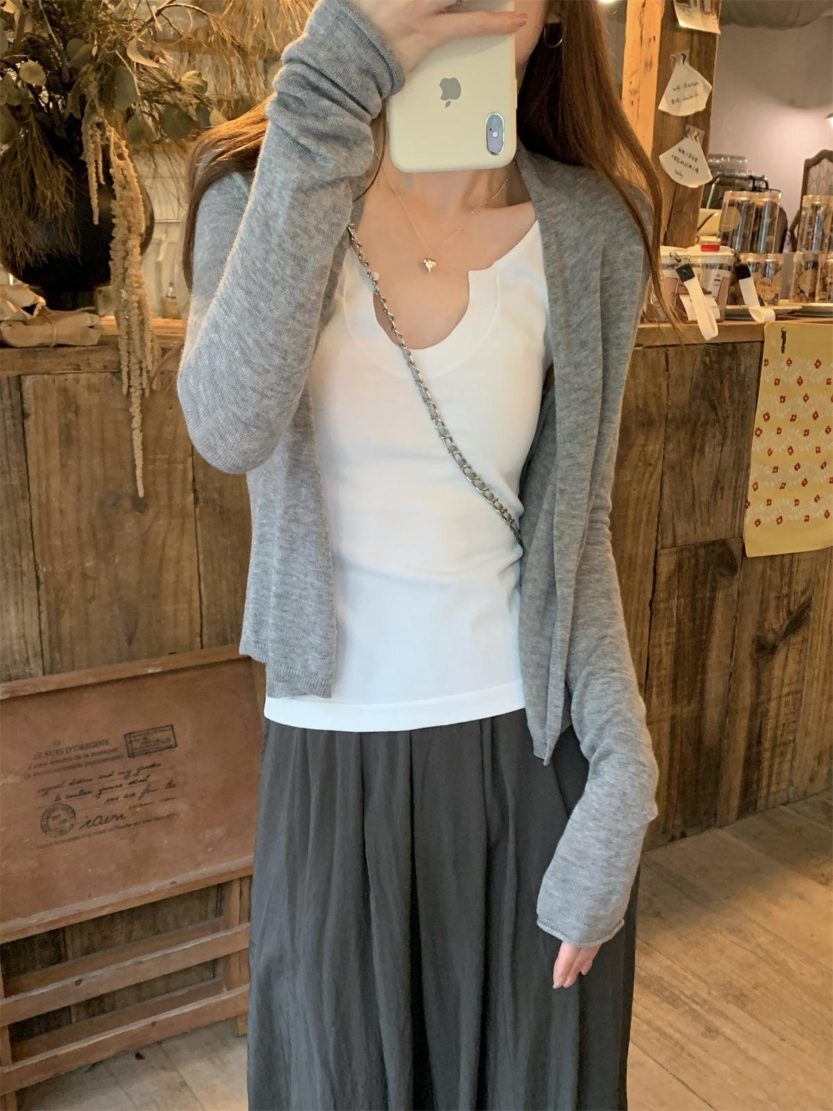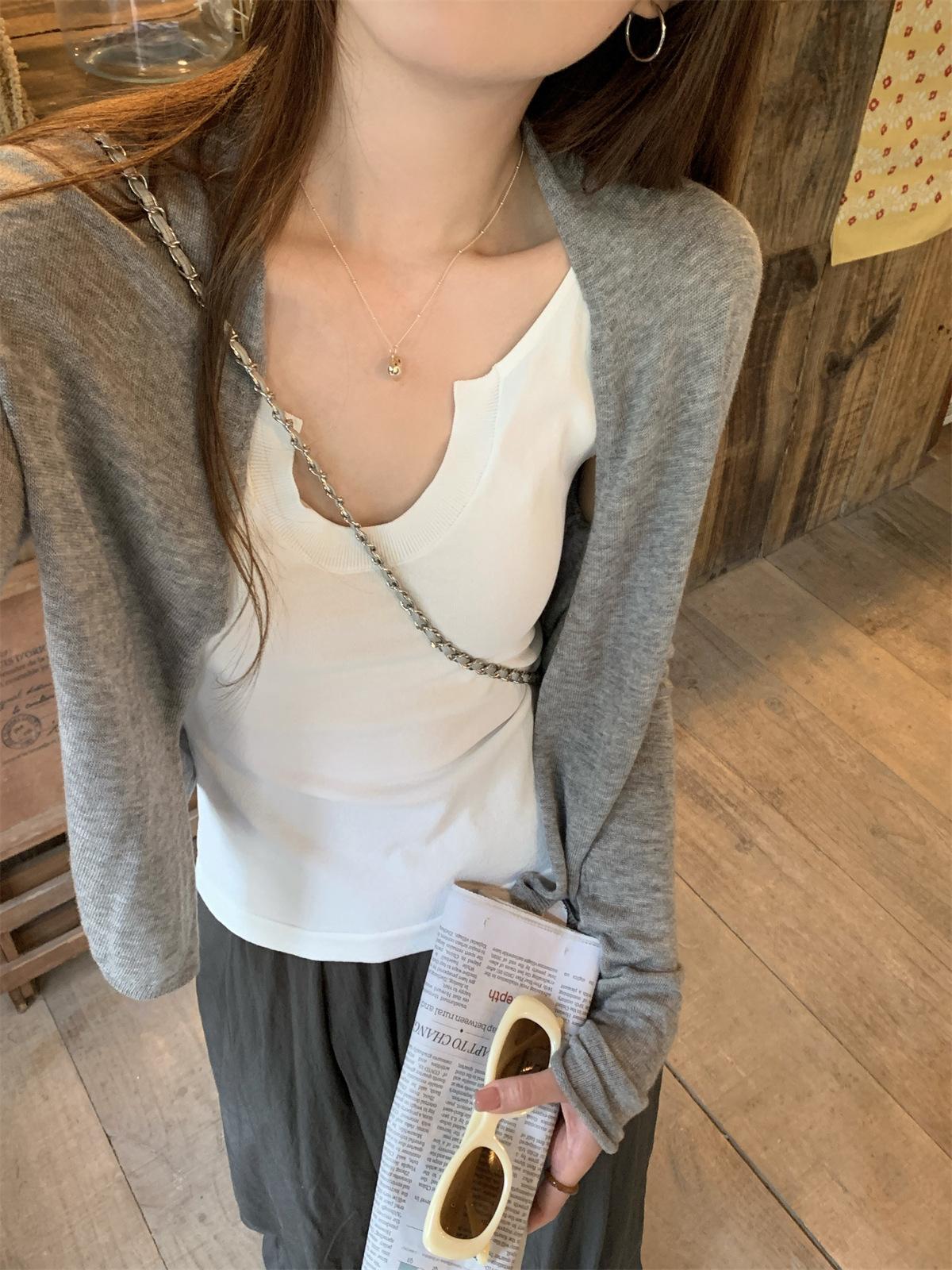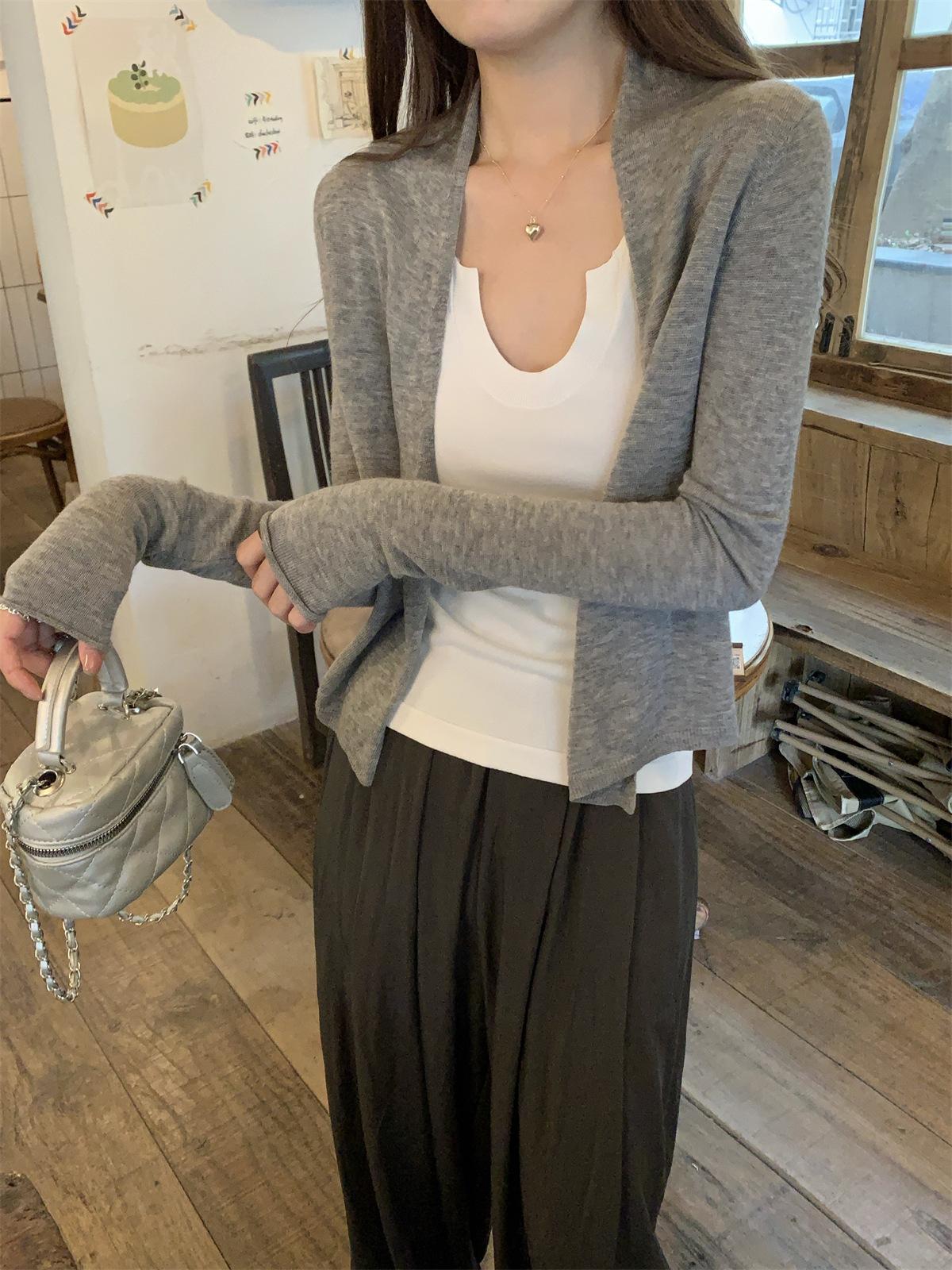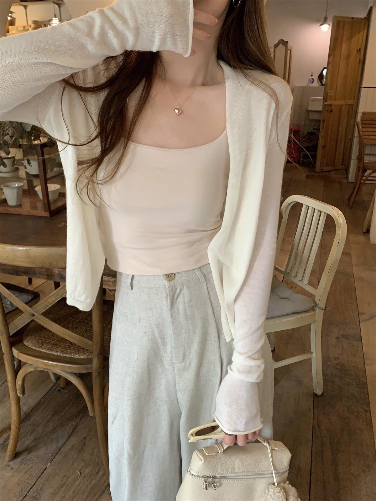 Foto real de Cárdigan de punto ligero de color puro estilo coreano de verano 2025 con top tipo chal para mujer 84354