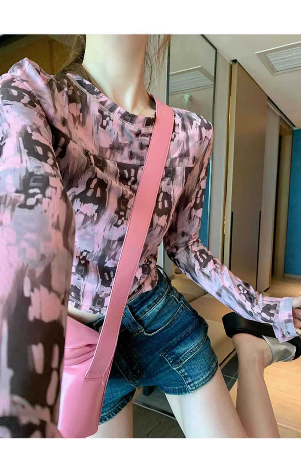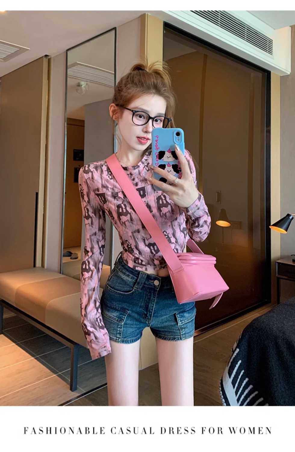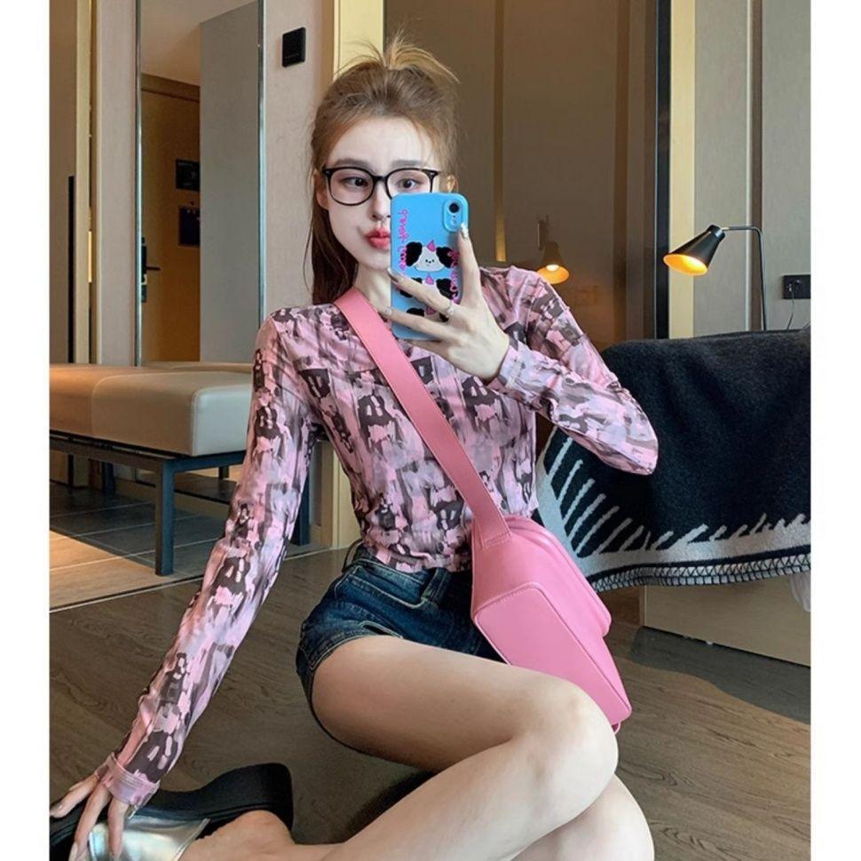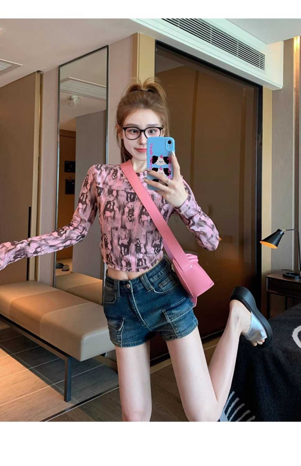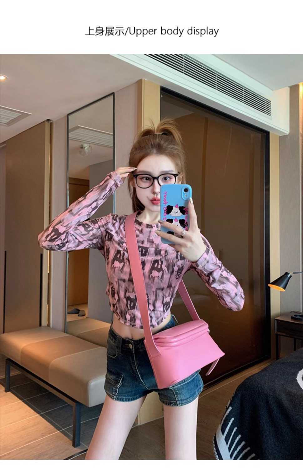 [100,000 Vendidos por Mes] Camiseta de Manga Larga para Mujer Verano Delgada Retro Americana Ajustada Sexy Corta Interior