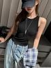 Camisola de Cuello Redondo Estilo Retro Americano para Mujer Verano Color Sólido Sin Mangas Diseño Portátil Top