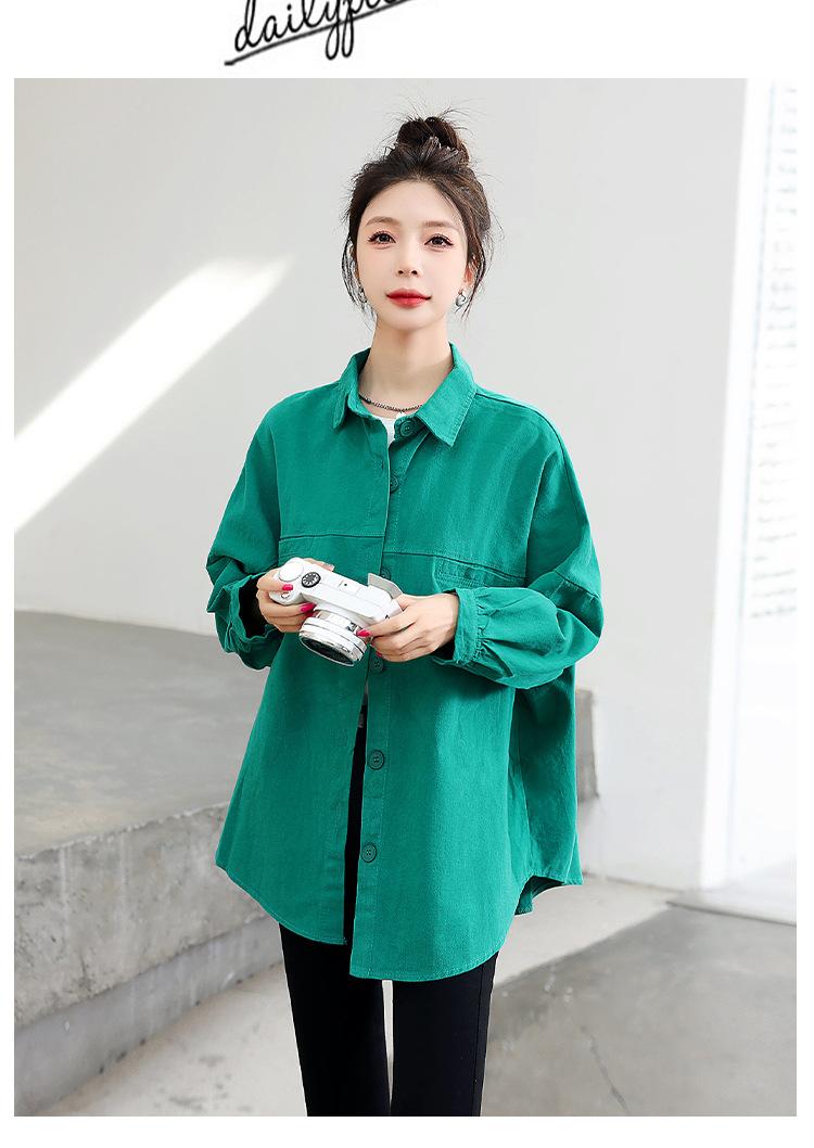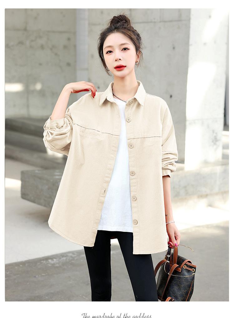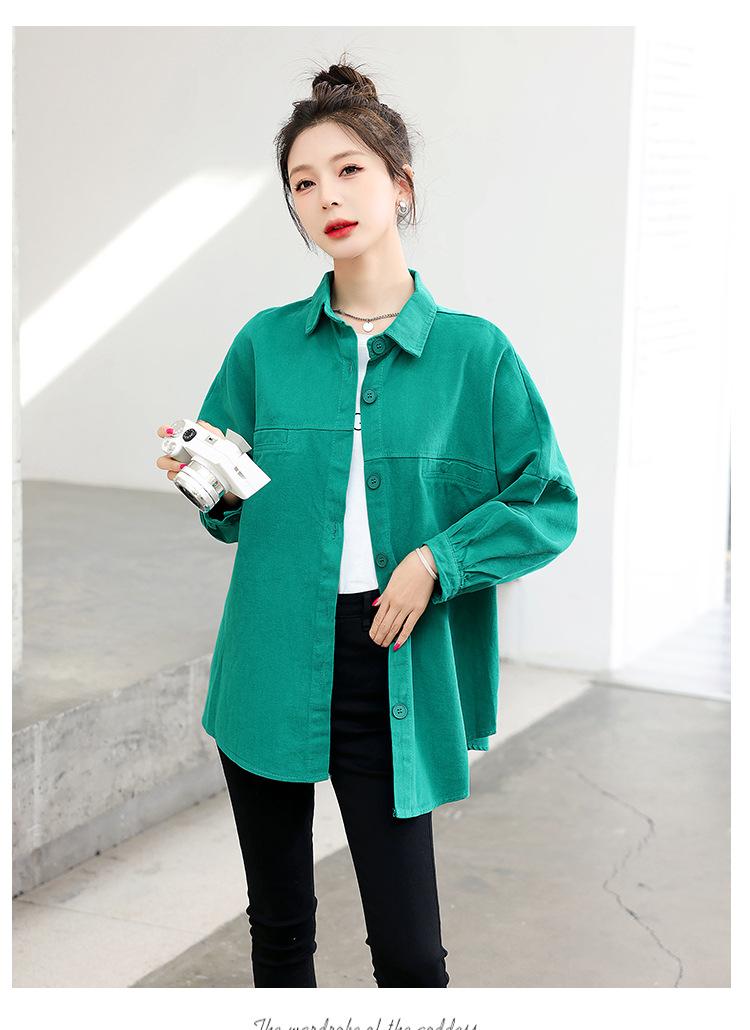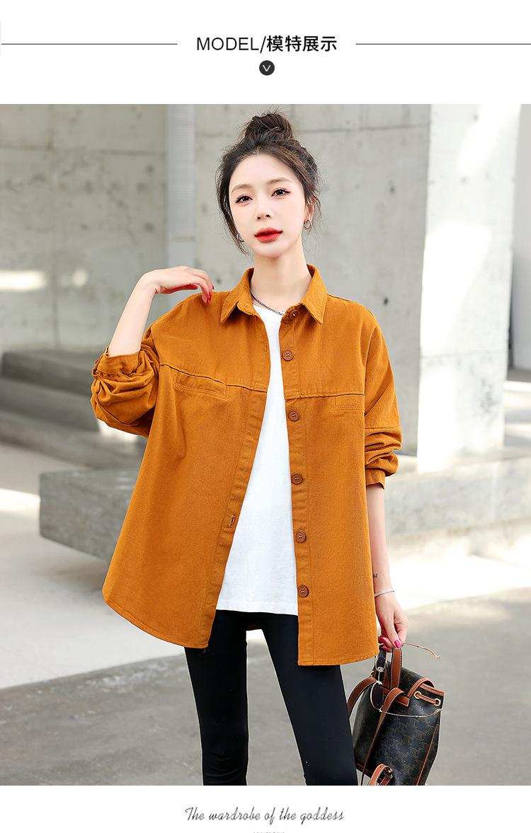 Camisa Colorida Cepillada Nueva de Primavera 2025 Camisa Casual Versátil para Mujer Chaqueta de Mezclilla de Algodón Lavado