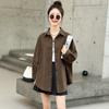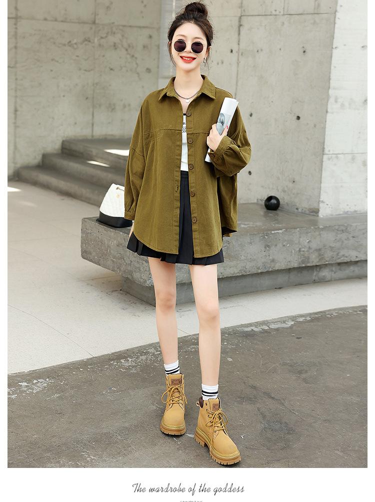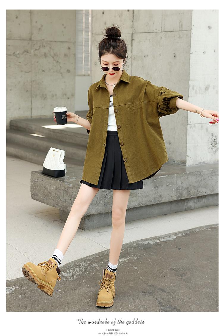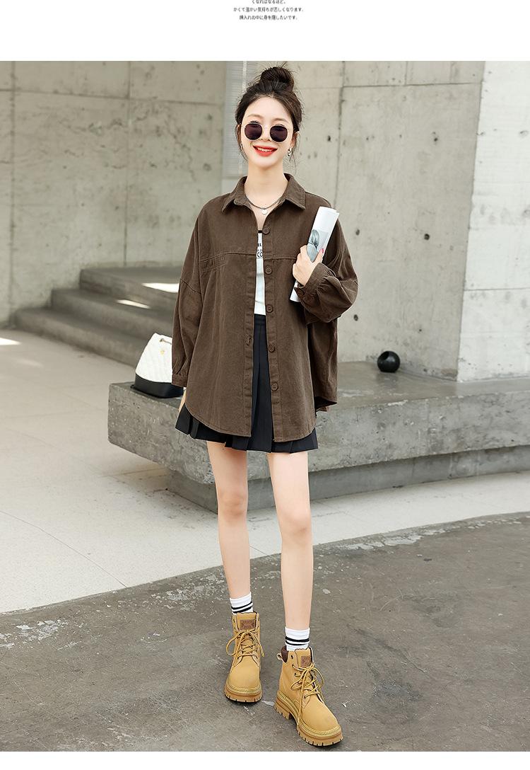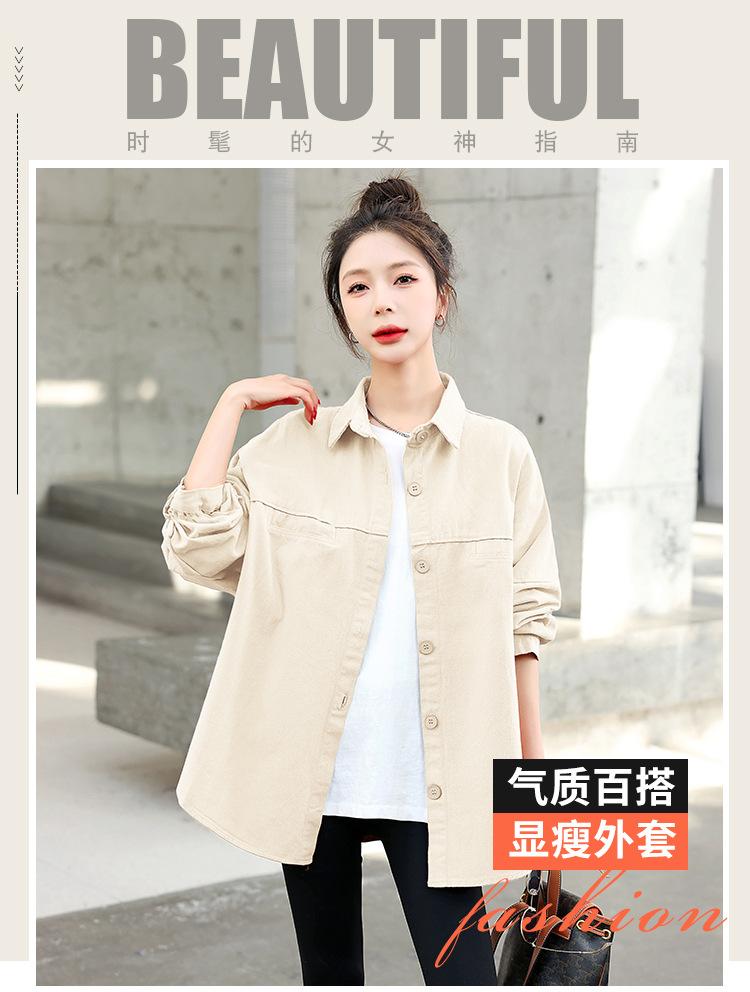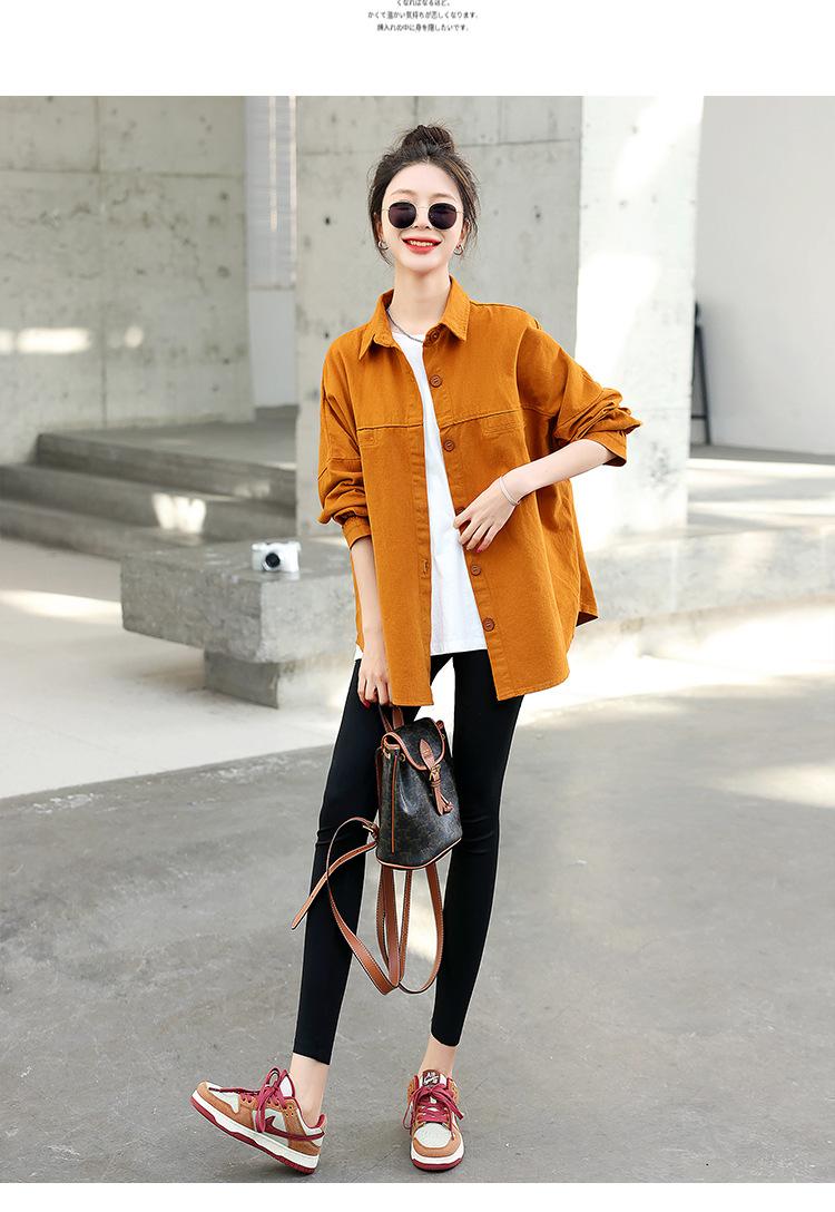 Camisa Colorida Cepillada Nueva de Primavera 2025 Camisa Casual Versátil para Mujer Chaqueta de Mezclilla de Algodón Lavado