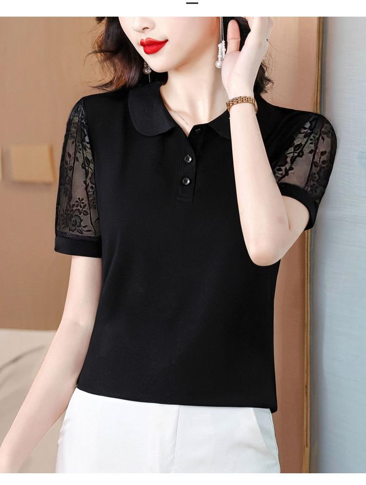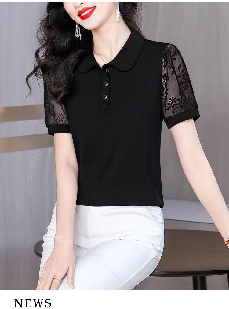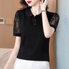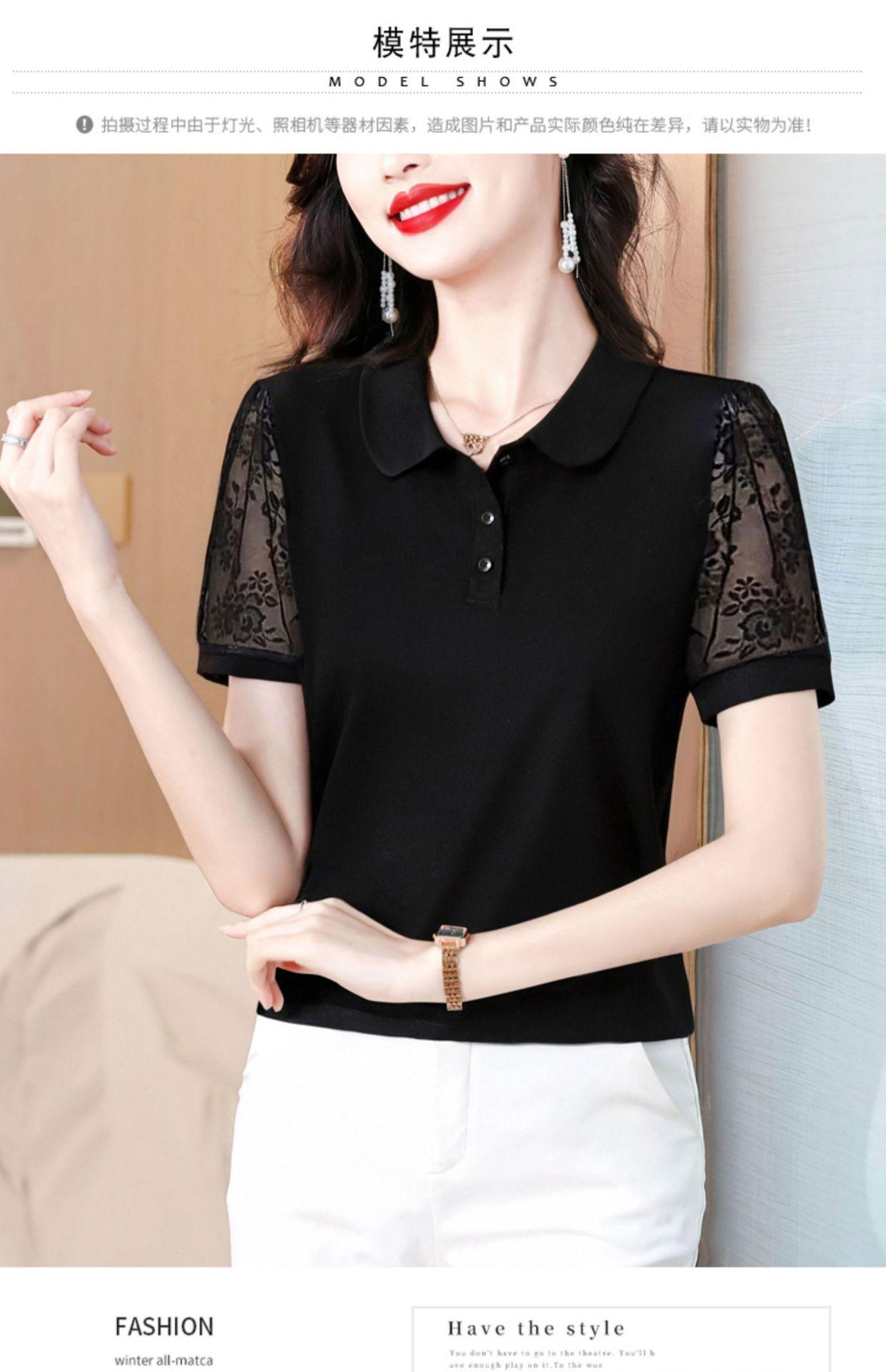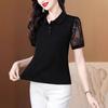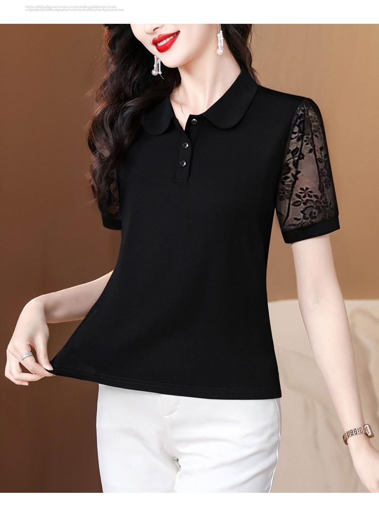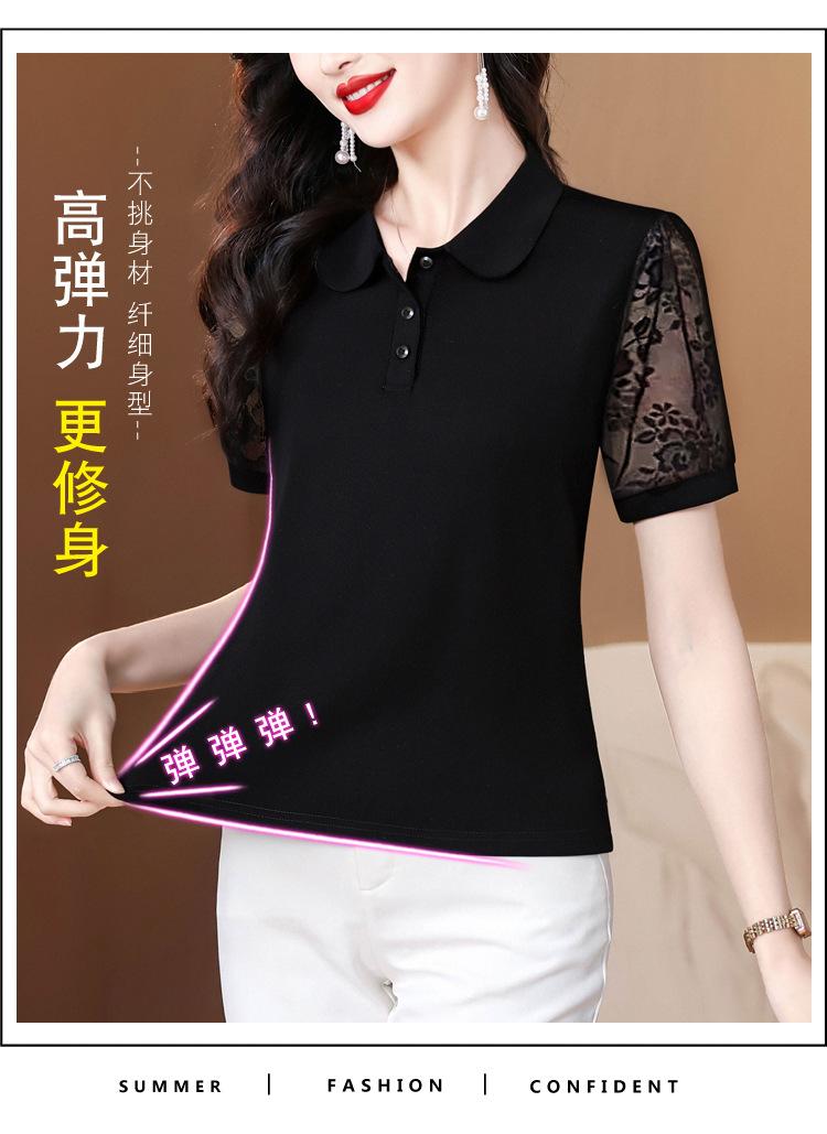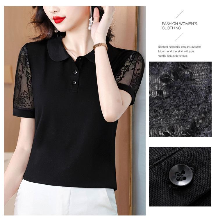 Camiseta Negra de Moda de Alta Gama de Manga Corta para Mujer Verano Nueva Versátil Adelgazante y Elegante Top con Cuello Polo para Mamá