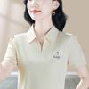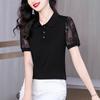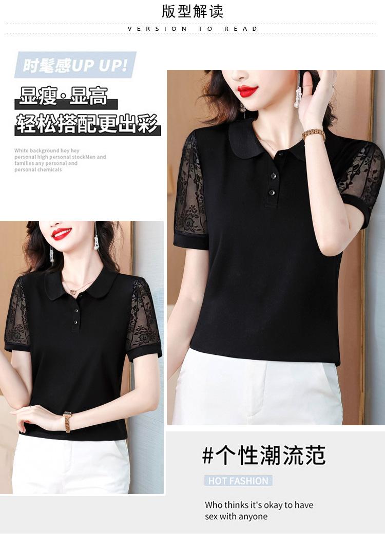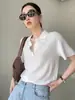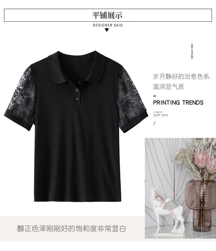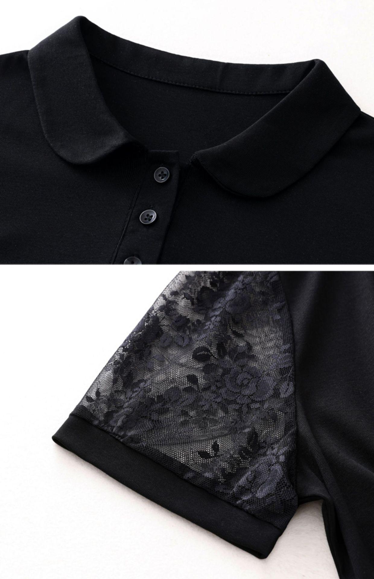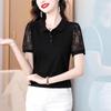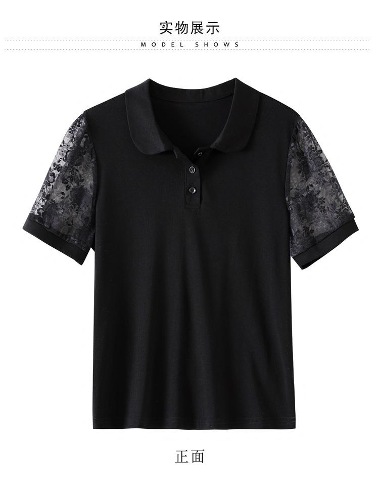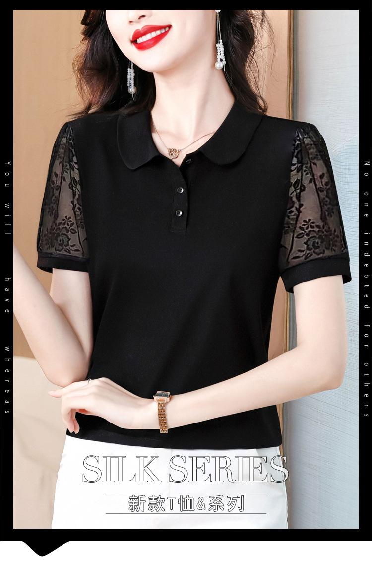 Camiseta Negra de Moda de Alta Gama de Manga Corta para Mujer Verano Nueva Versátil Adelgazante y Elegante Top con Cuello Polo para Mamá