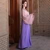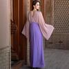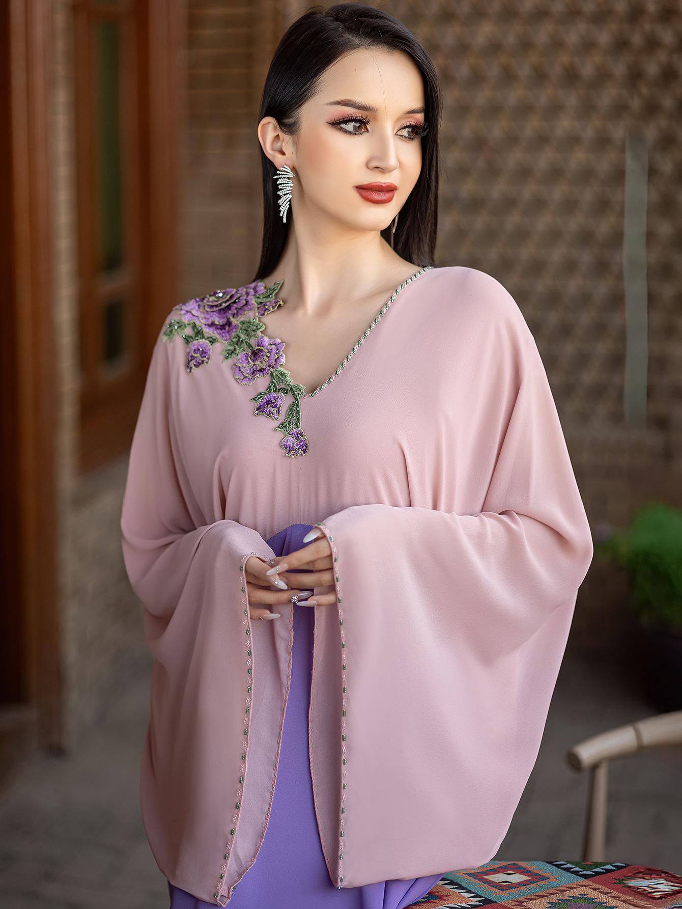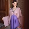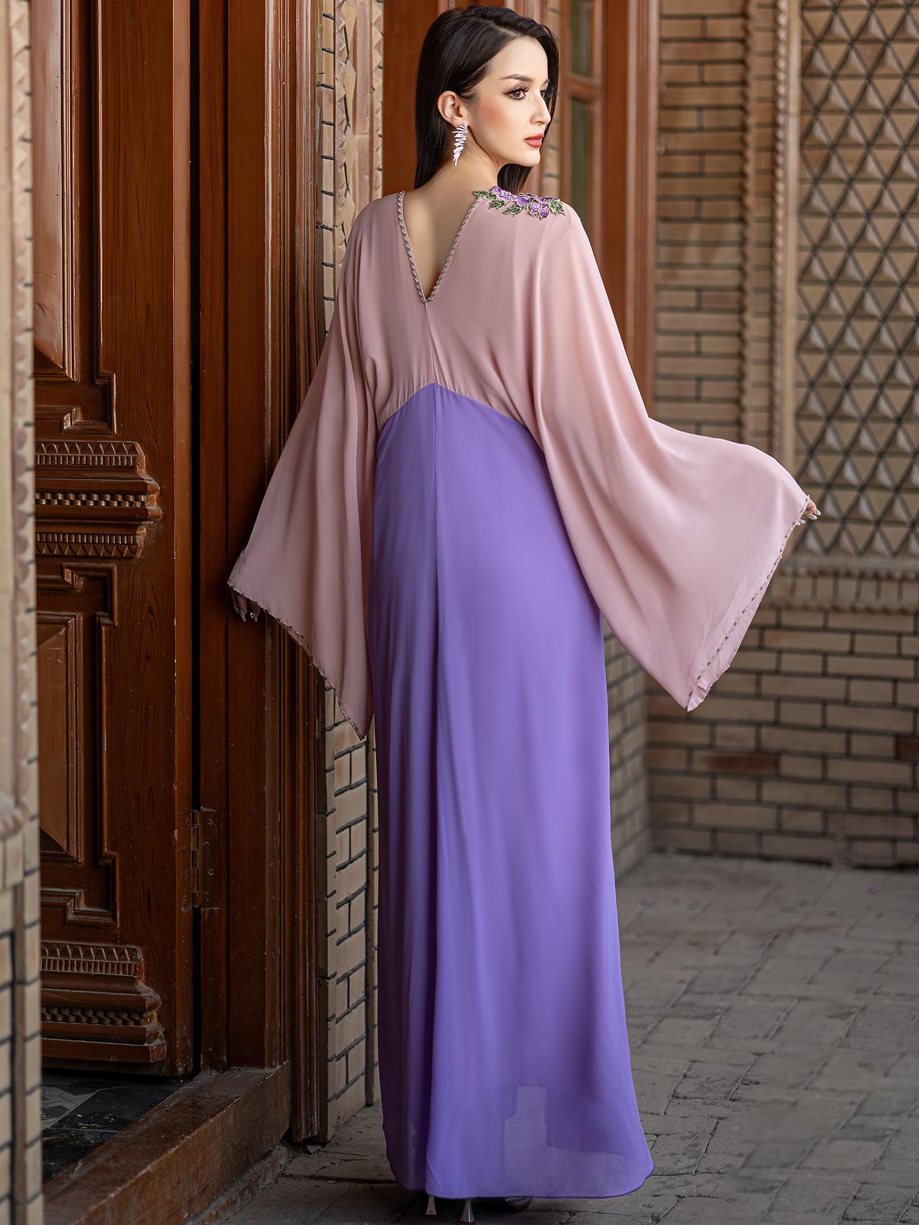 BA5220 vestido largo de chifón rosa púrpura patchwork con cuello en V