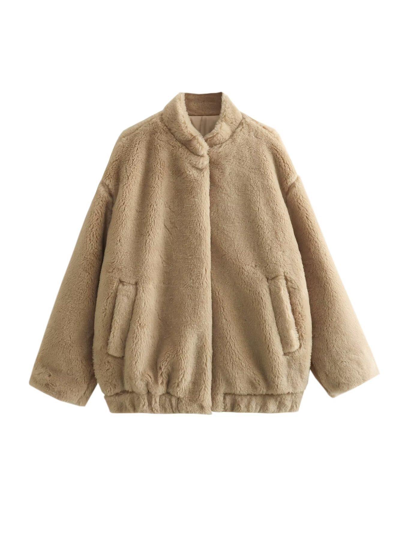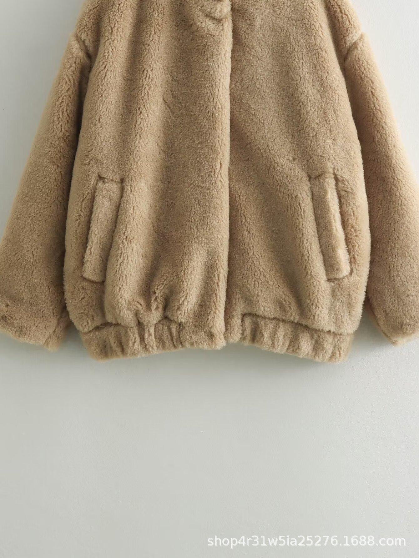 Estilo Europeo y Americano Venta al Por Mayor Transfronteriza Ropa de Mujer 2024 Otoño e Invierno Nuevo Casual Forro Polar Chaqueta de Aviador Chaqueta de Imitación de Piel