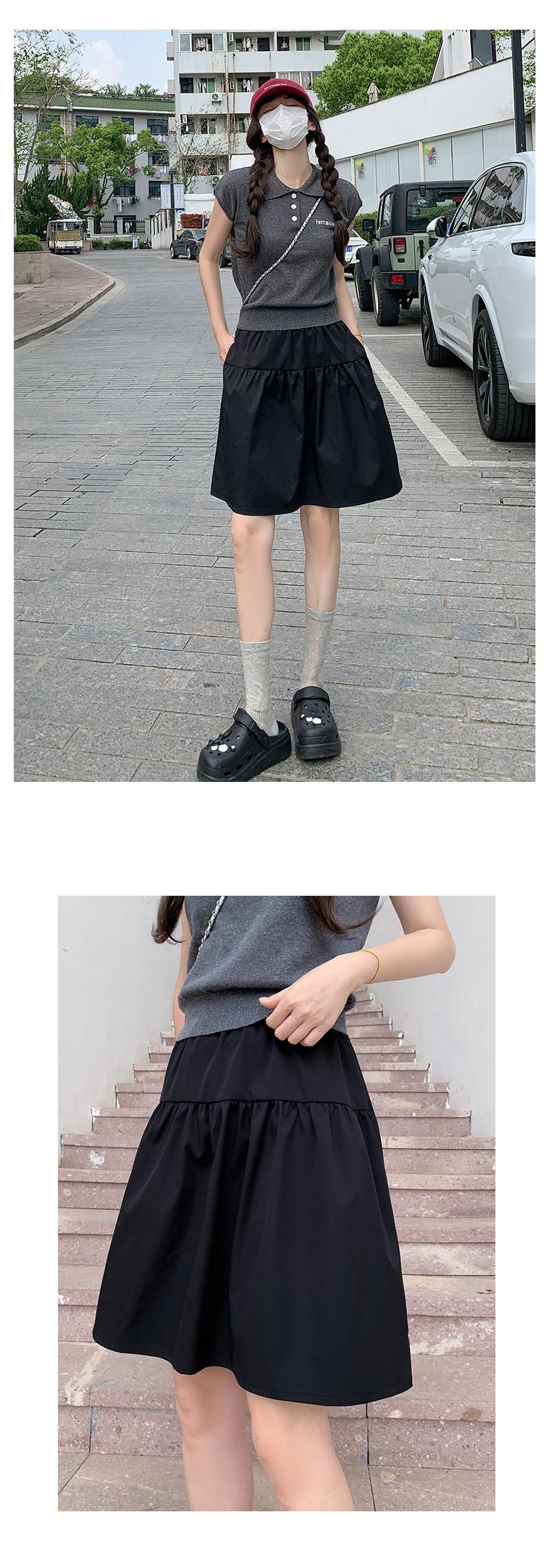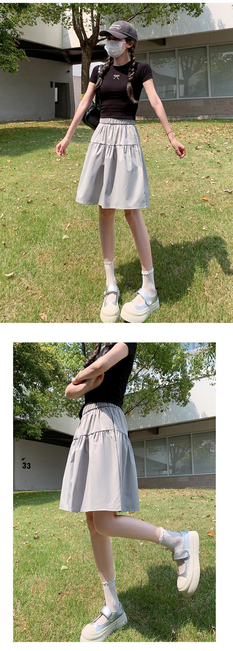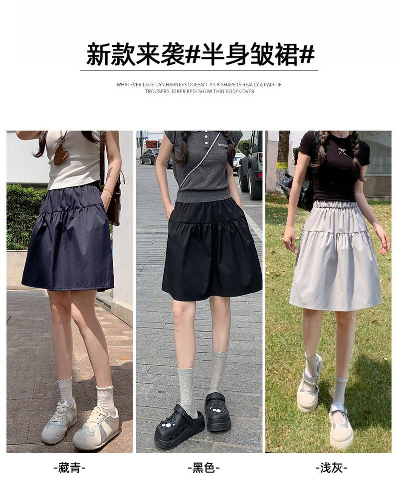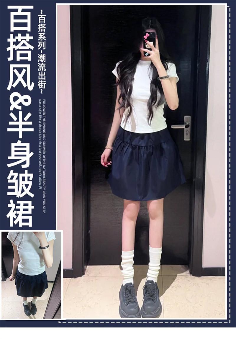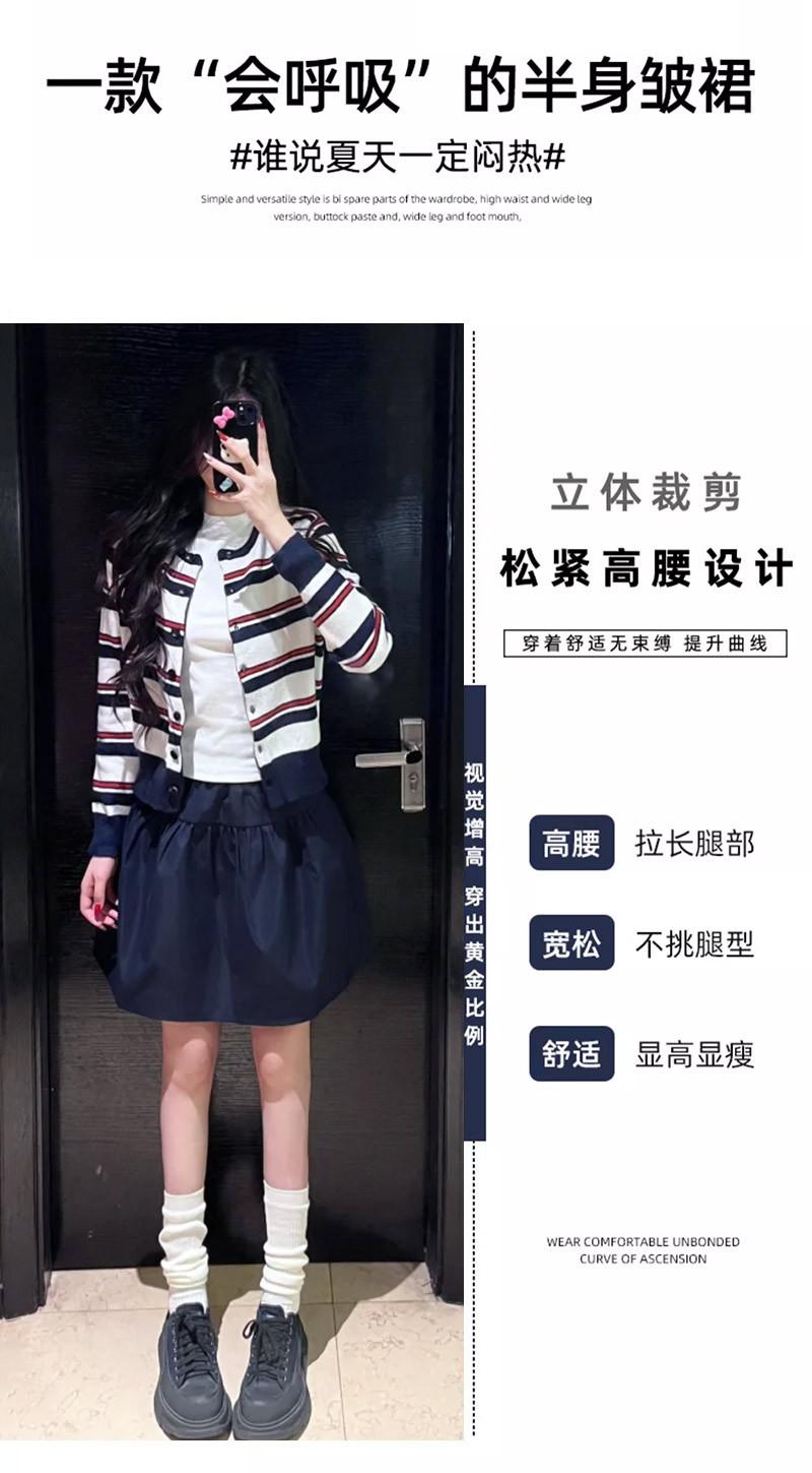 Falda azul marino estilo academia para mujer verano 2025 nueva cintura alta largo medio falda paraguas falda pequeña adelgazante
