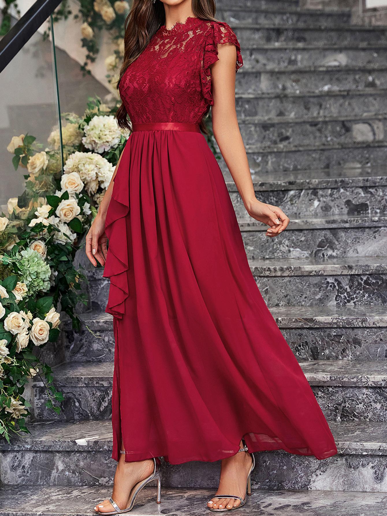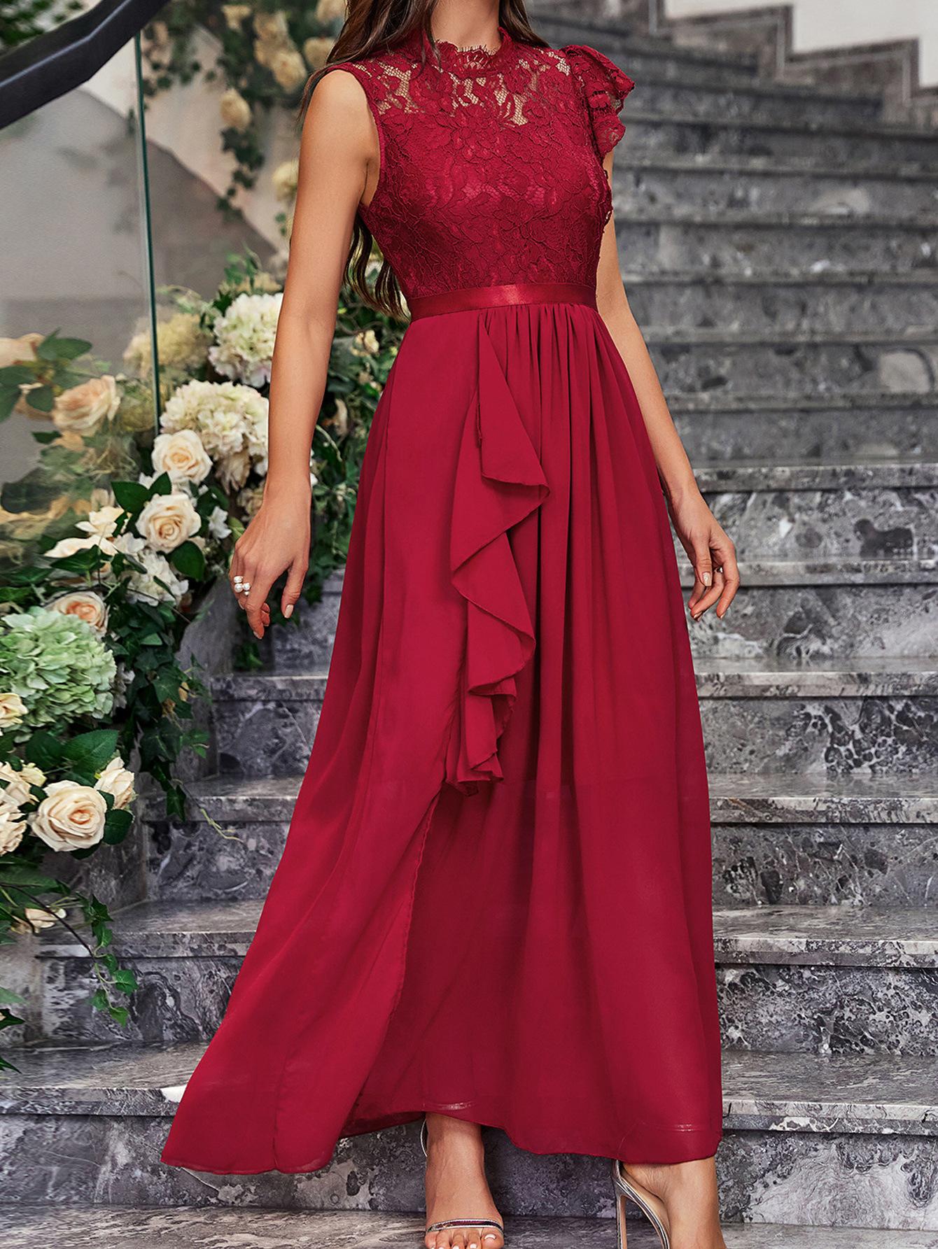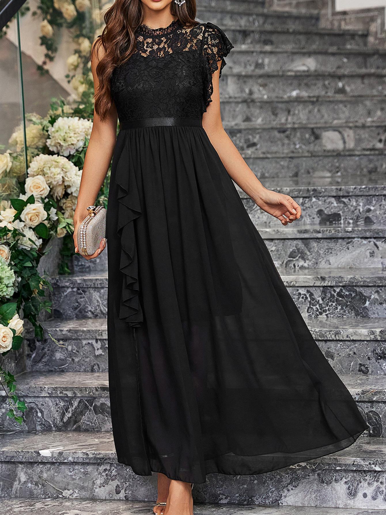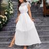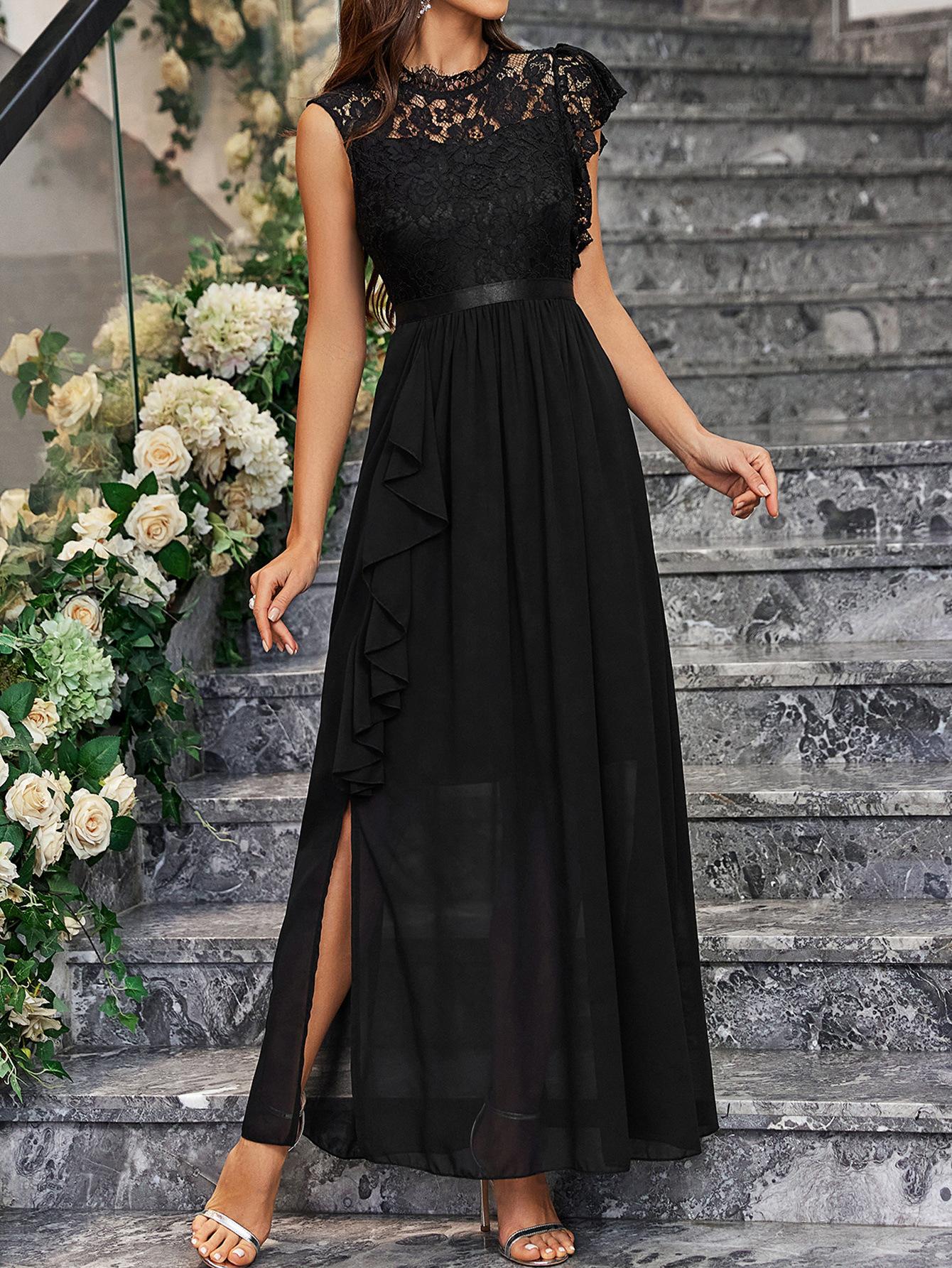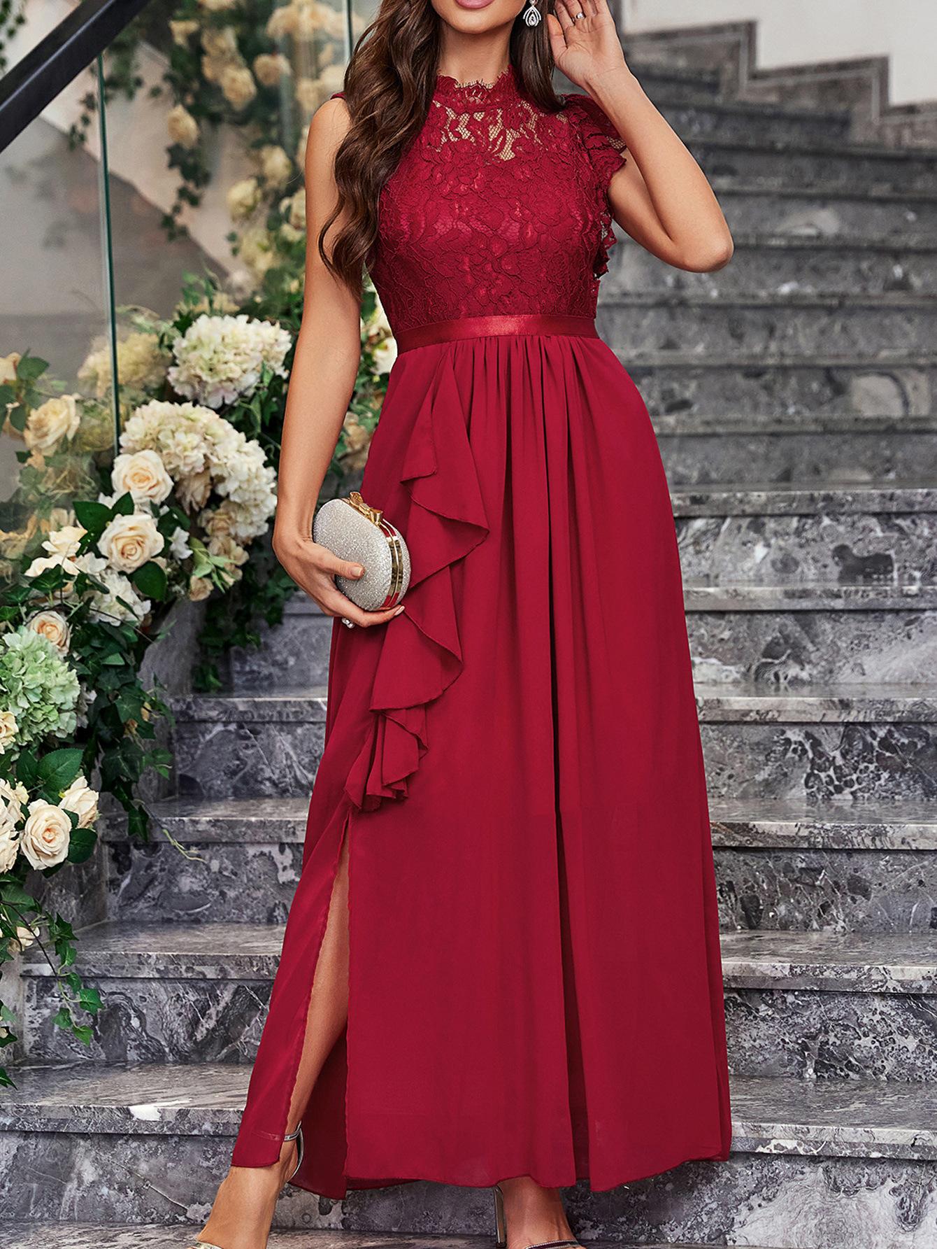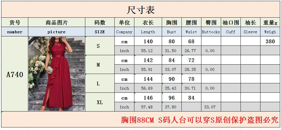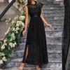 Nuevo elegante encaje gasa europeo y americano corte slim con abertura vestido de dama color sólido transfronterizo de Amazon
