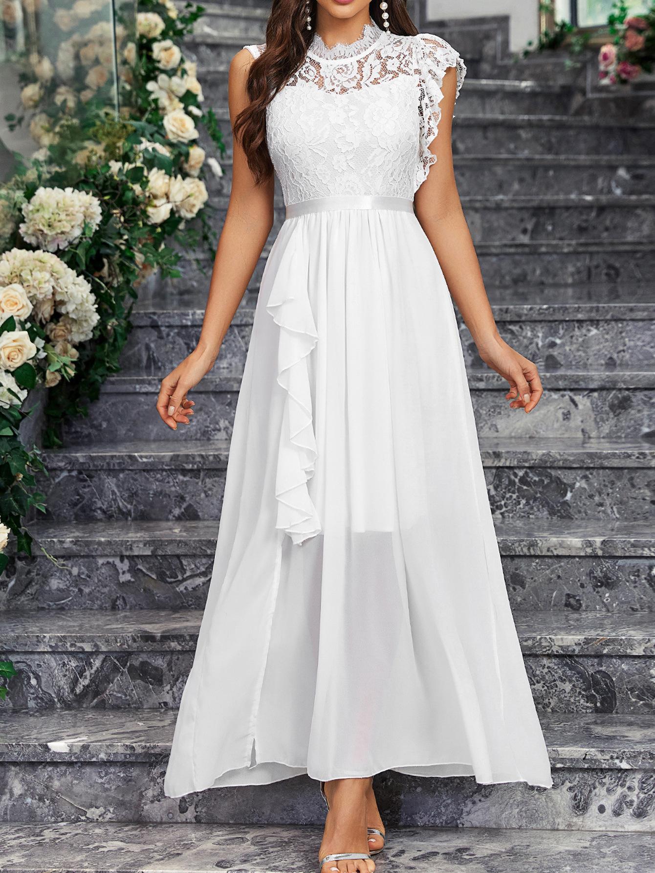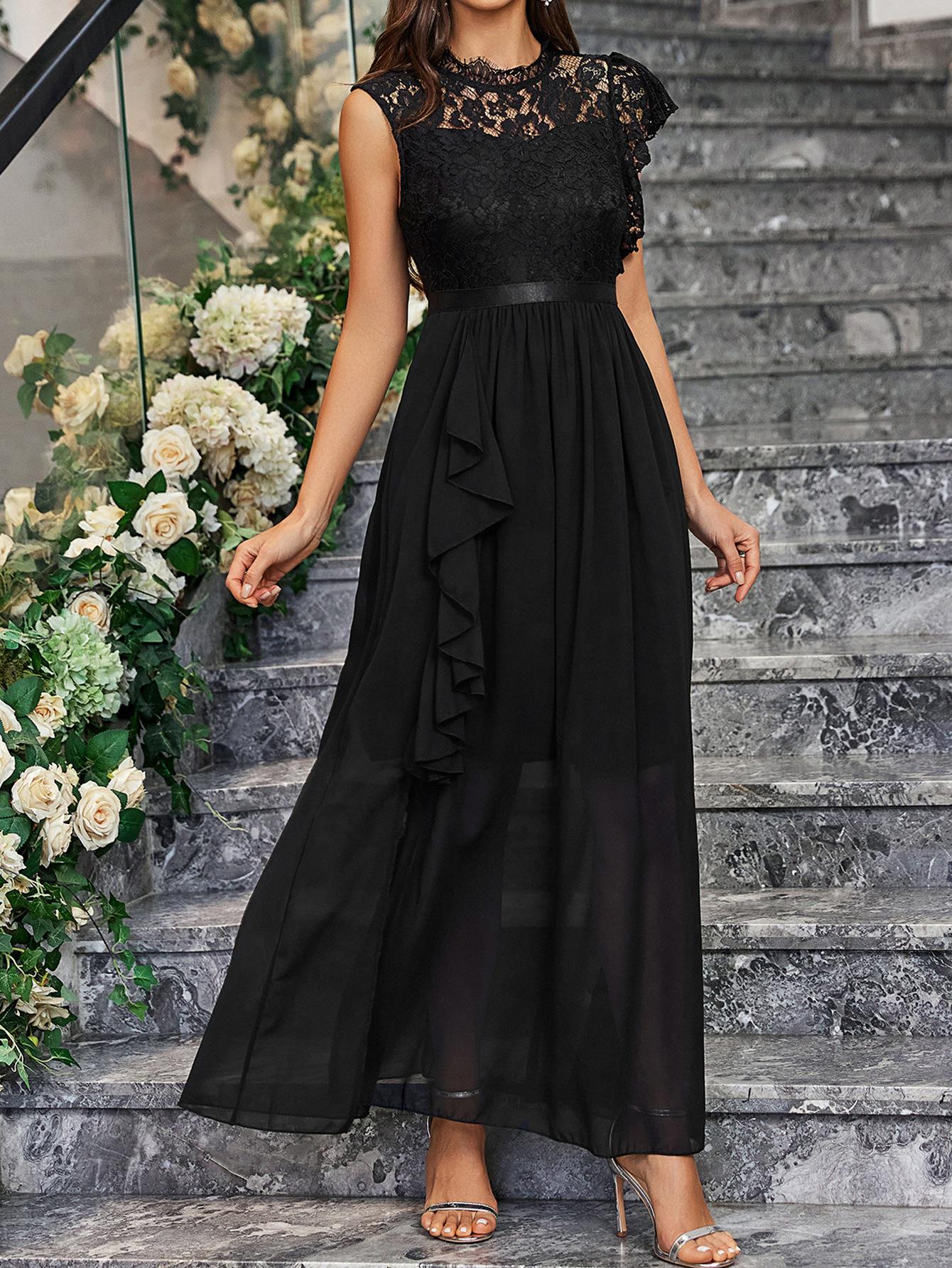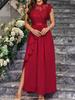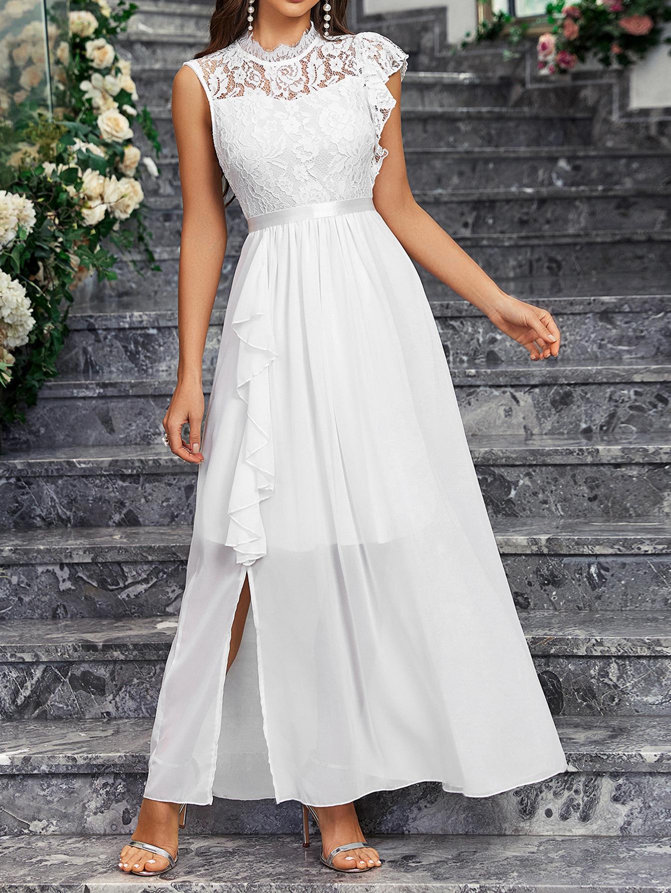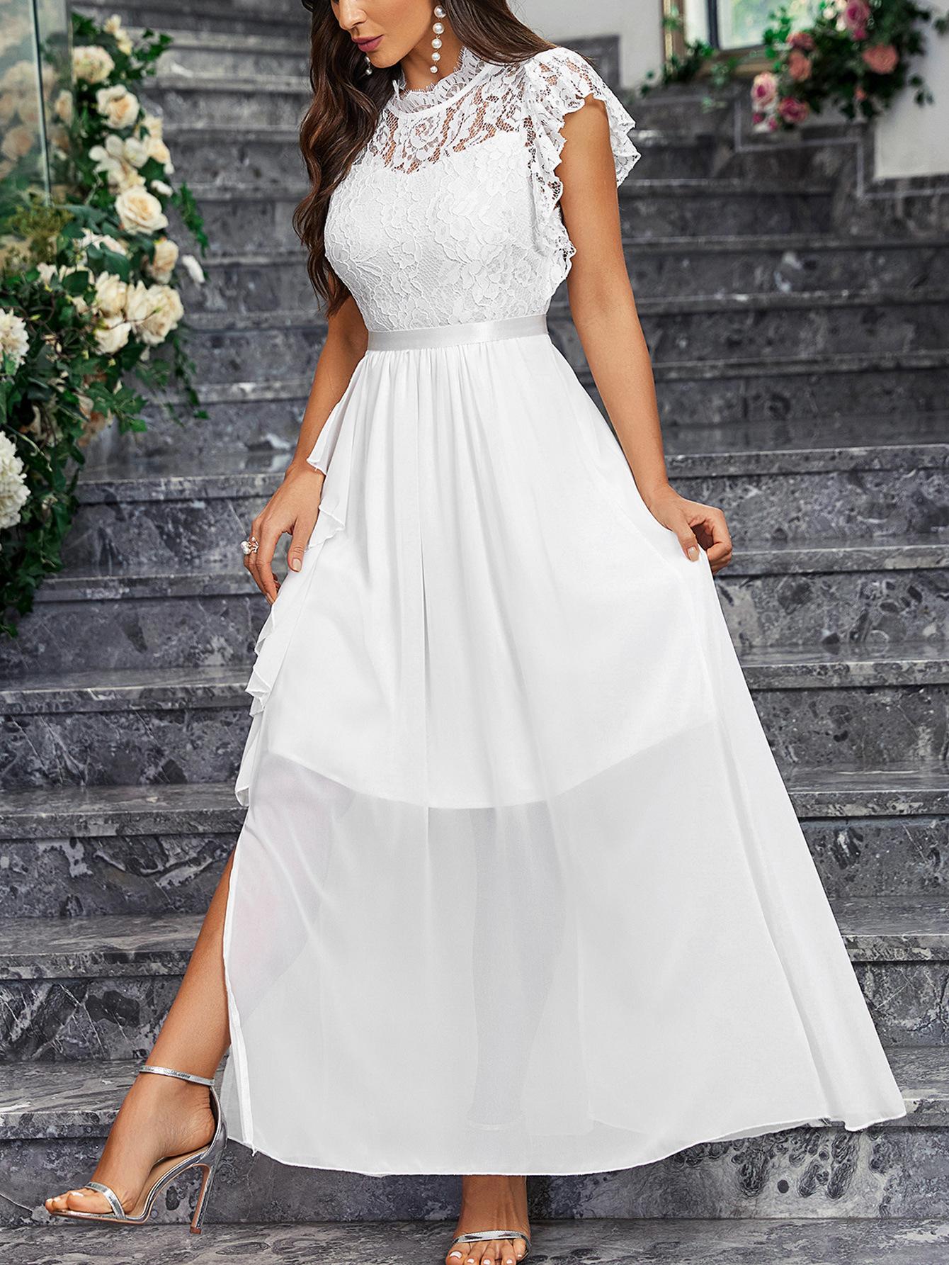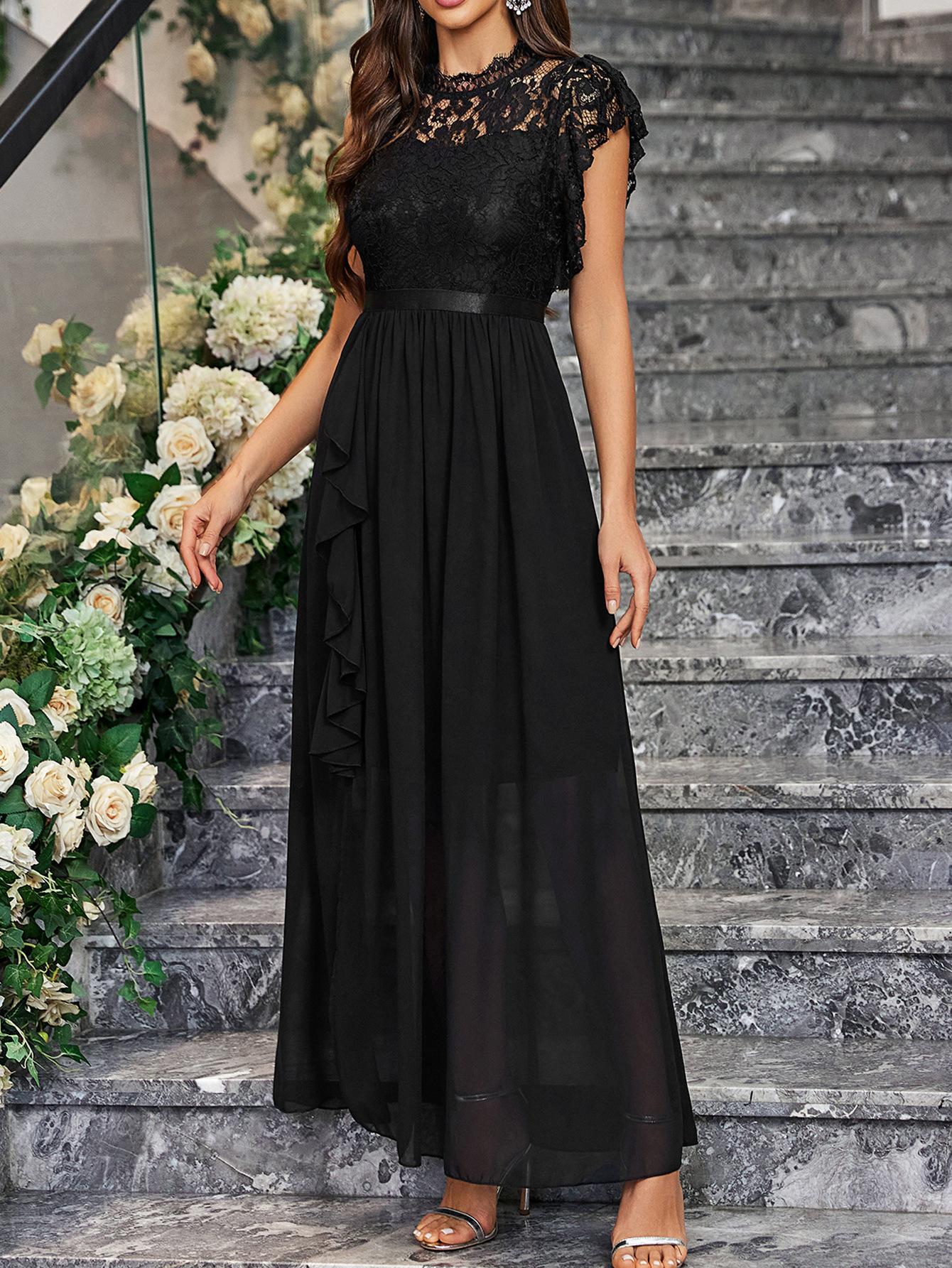Nuevo elegante encaje gasa europeo y americano corte slim con abertura vestido de dama color sólido transfronterizo de Amazon