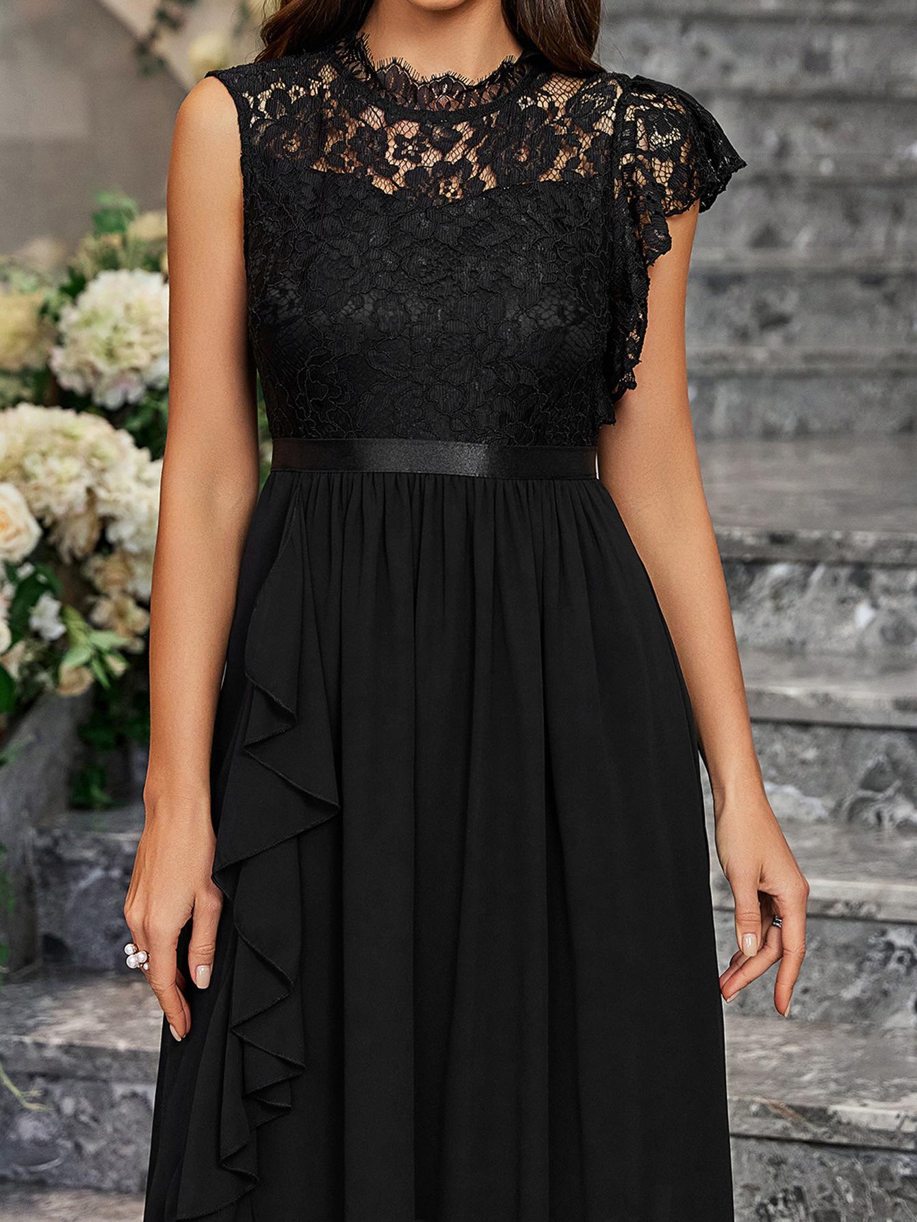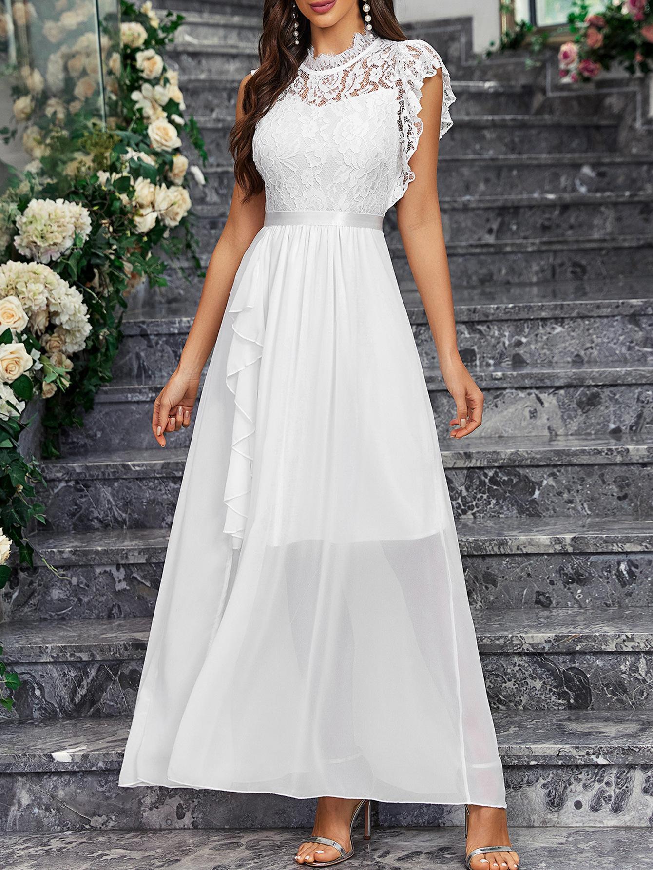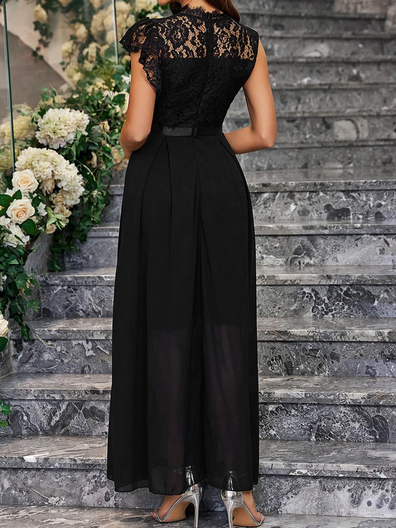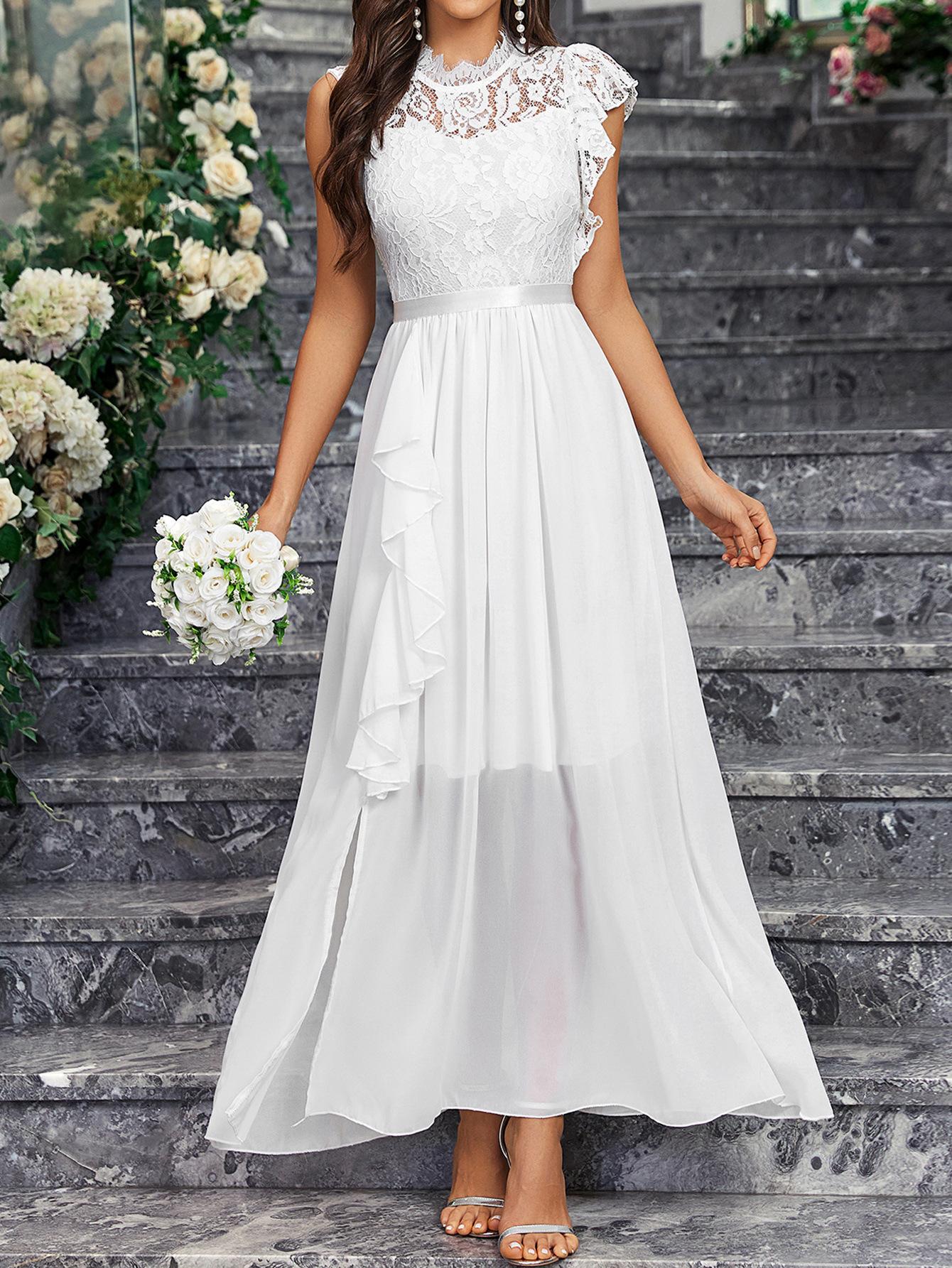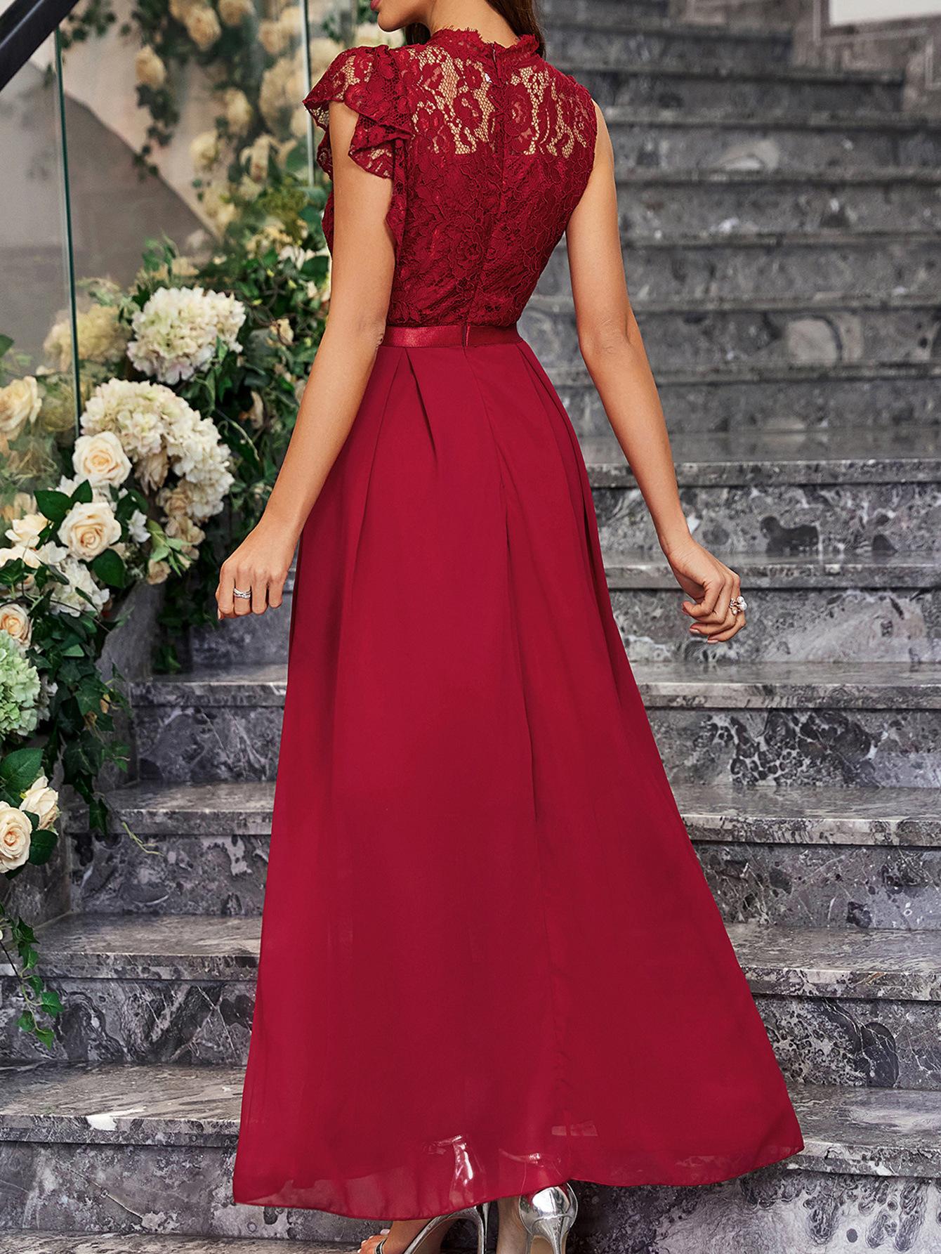 Nuevo elegante encaje gasa europeo y americano corte slim con abertura vestido de dama color sólido transfronterizo de Amazon
