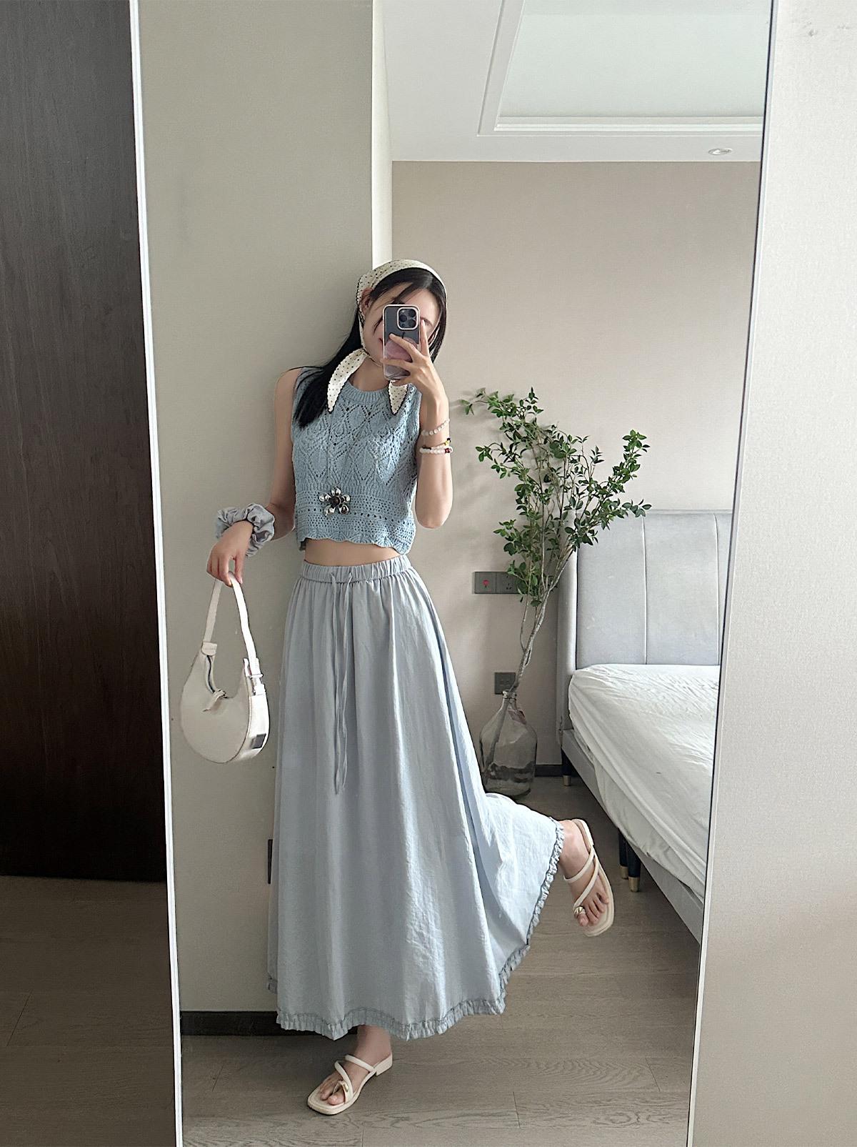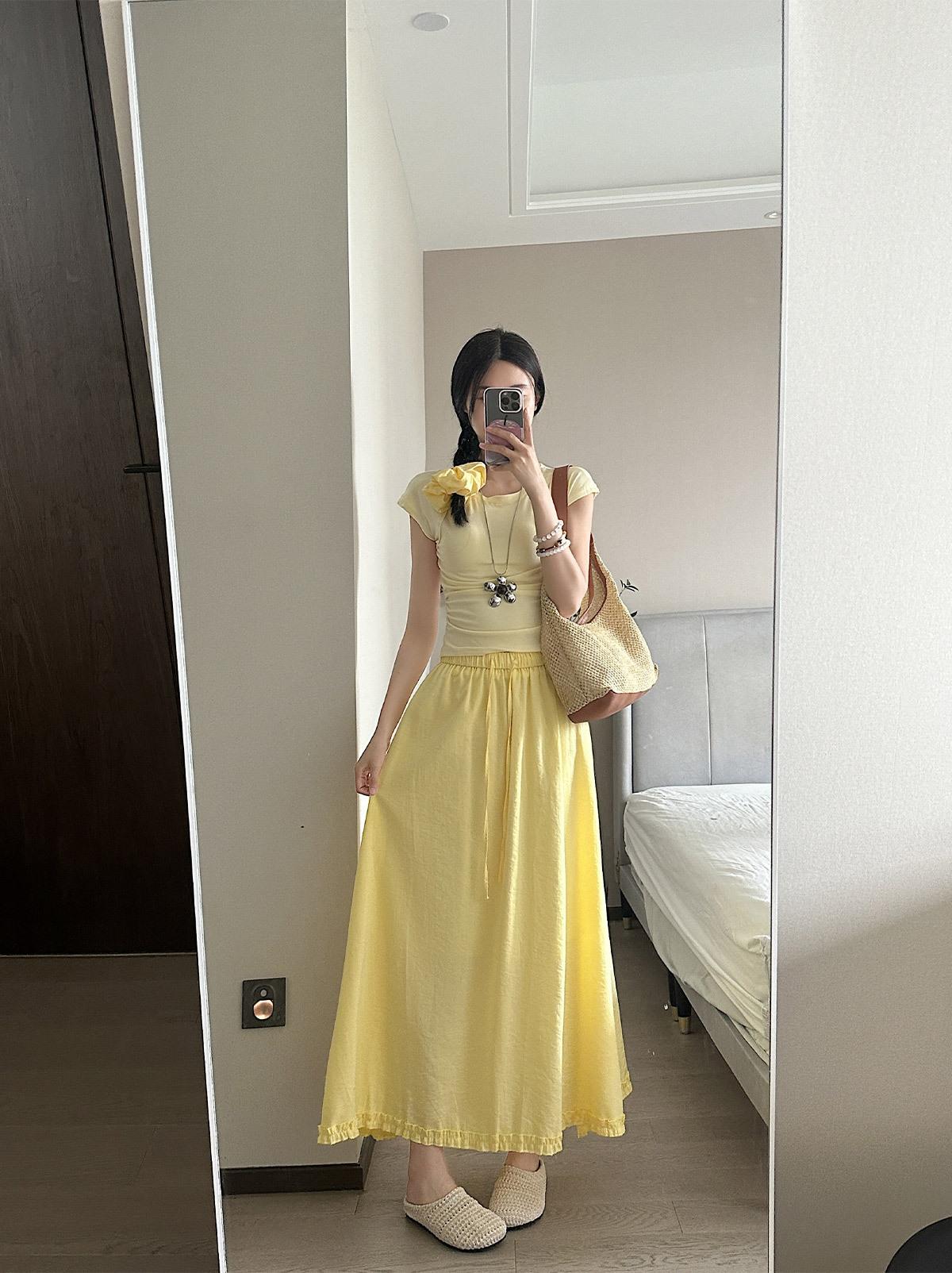 Falda de Dobladillo Asimétrico Estilo Coreano Fresca y Sencilla 2025 para Mujer Verano Nuevo Casual Versátil Falda Larga A-Line para Mujer
