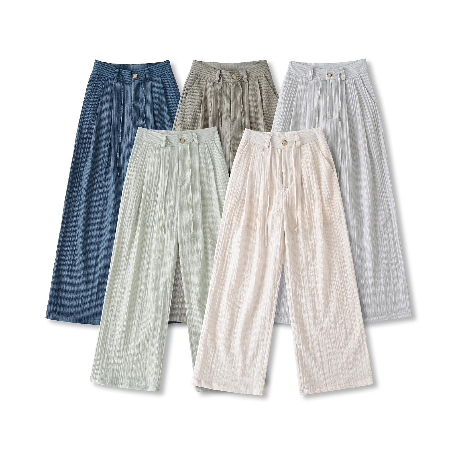 Pantalones de Pierna Ancha de Cintura Alta para Mujer 2025 Verano Nuevo Diseño Plisados Sueltos Adelgazantes Pantalones Casuales