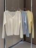 2025 Nuevo Verano Corte Delgado Top Escotado Cuello en V Seda de Hielo Manga Larga Cárdigan Tejido Blusa Versátil para Protección Solar para Mujer