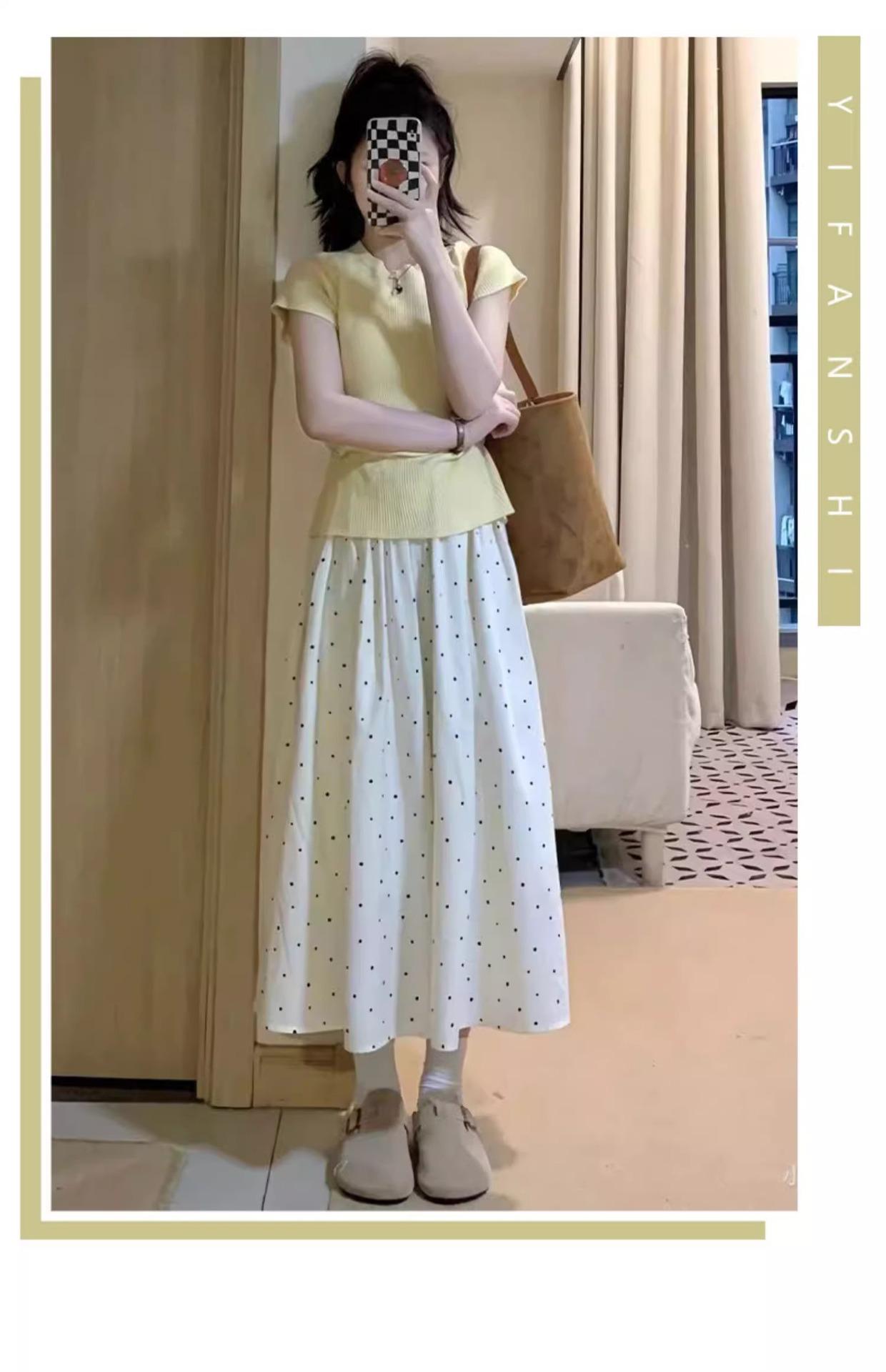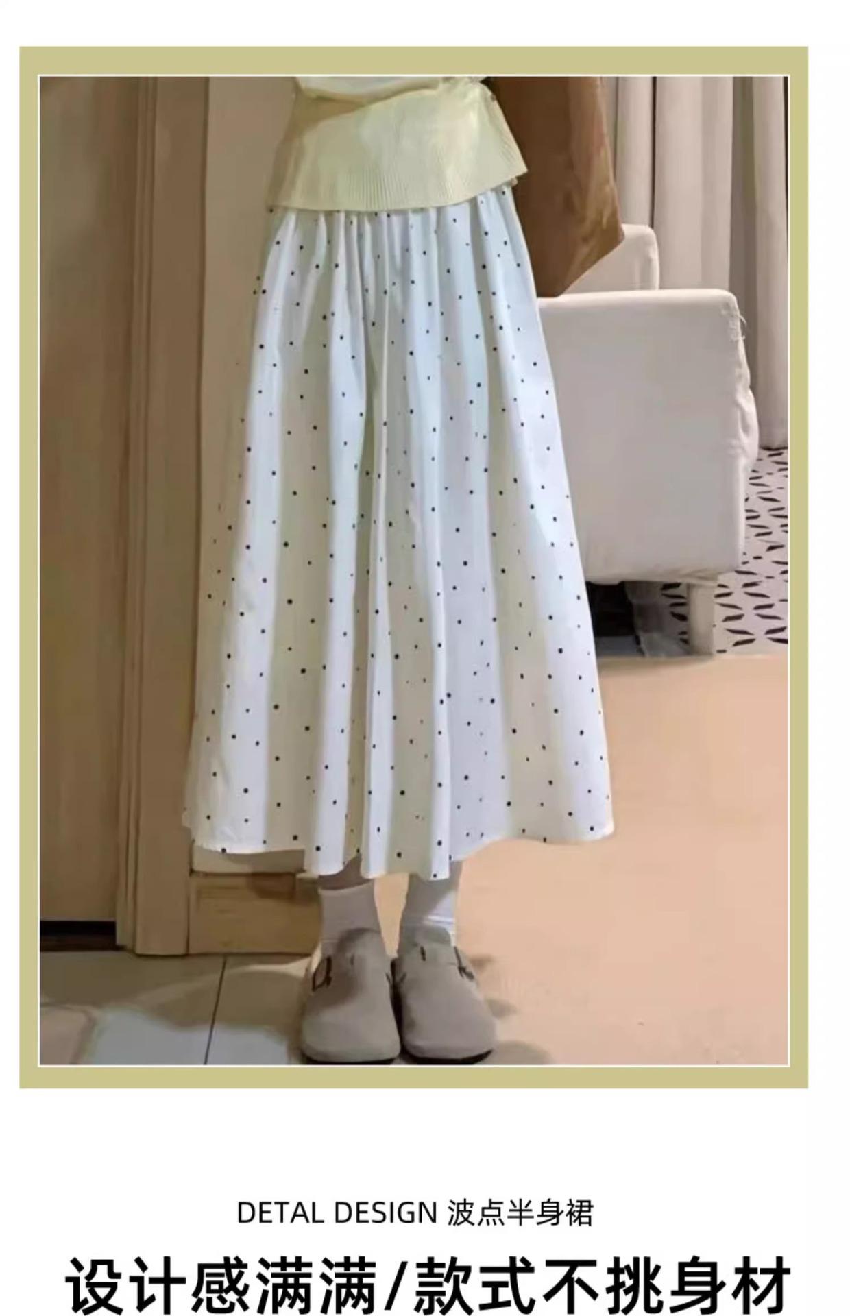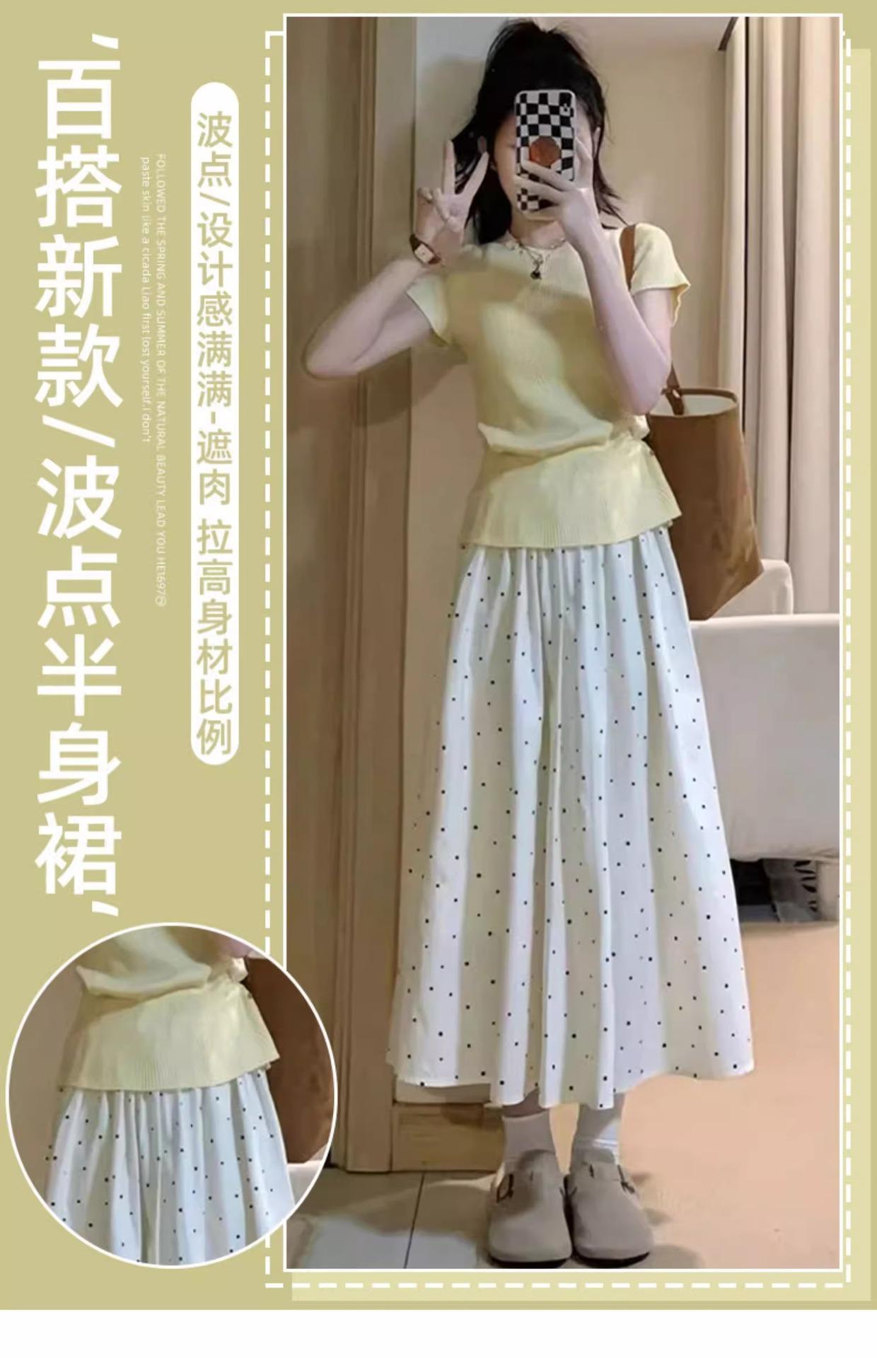 Falda blanco crema con lunares para mujer verano 2025 nueva cintura alta que cubre la cadera adelgazante pequeña línea A falda paraguas grande