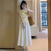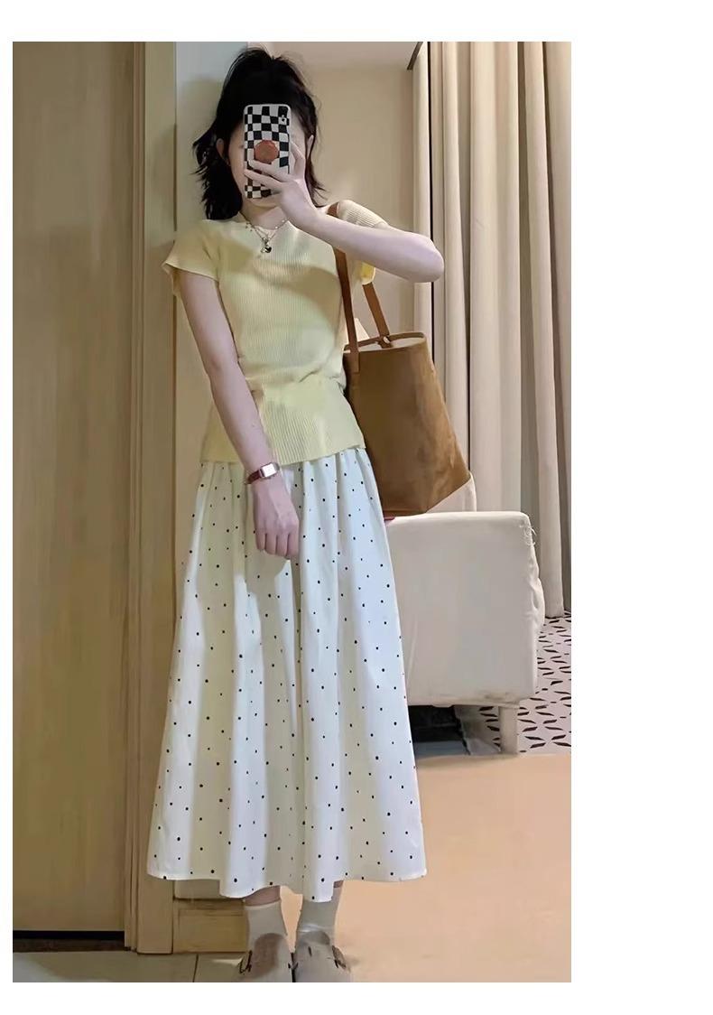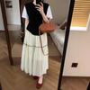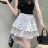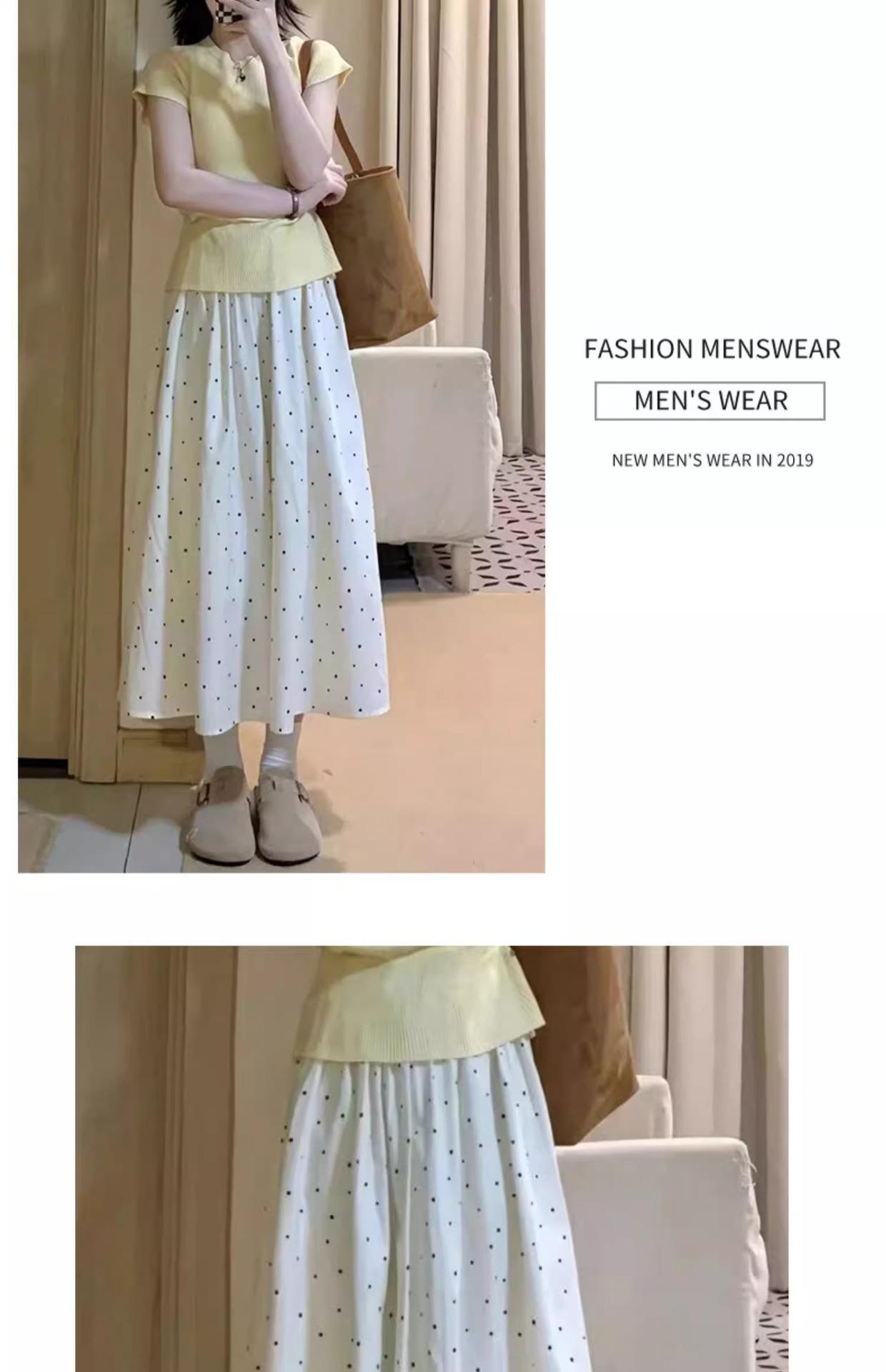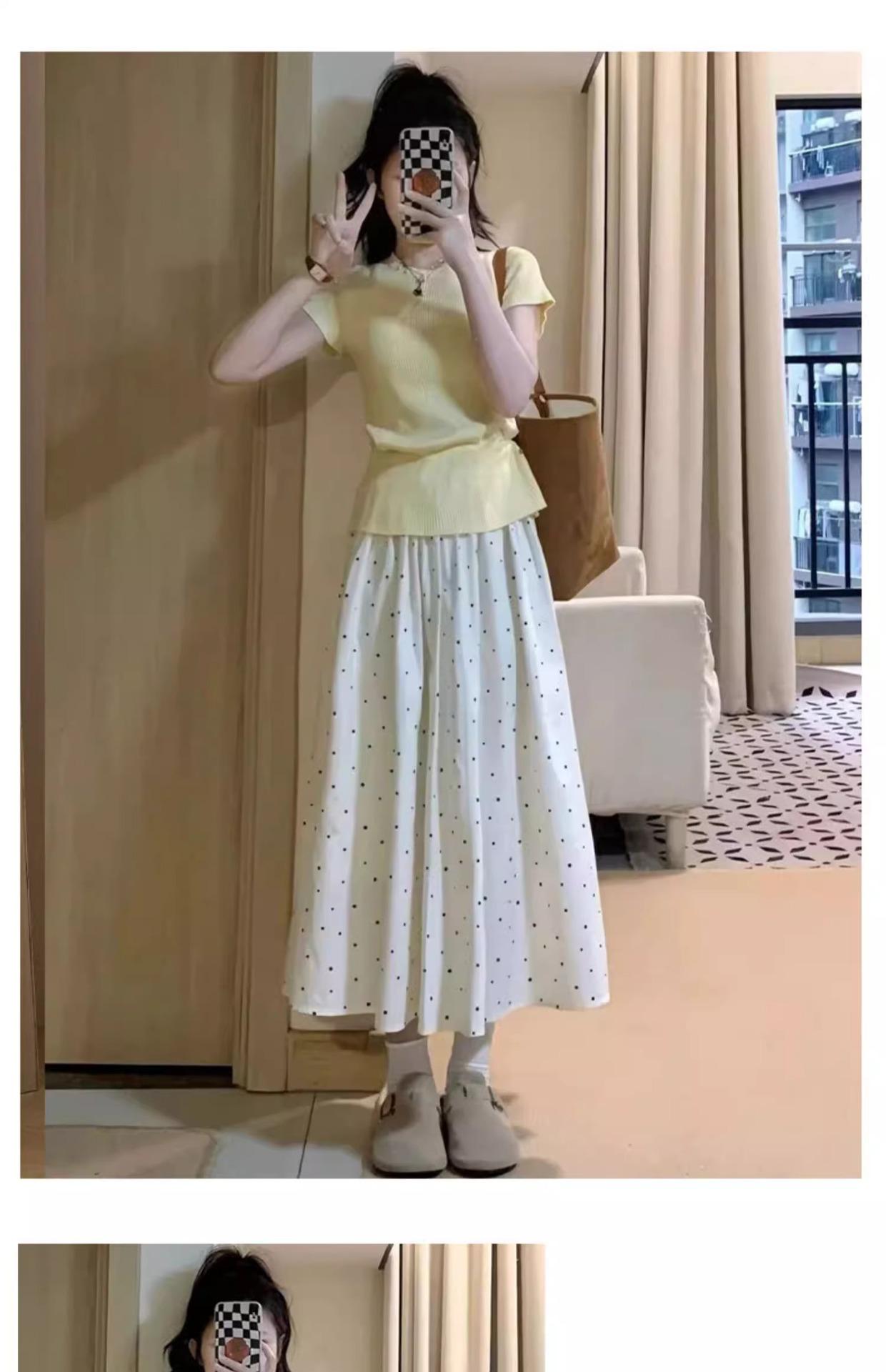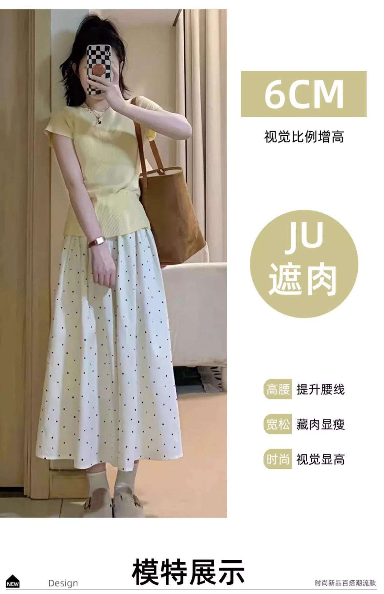 Falda blanco crema con lunares para mujer verano 2025 nueva cintura alta que cubre la cadera adelgazante pequeña línea A falda paraguas grande