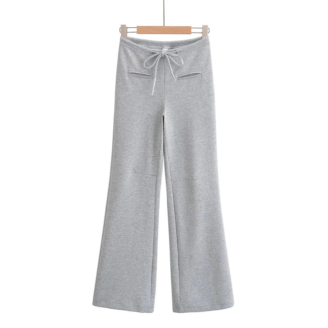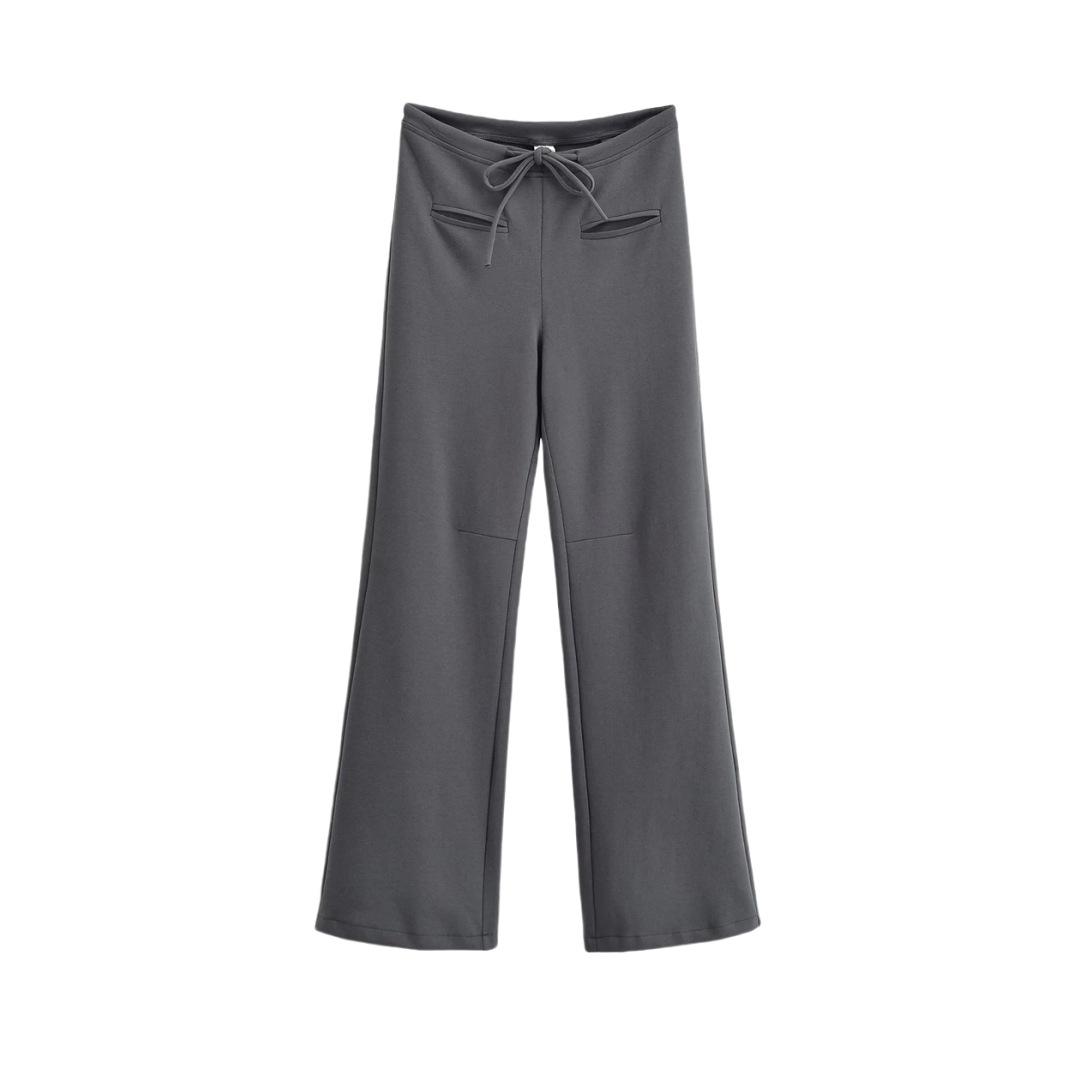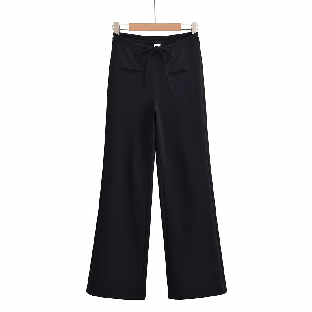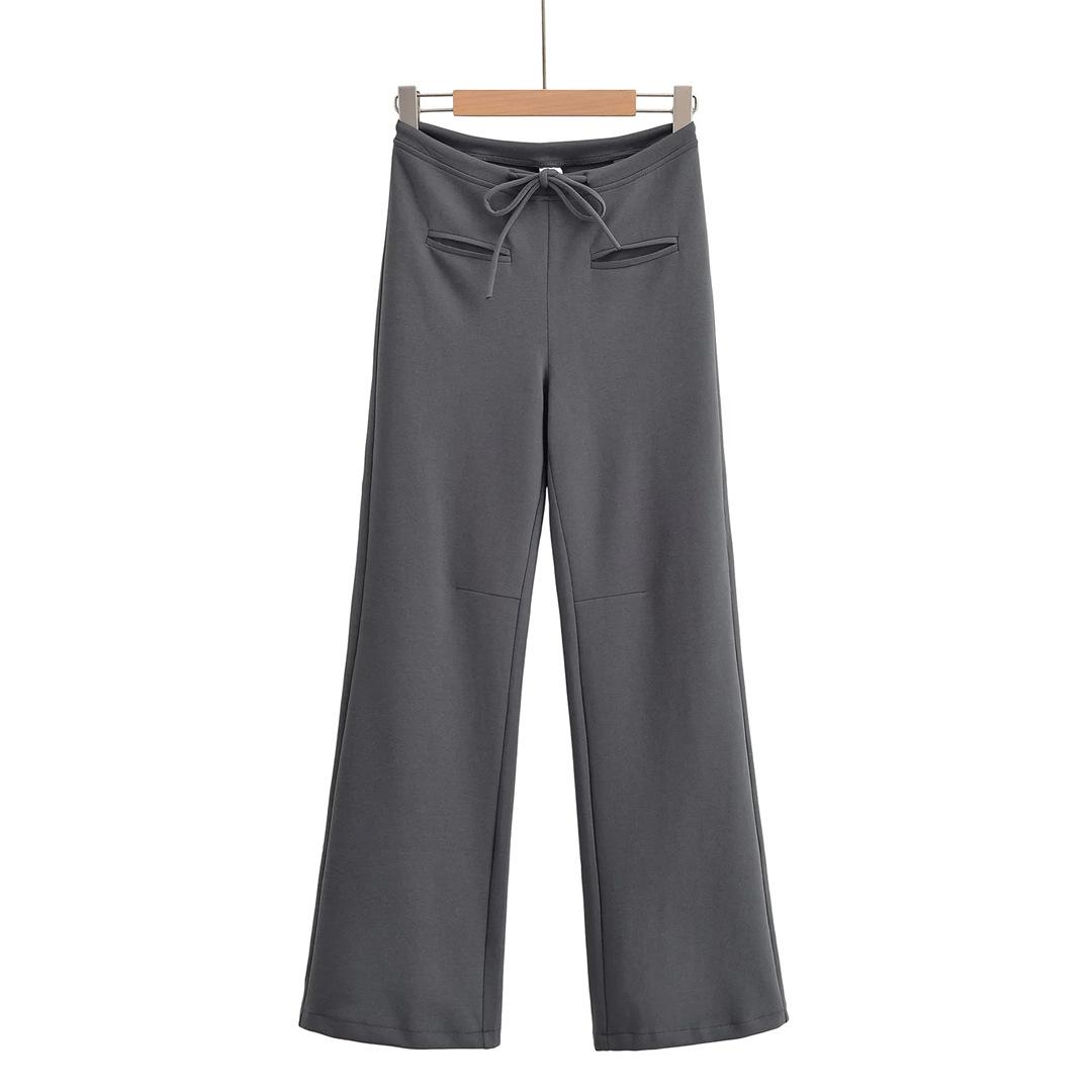 Diseño Retro Americano Bolsillo Delantero Cordón Pantalones Acampanados Mujer Caída Casual Rectos Hasta el Piso Color Sólido