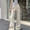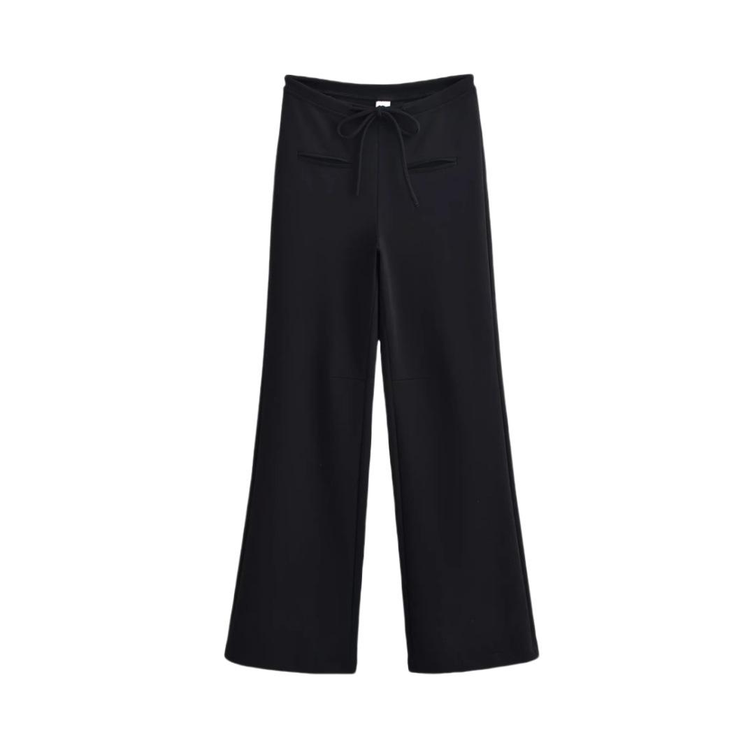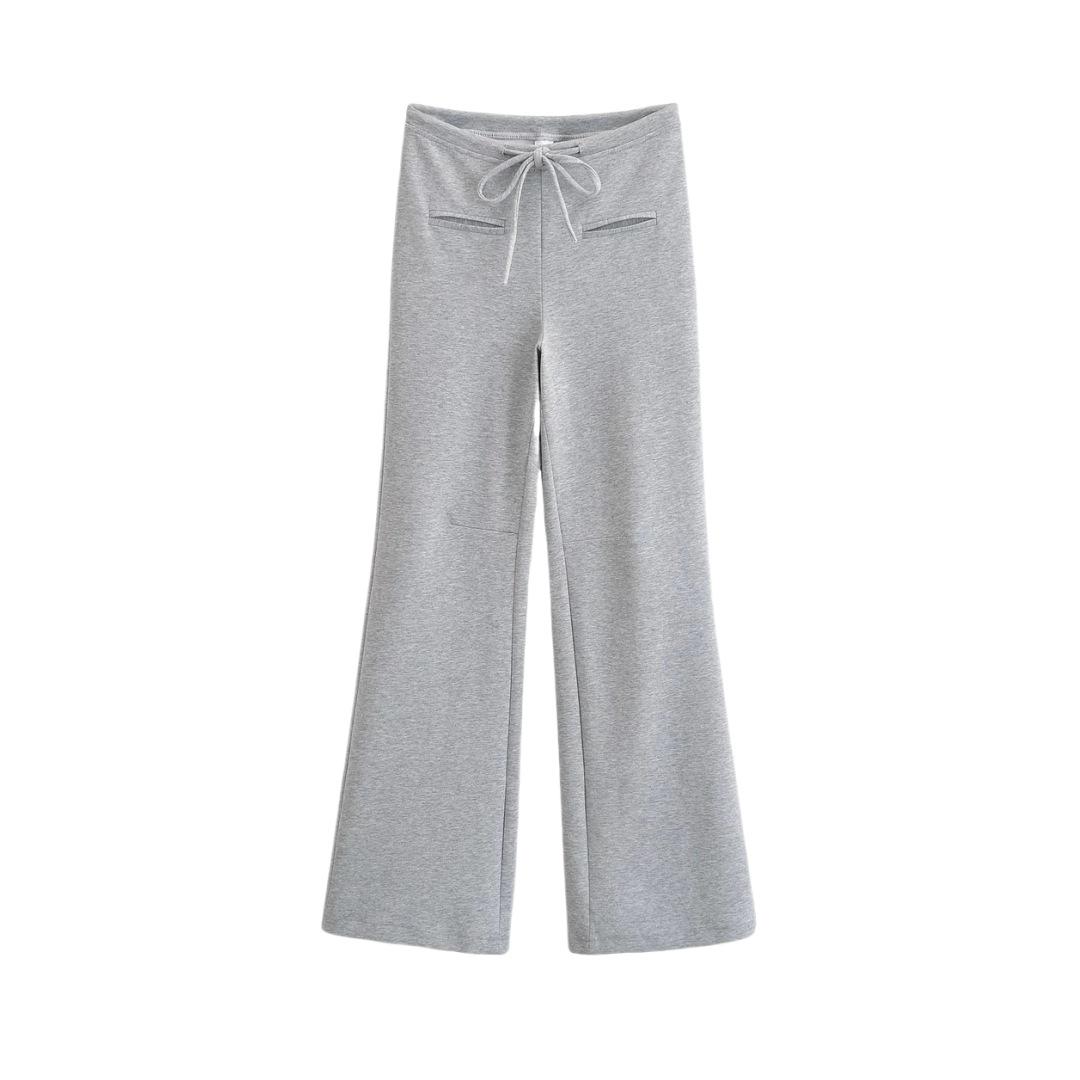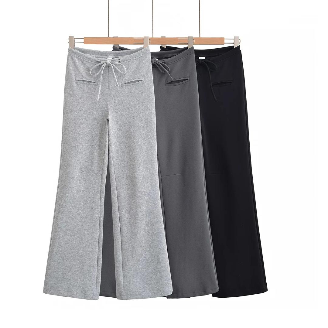 Diseño Retro Americano Bolsillo Delantero Cordón Pantalones Acampanados Mujer Caída Casual Rectos Hasta el Piso Color Sólido