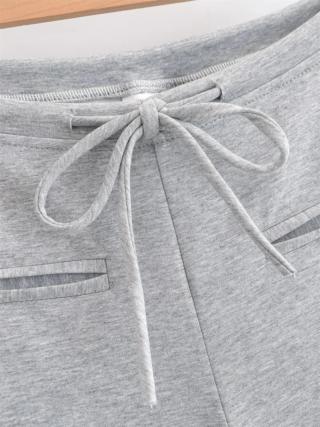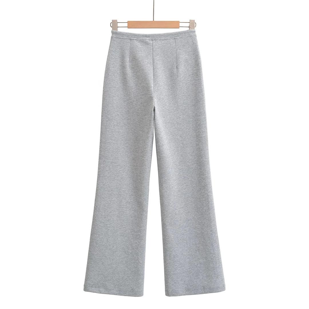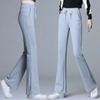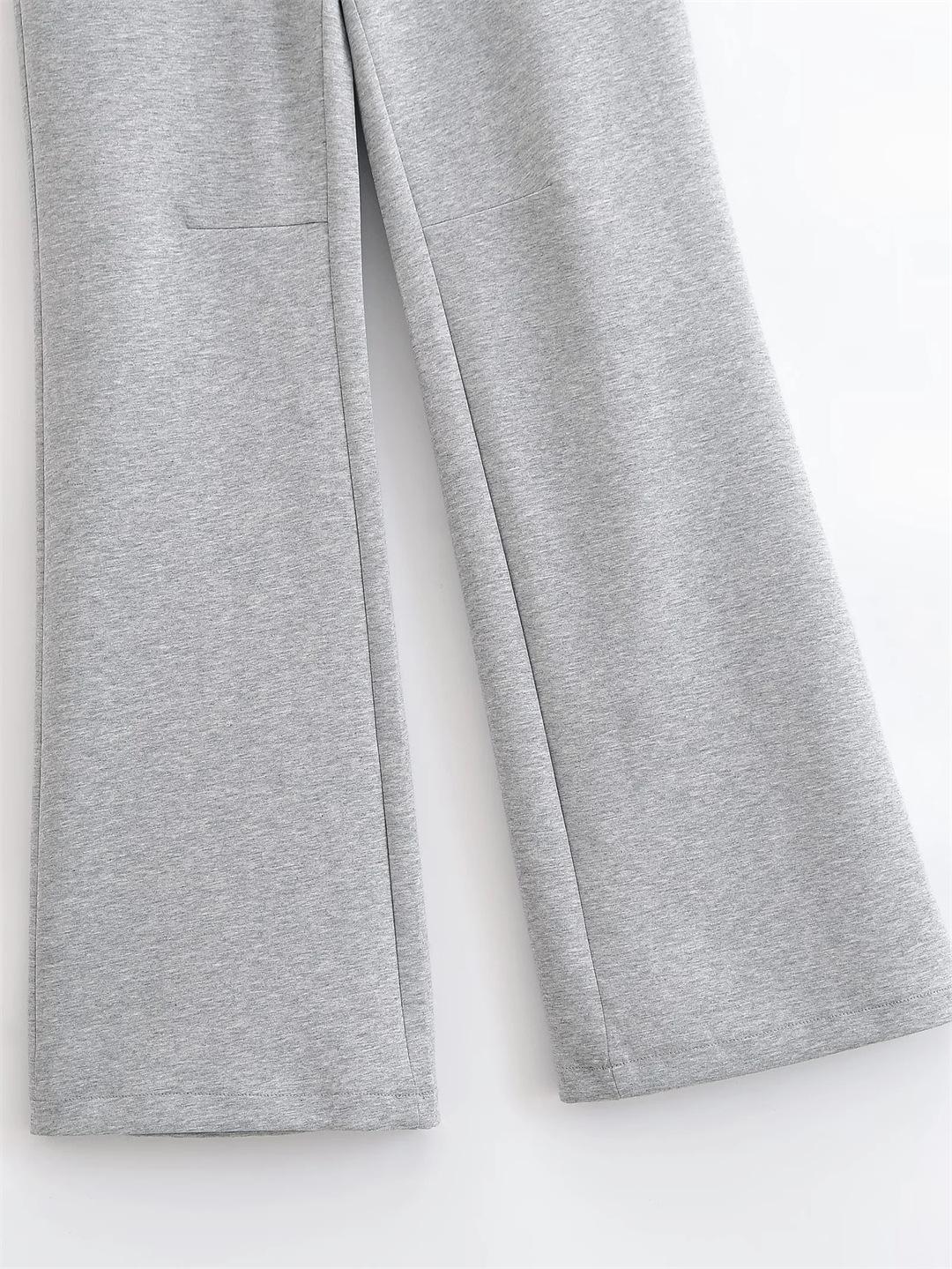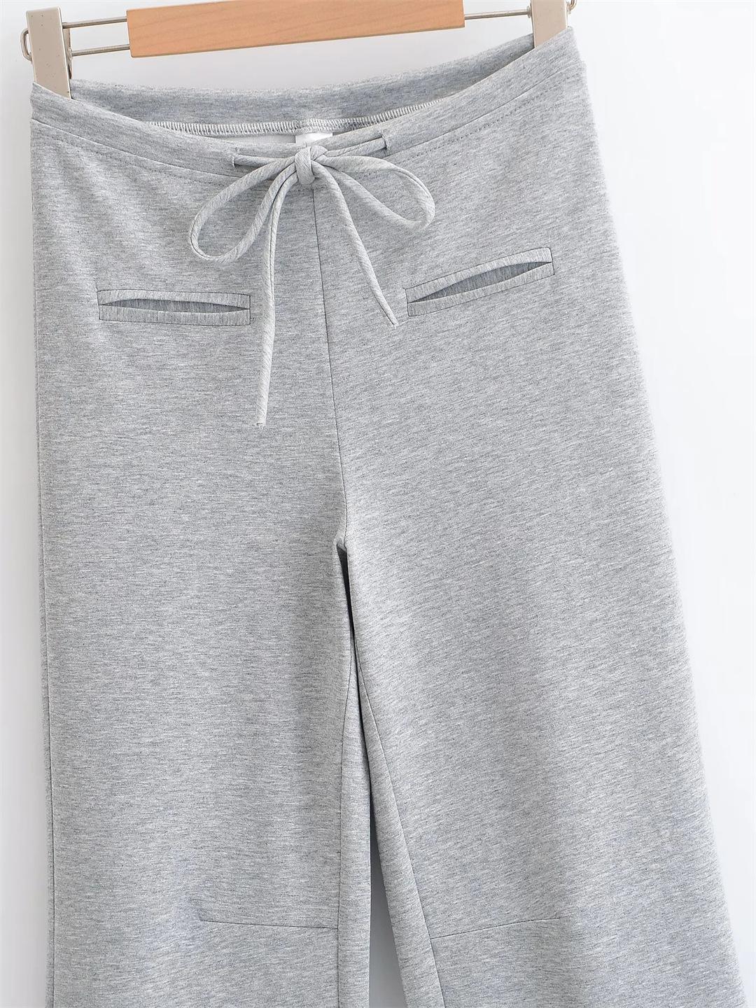 Diseño Retro Americano Bolsillo Delantero Cordón Pantalones Acampanados Mujer Caída Casual Rectos Hasta el Piso Color Sólido