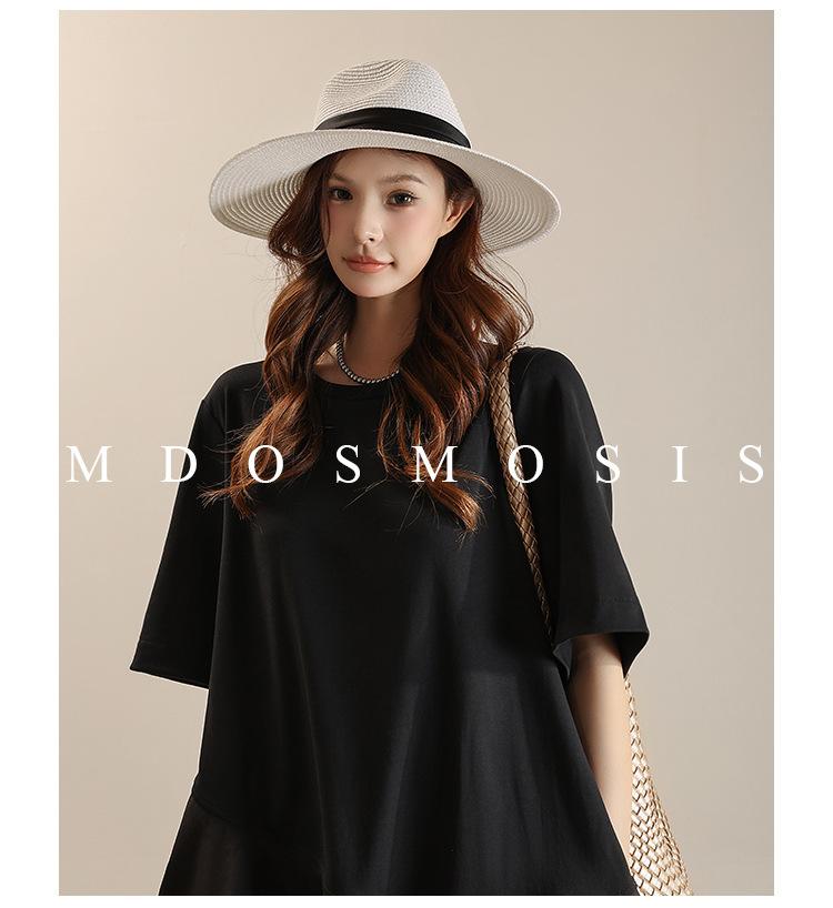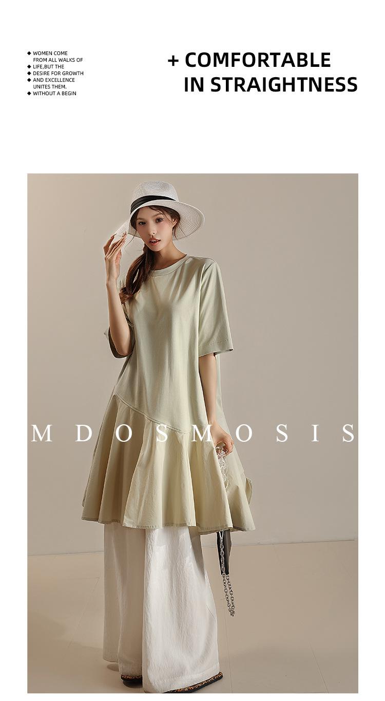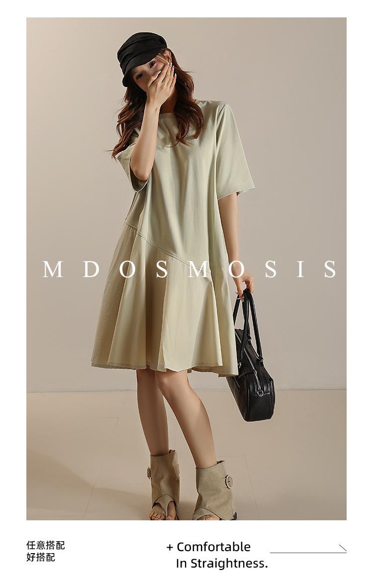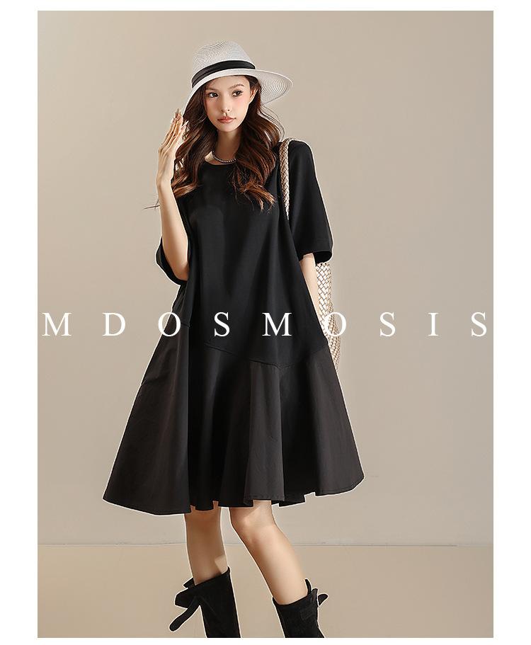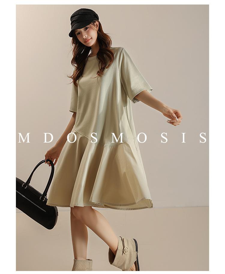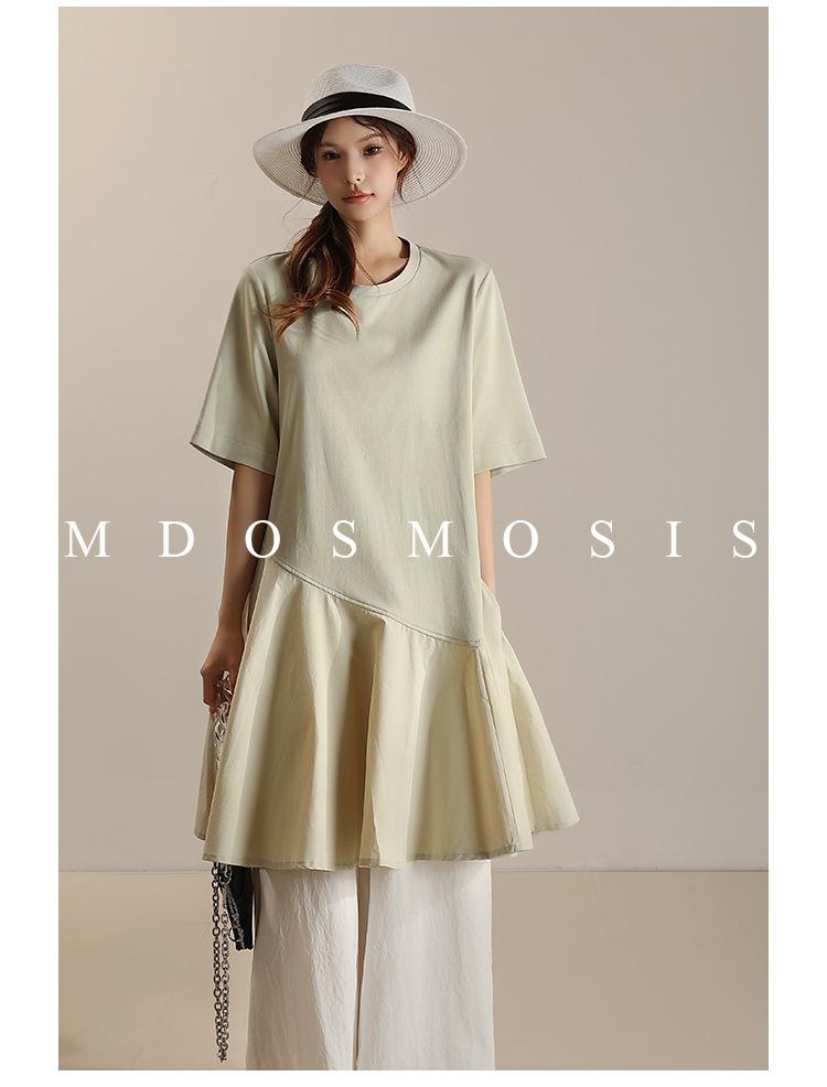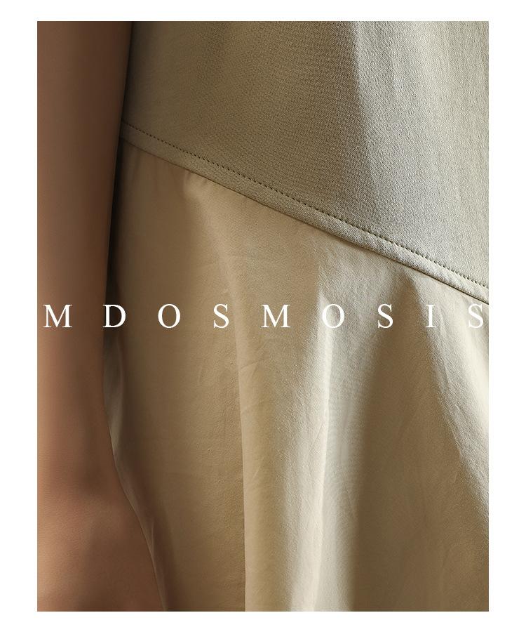 Mono de Verano para Mujer de Manga Tres Cuartos Cuello Redondo Hombro Derecho Bajo Asimétrico Empalme de Material Contrastante Largo Medio Md5175