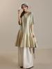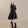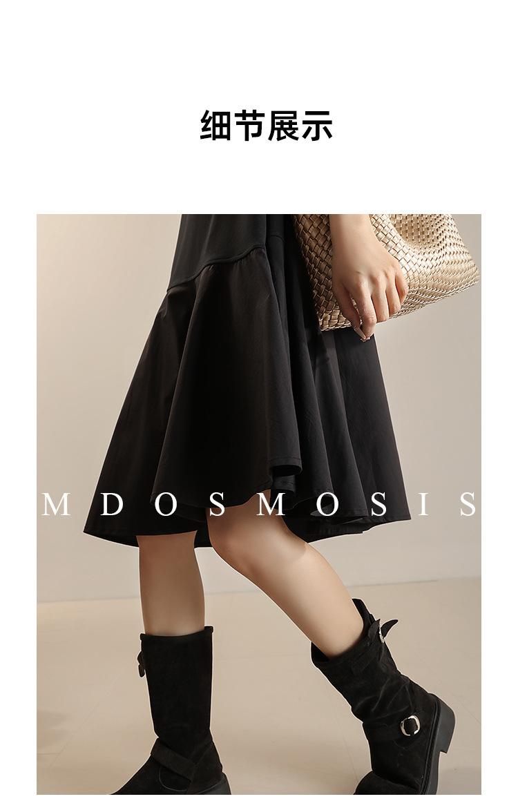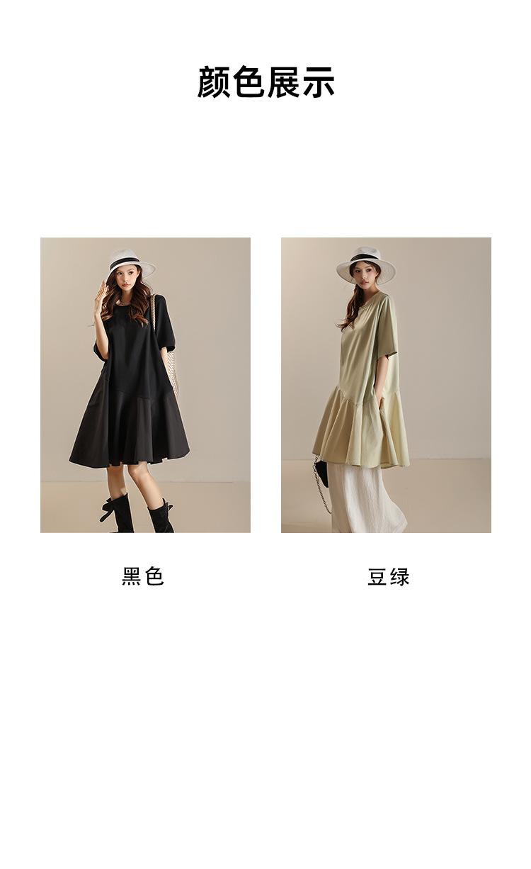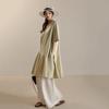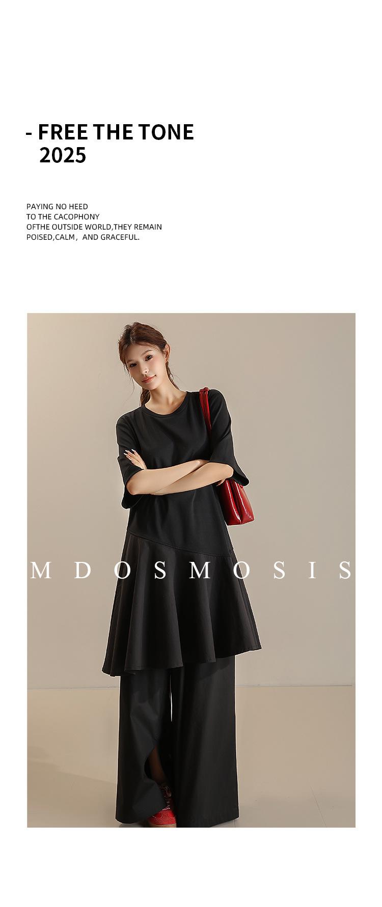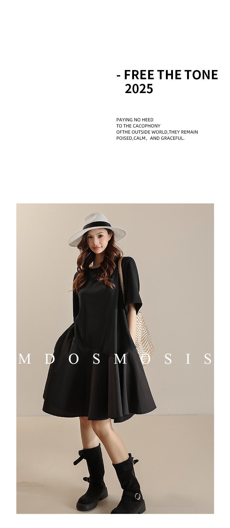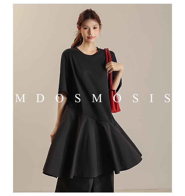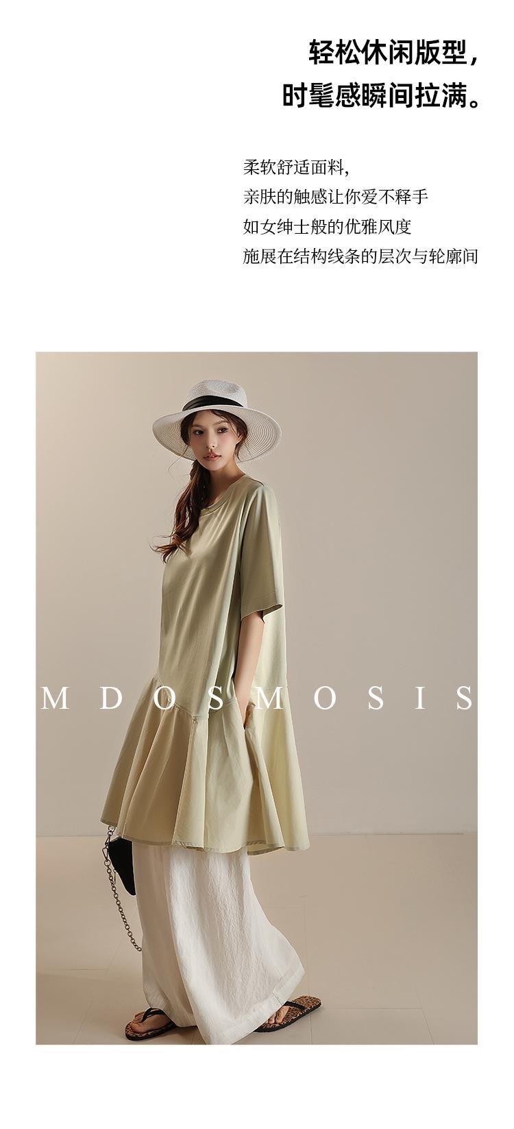 Mono de Verano para Mujer de Manga Tres Cuartos Cuello Redondo Hombro Derecho Bajo Asimétrico Empalme de Material Contrastante Largo Medio Md5175