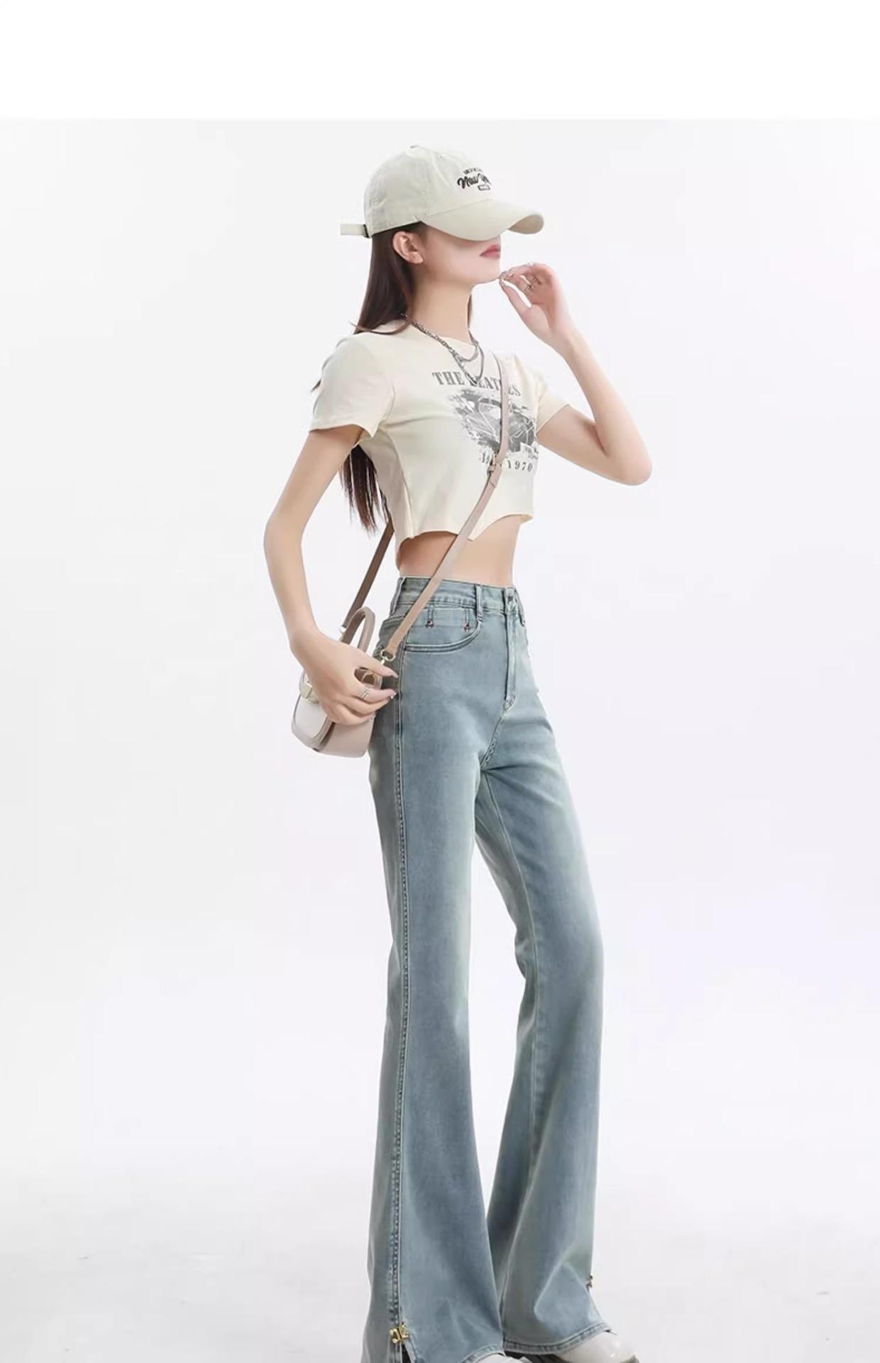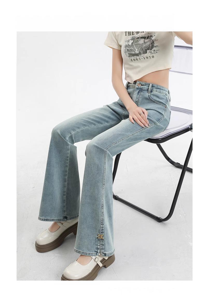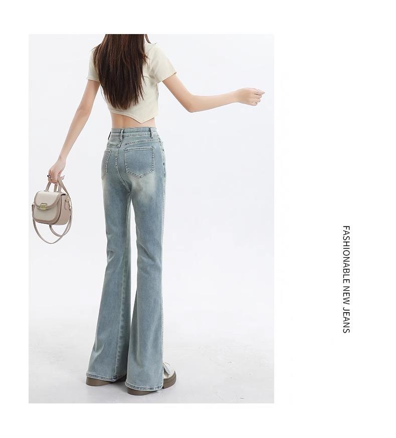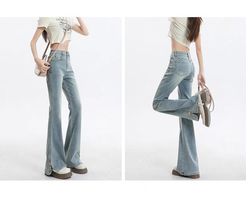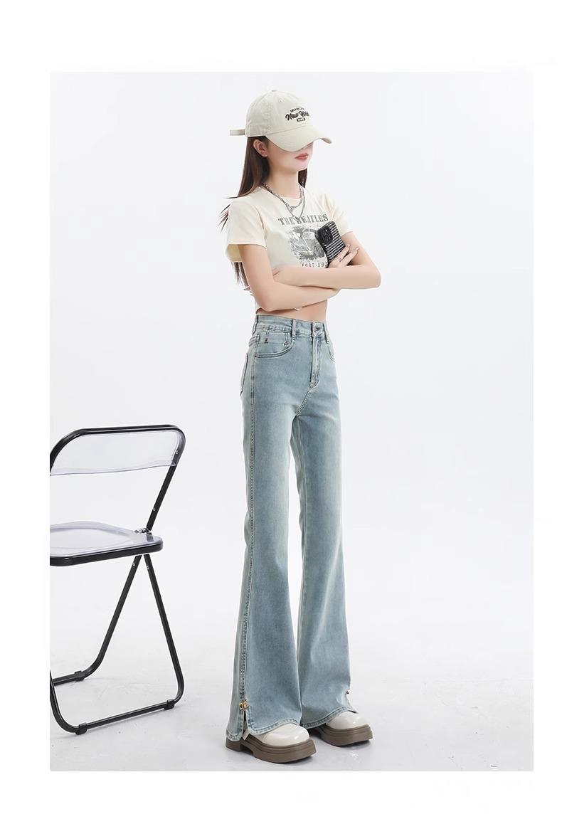Jeans de Micro-acampanados de Cintura Alta de Color Claro para Mujer, Modernos, Combinables, Nuevos, Retro, Elásticos, Skinny, con Pequeña Abertura, Pantalones de Herradura
